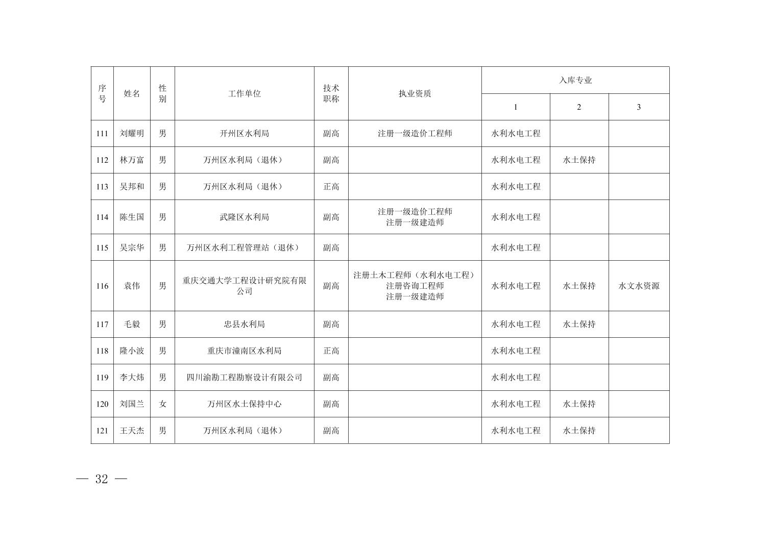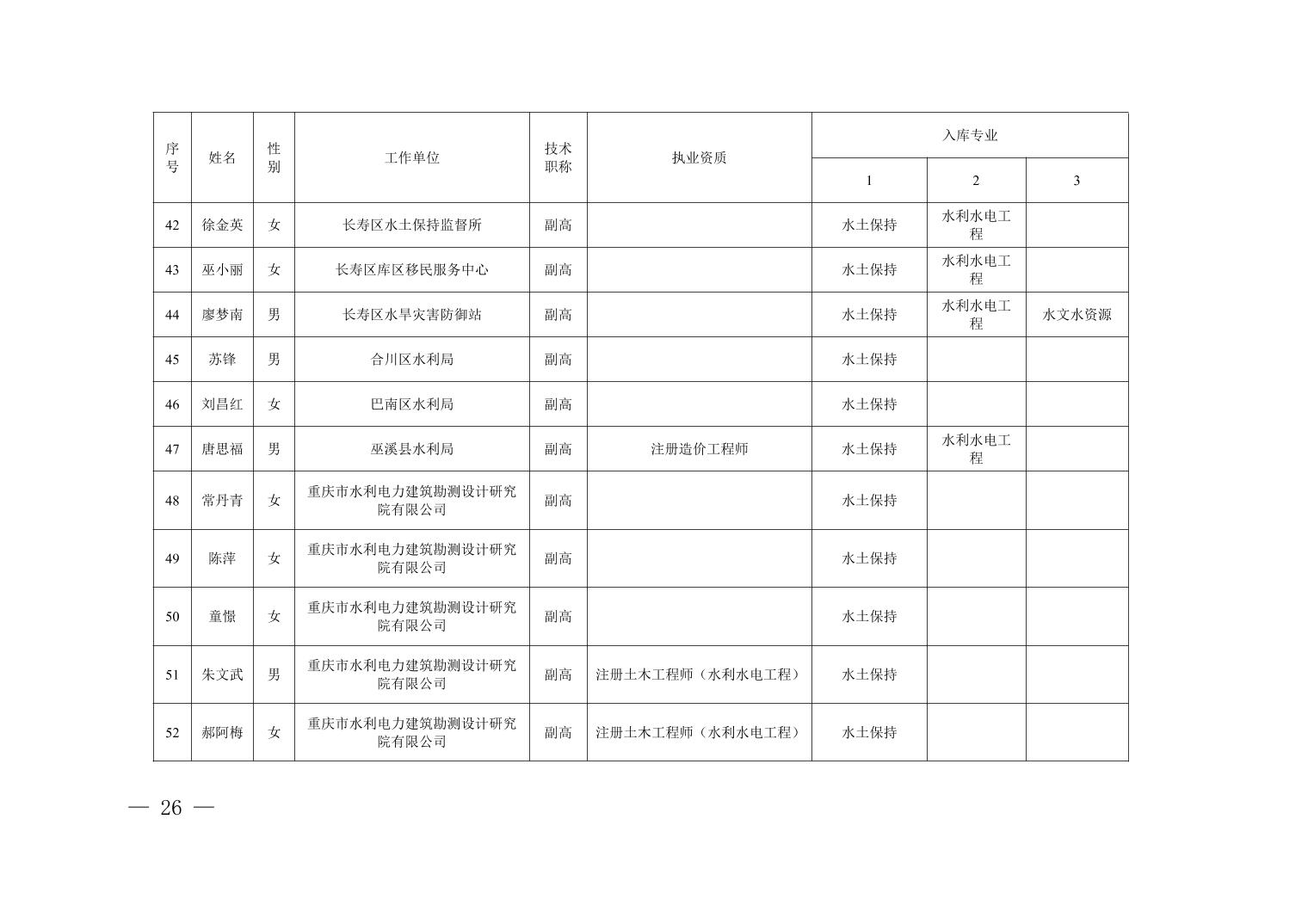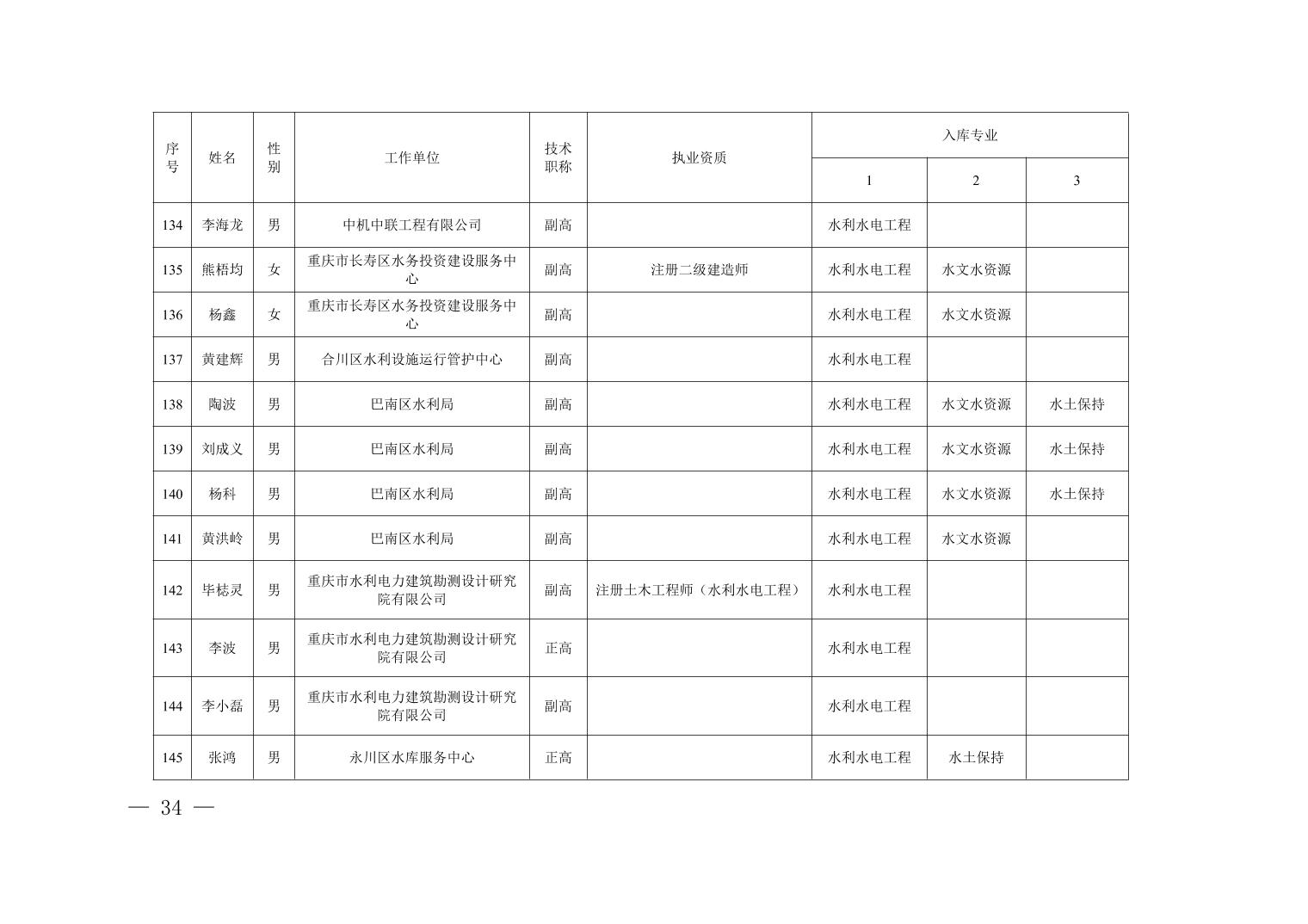 全文下载:重庆市水利局办公室关于印发重庆市水利建设项目和涉水行政许可事项技术审查等两个专家库人员名单的通知.docx