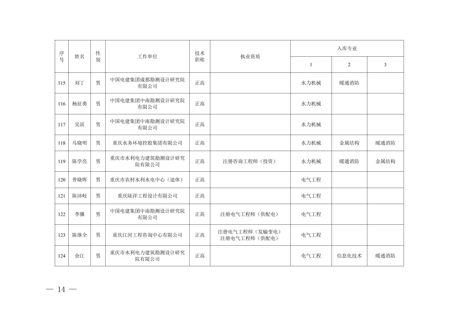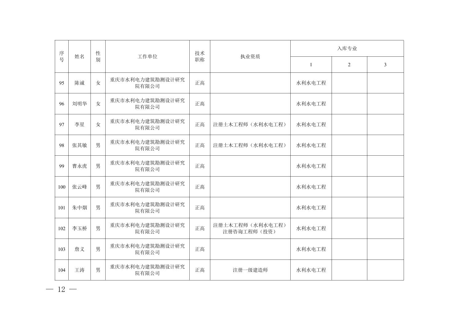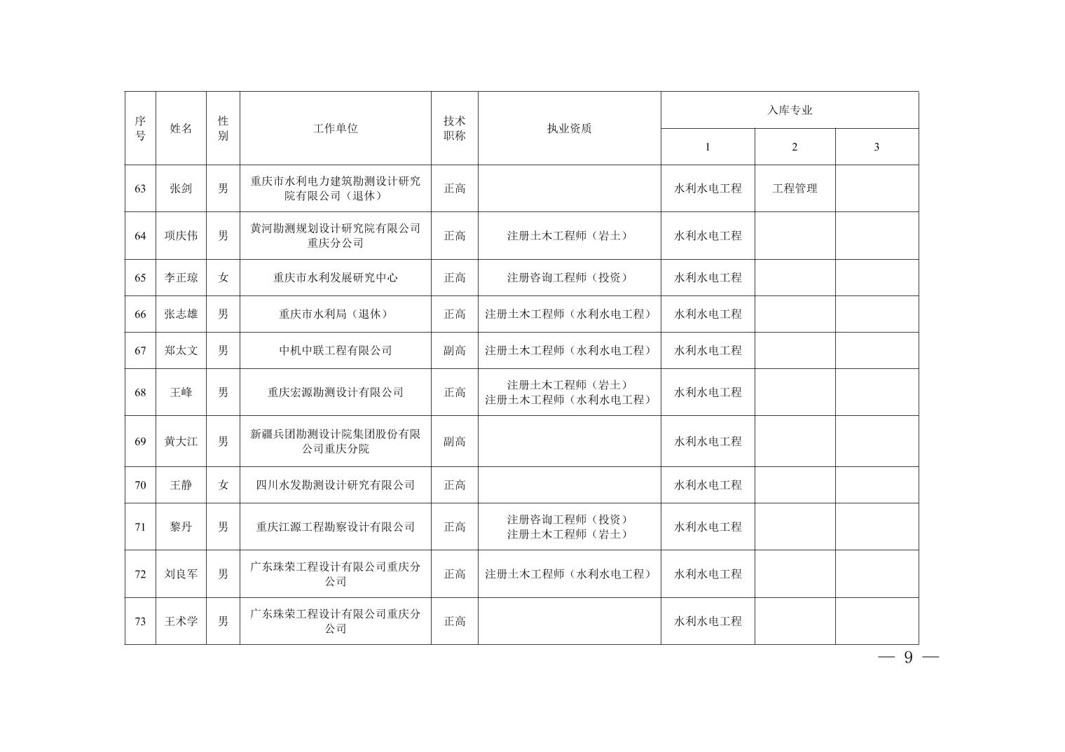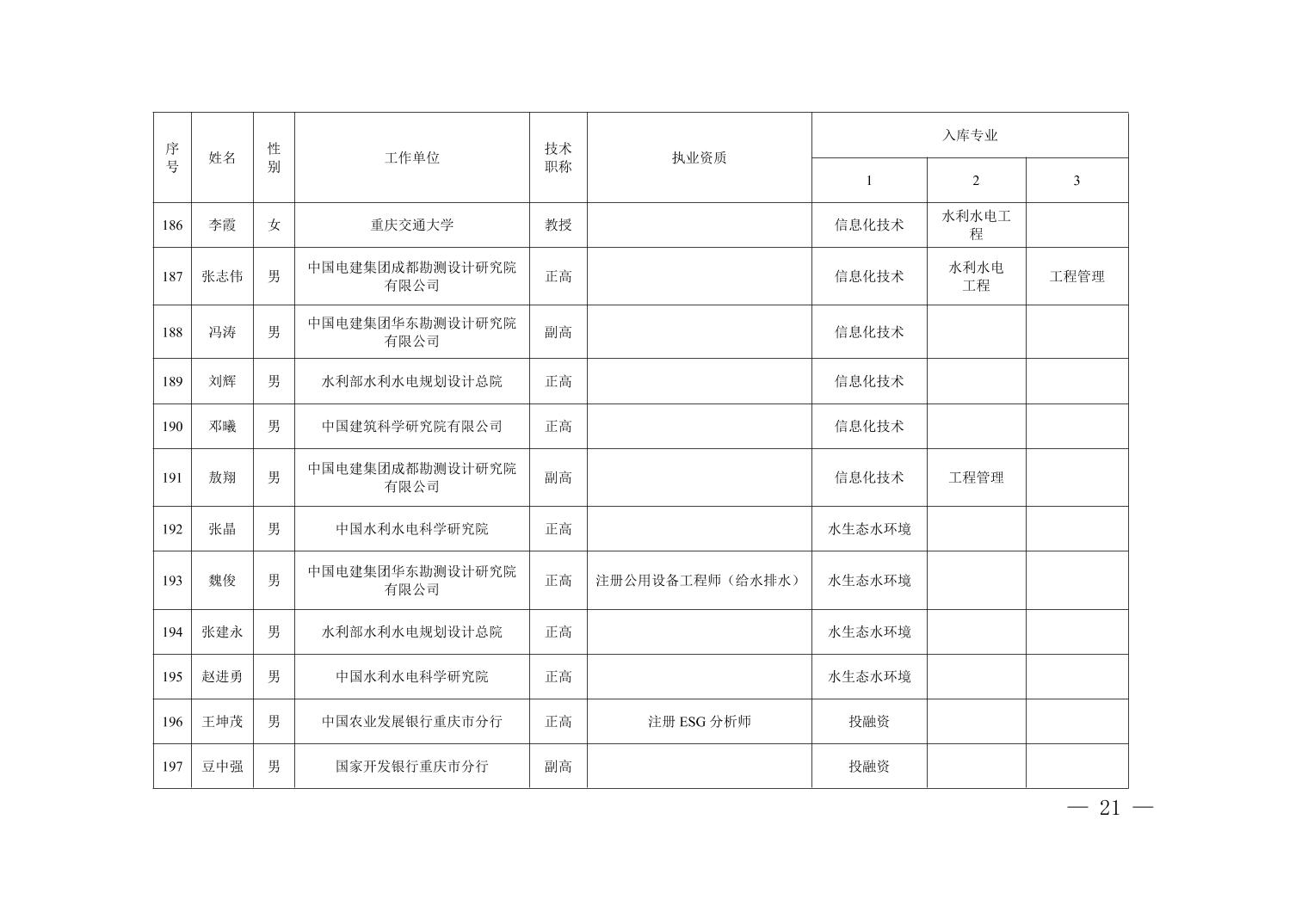 全文下载:重庆市水利局办公室关于印发重庆市水利建设项目和涉水行政许可事项技术审查等两个专家库人员名单的通知.docx