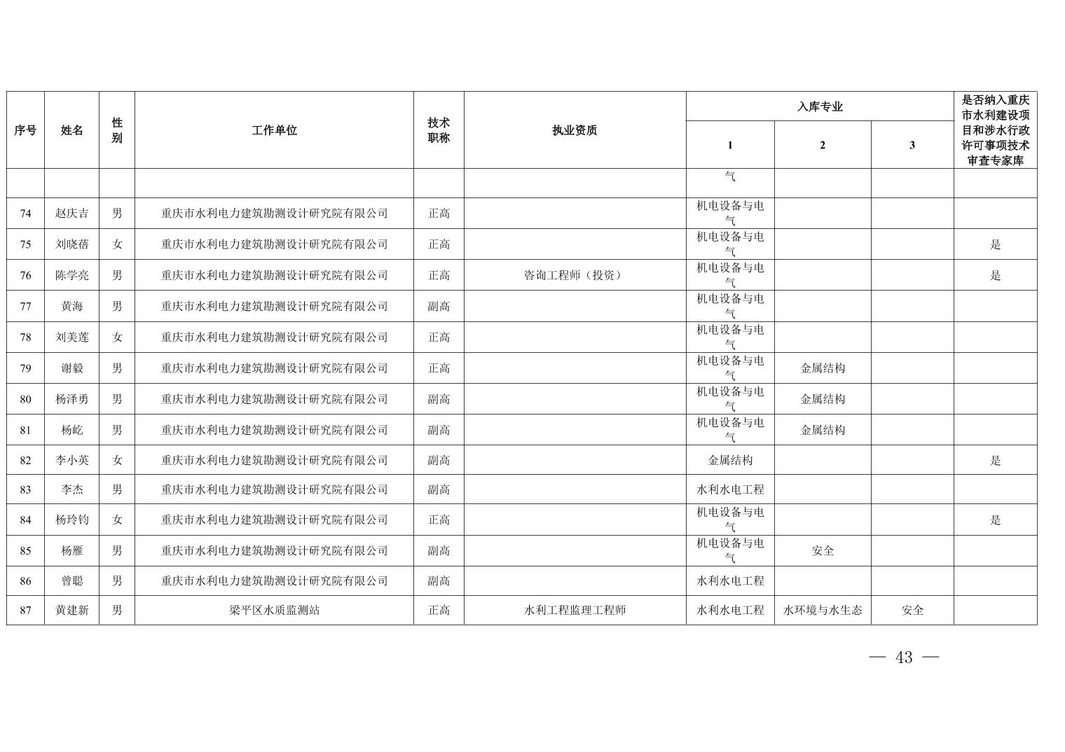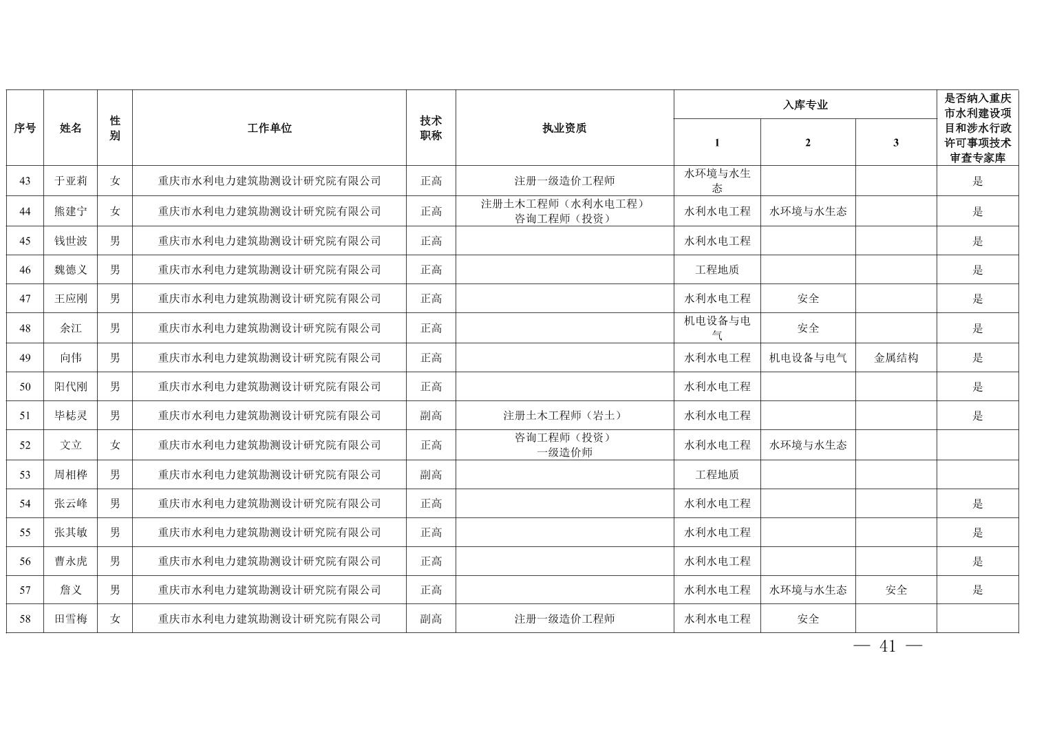 重庆市水利局办公室关于印发重庆市水利建设项目和涉水行政许可事项技术审查等两个专家库人员名单的通知