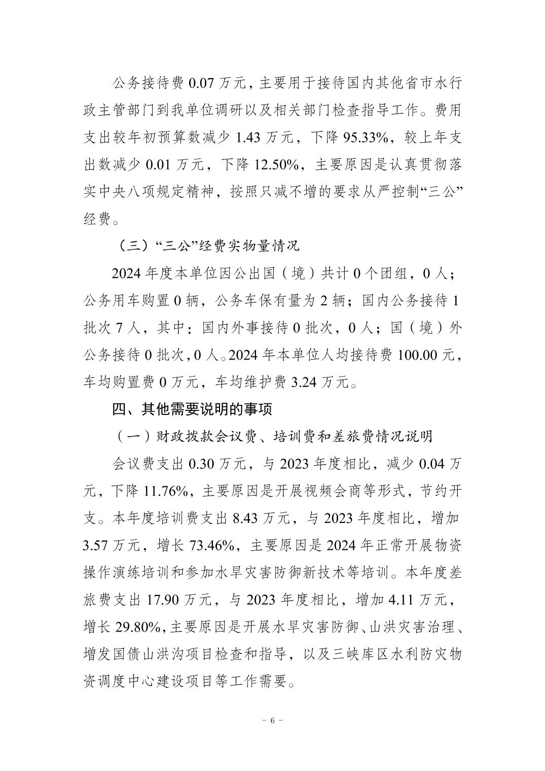重庆市水旱灾害防御中心2024年度决算公开的情况说明