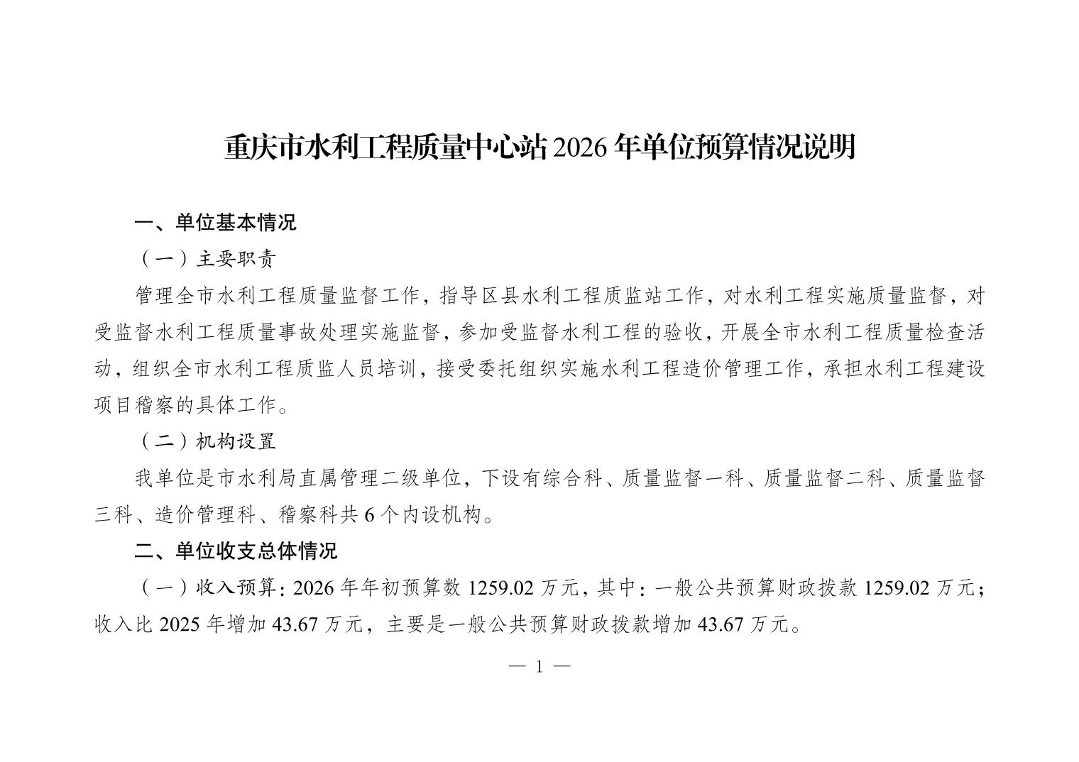 重庆市水利工程质量中心站2026年单位预算情况说明.pdf