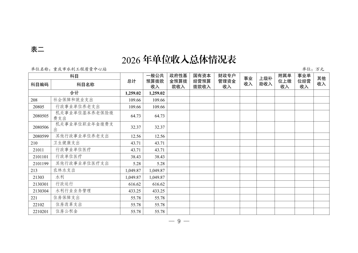 重庆市水利工程质量中心站2026年单位预算情况说明