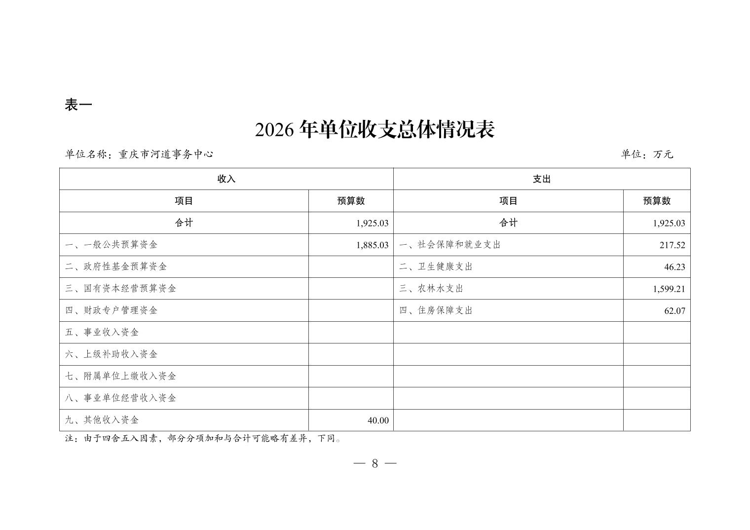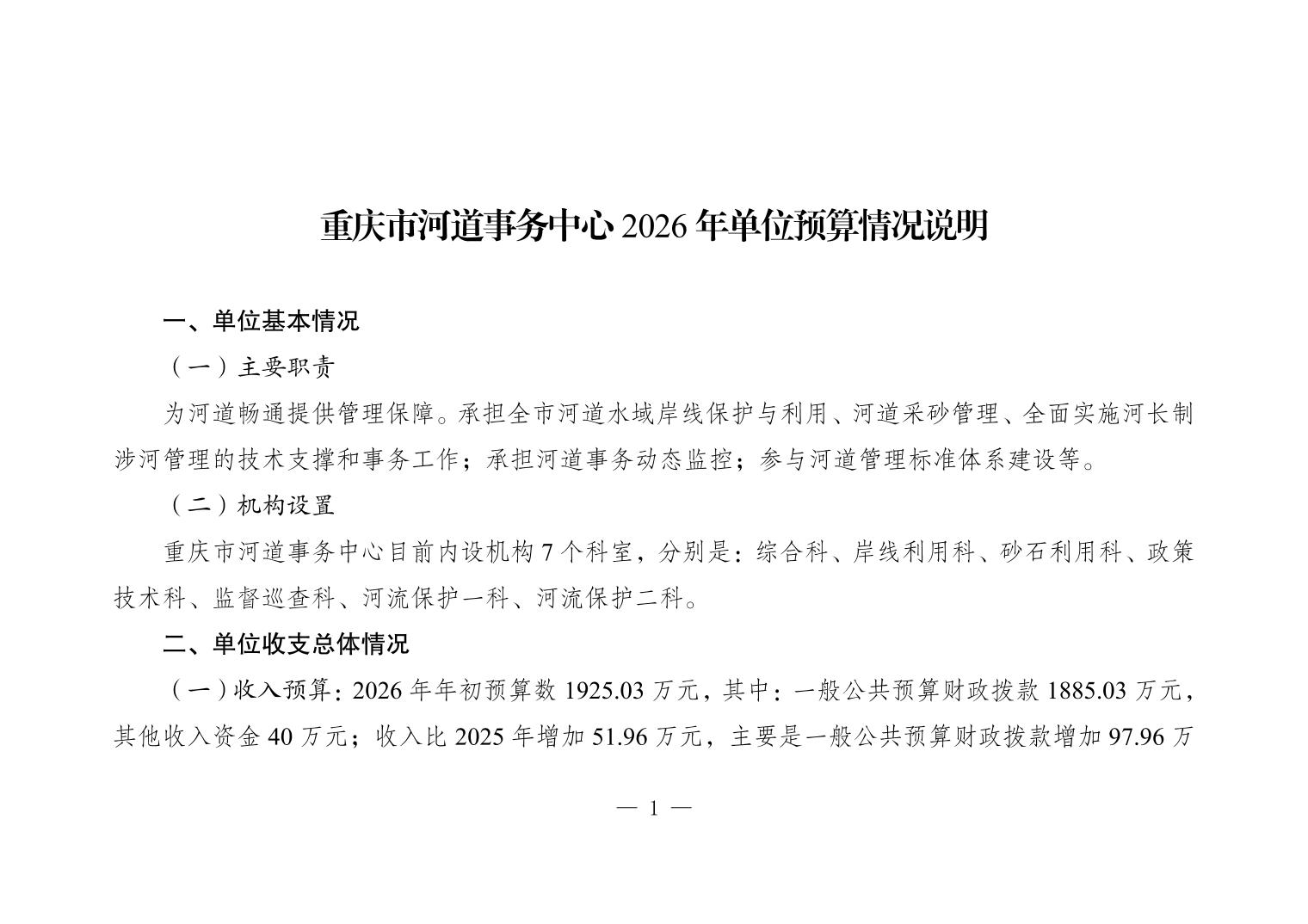 重庆市河道事务中心2026年单位预算情况说明.pdf