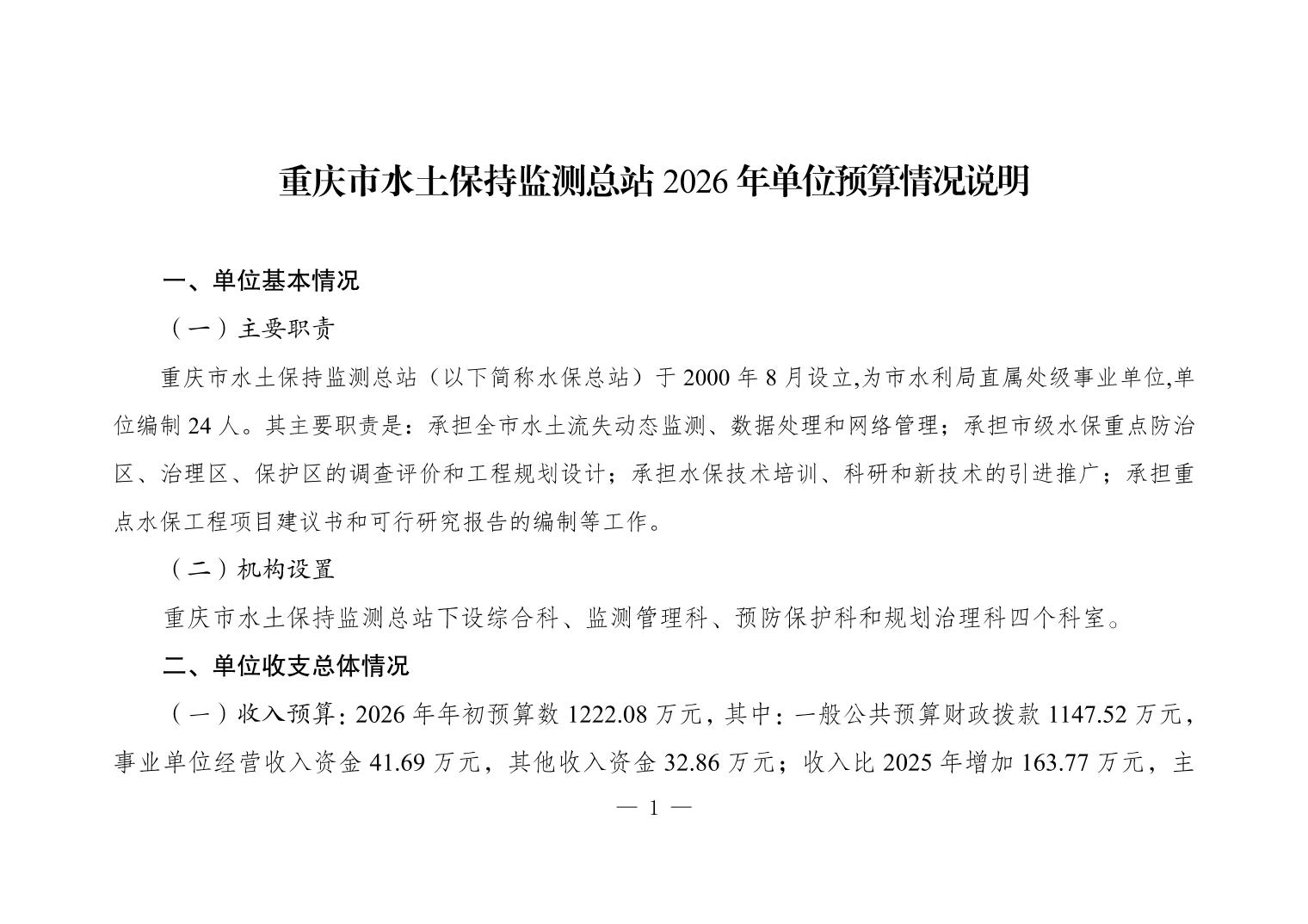 重庆市水土保持监测总站2026年单位预算情况说明.pdf