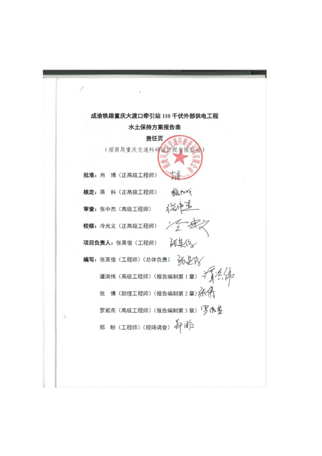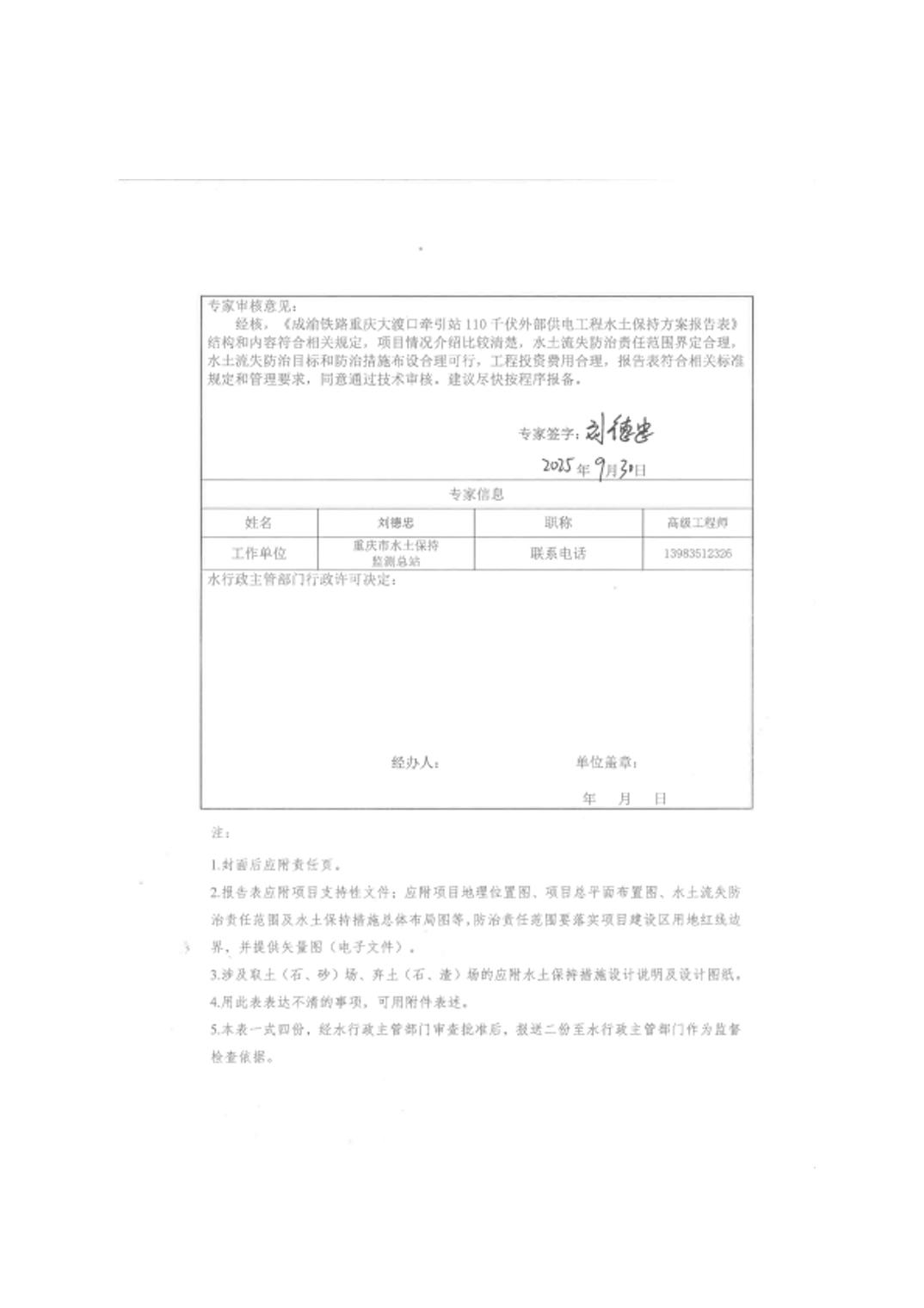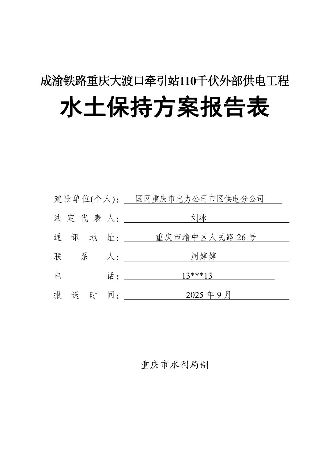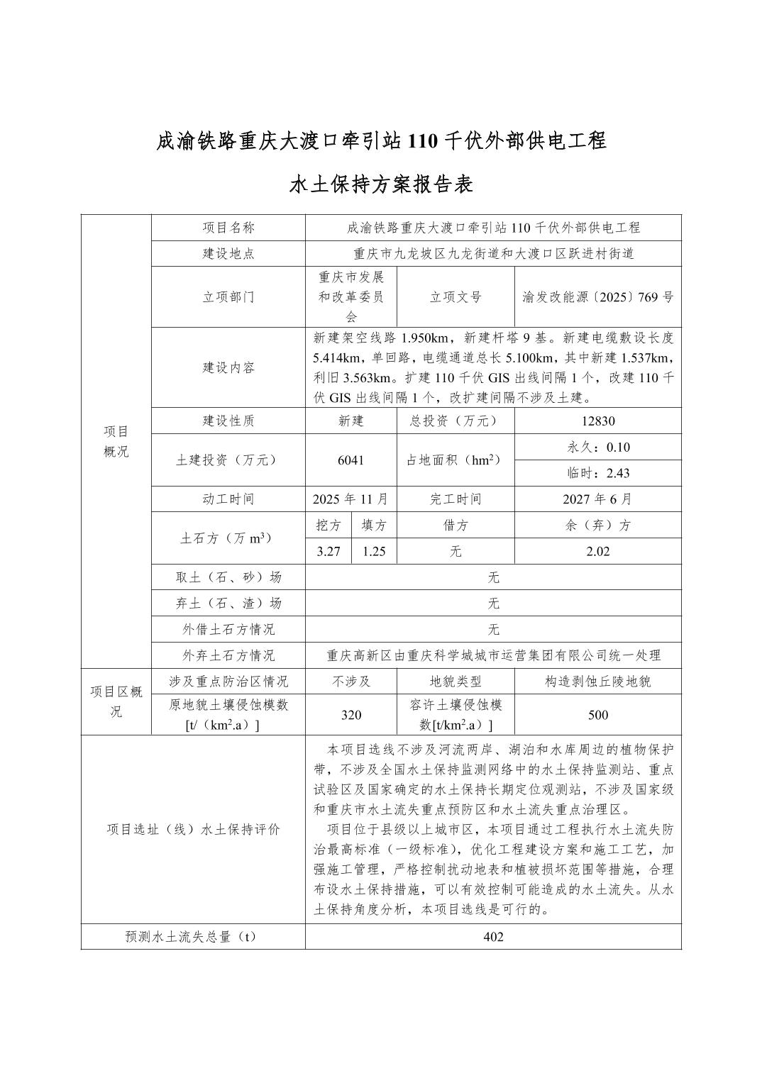 成渝铁路重庆大渡口牵引站110千伏外部供电工程水土保持方案报告表.doc