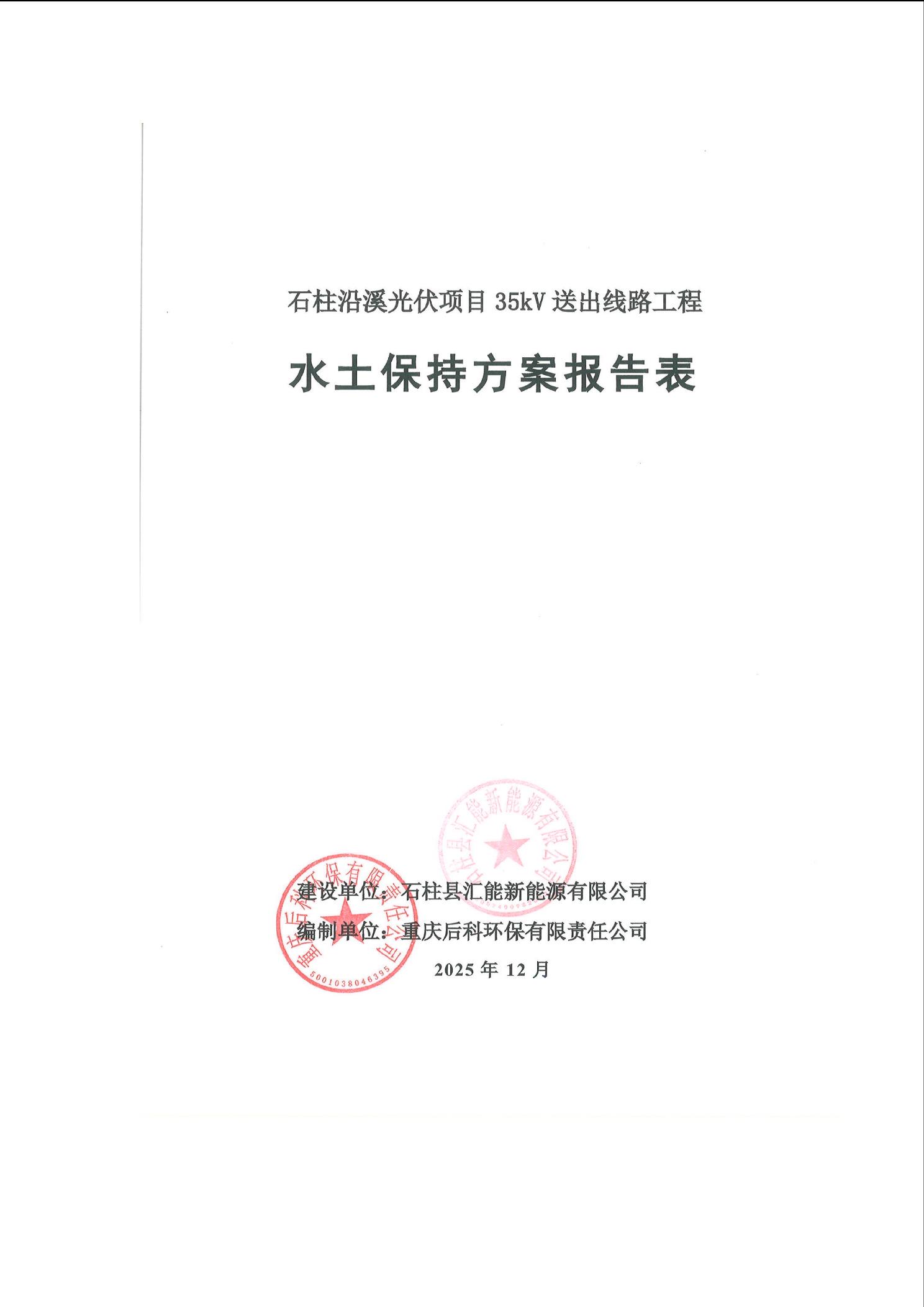 石柱沿溪光伏项目35kV送出线路工程水土保持方案报告表
