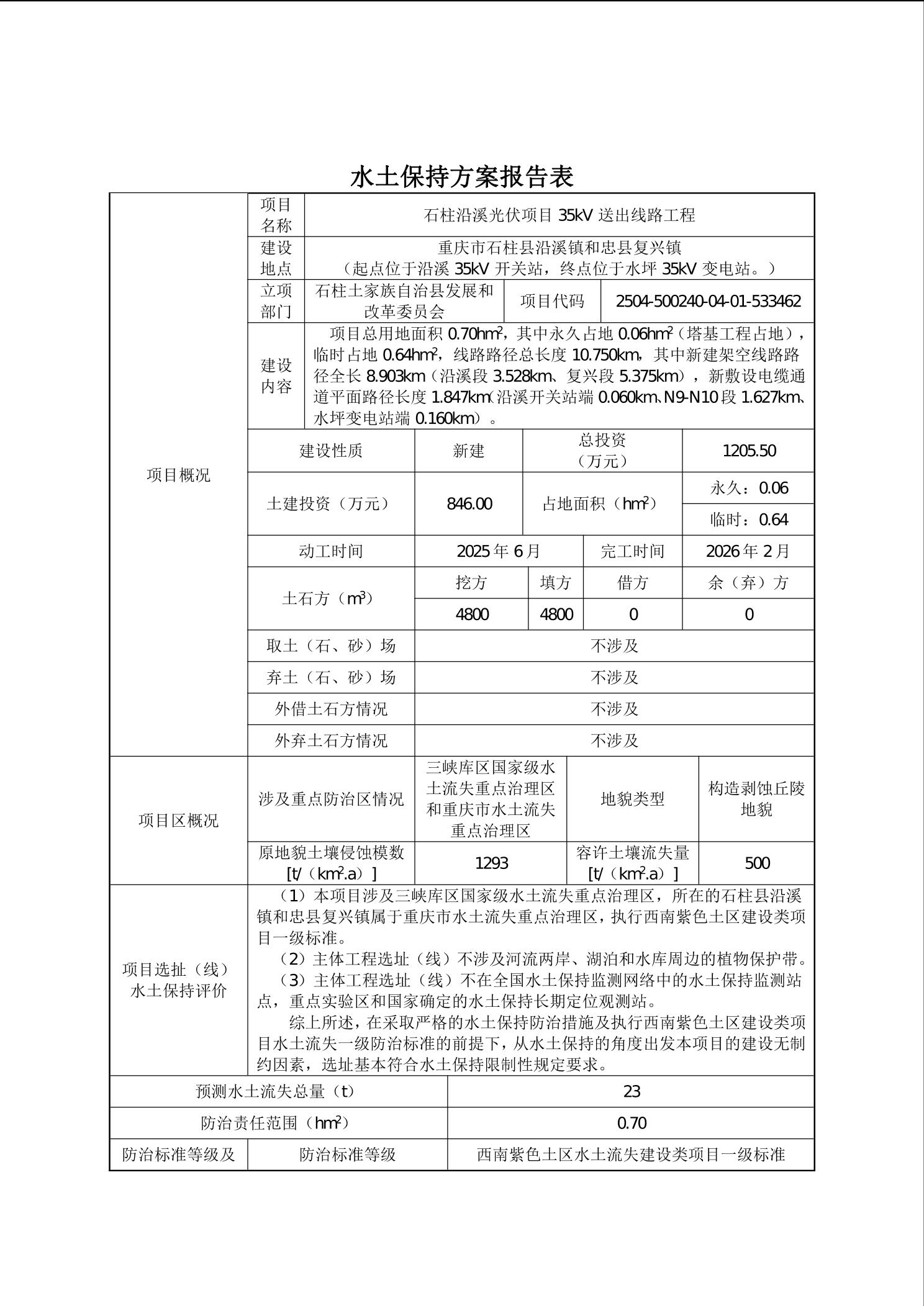 石柱沿溪光伏项目35kV送出线路工程水土保持方案报告表.doc