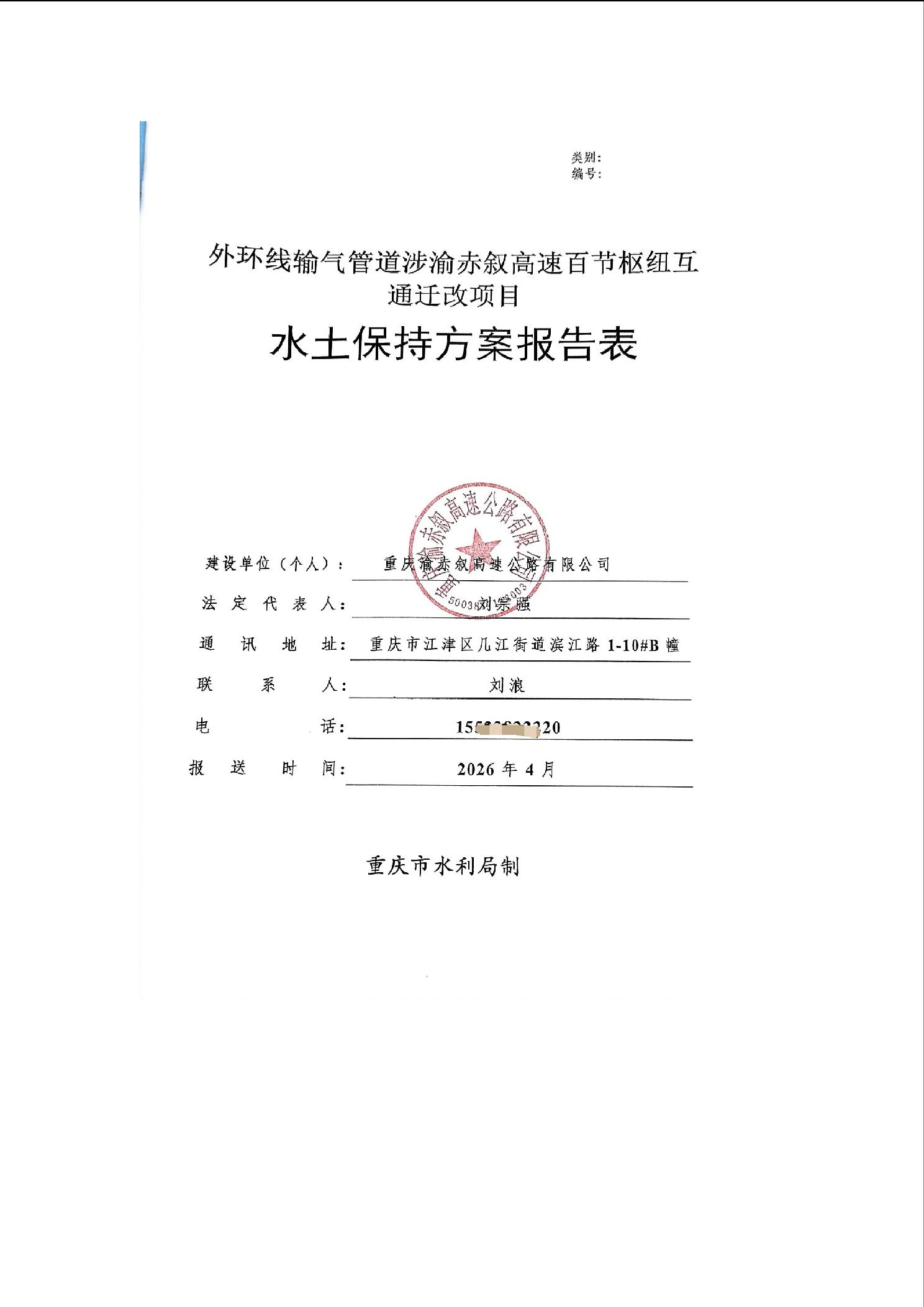 外环线输气管道涉渝赤叙高速百节枢纽互通迁改项目水土保持方案报告表.doc