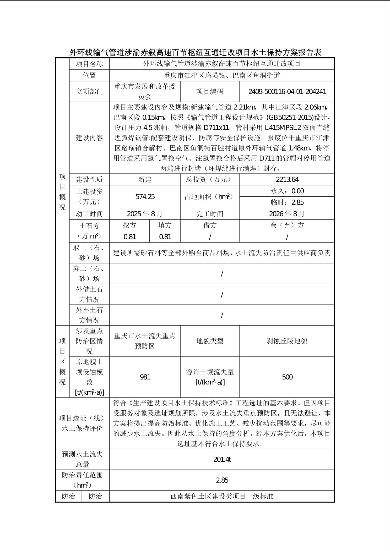 外环线输气管道涉渝赤叙高速百节枢纽互通迁改项目水土保持方案报告表