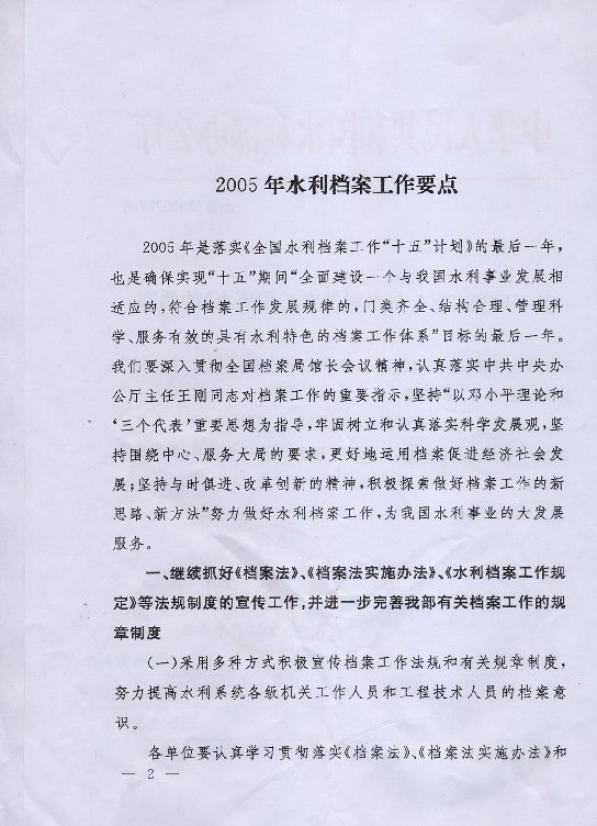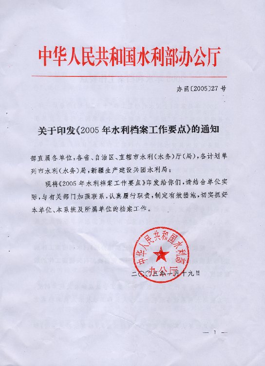 水利部办公厅关于印发《2005年水利档案工作要点》的通知