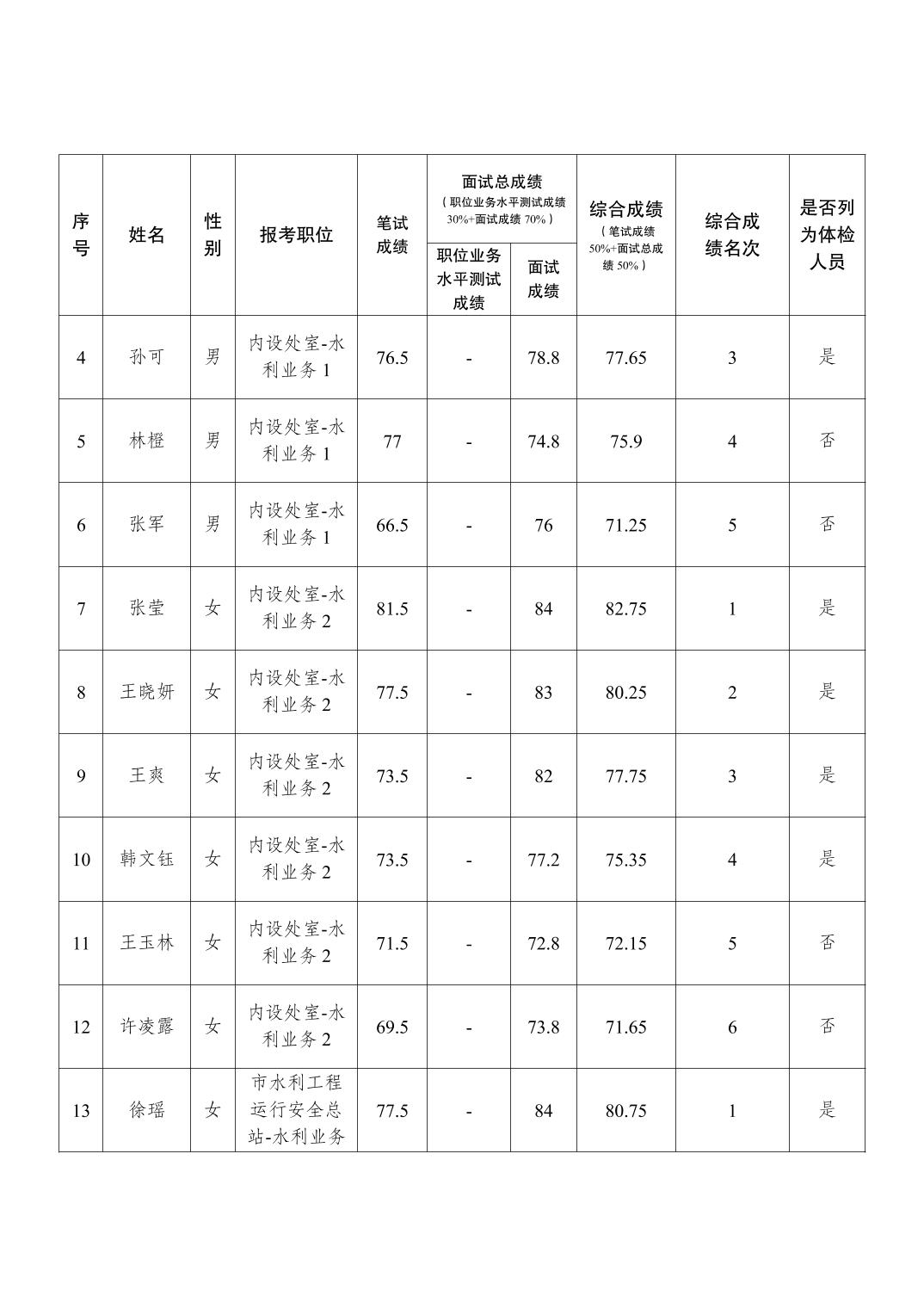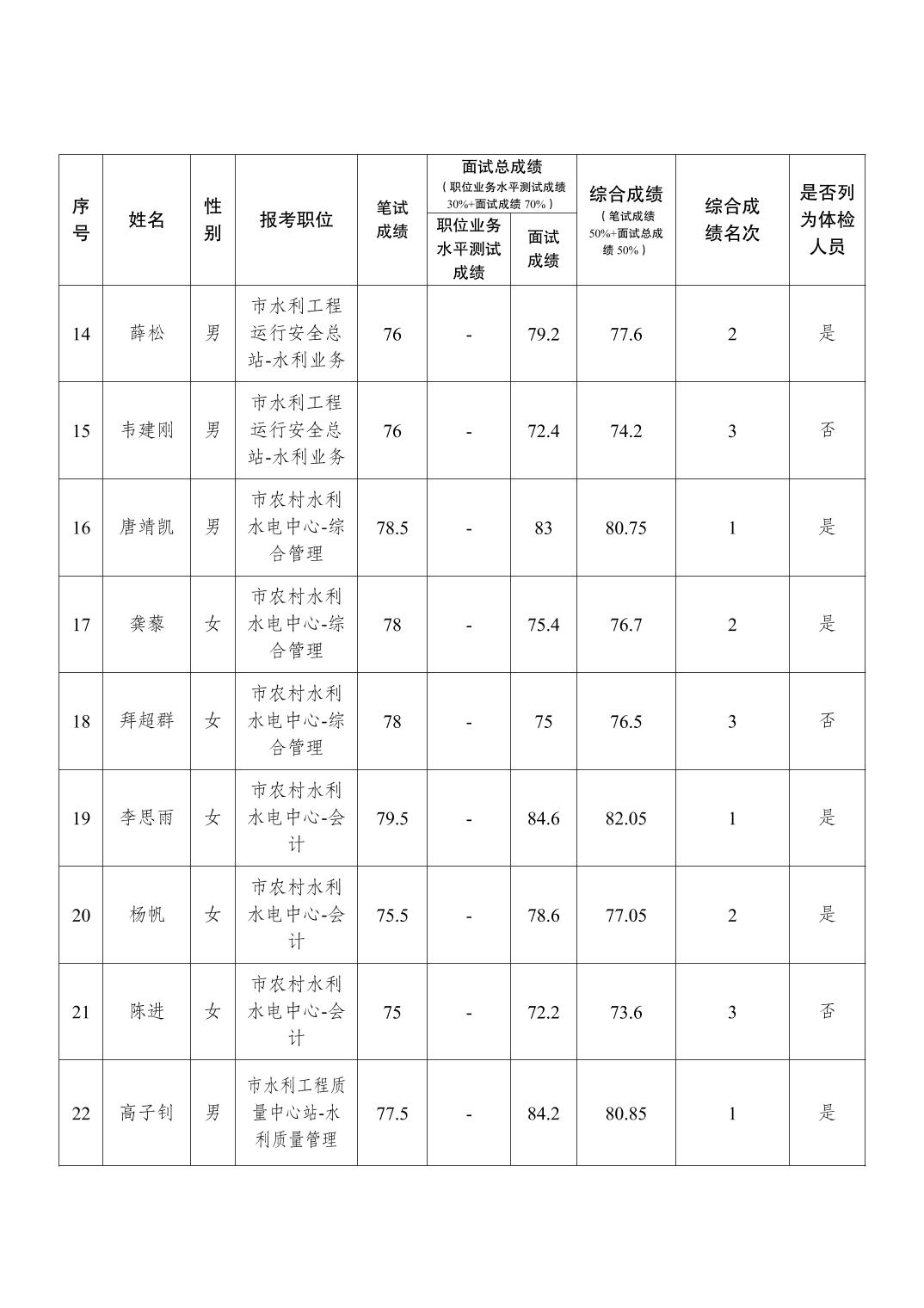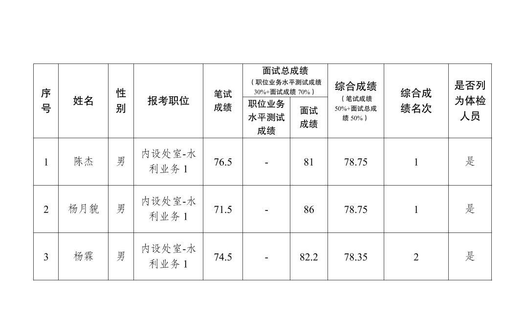 重庆市水利局关于公布2025年度公开遴选公务员面试总成绩、体检人员名单等有关事宜的通知