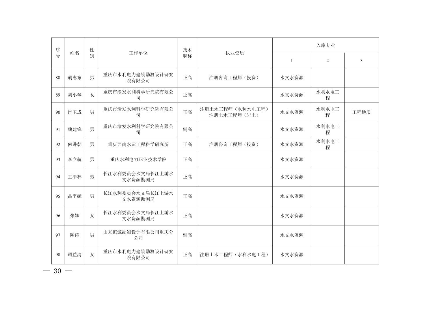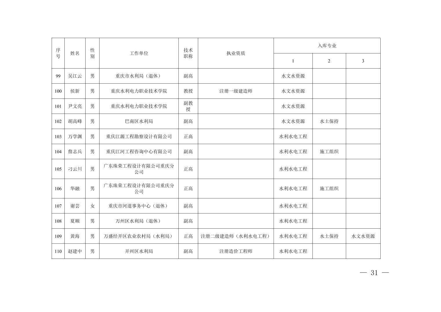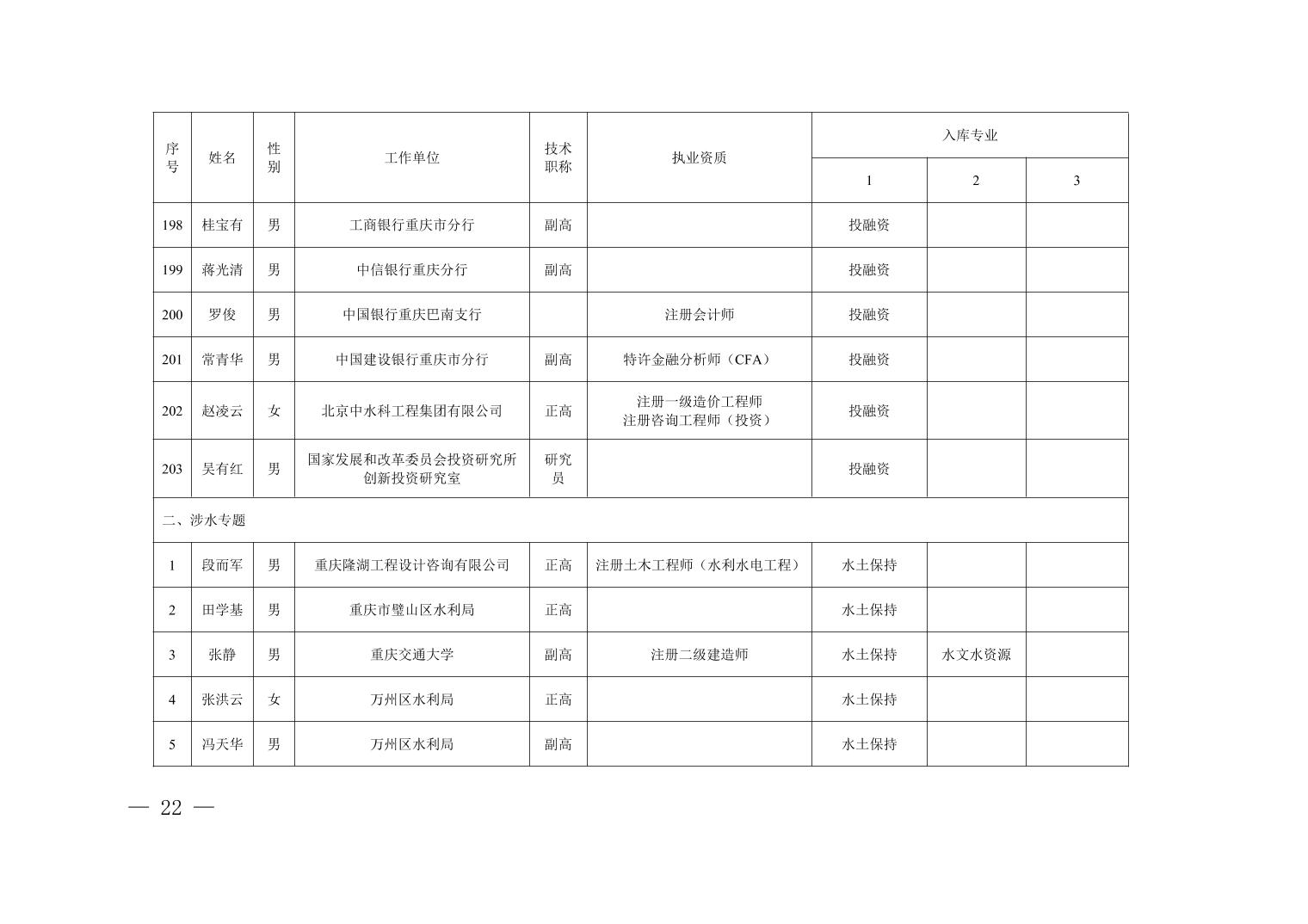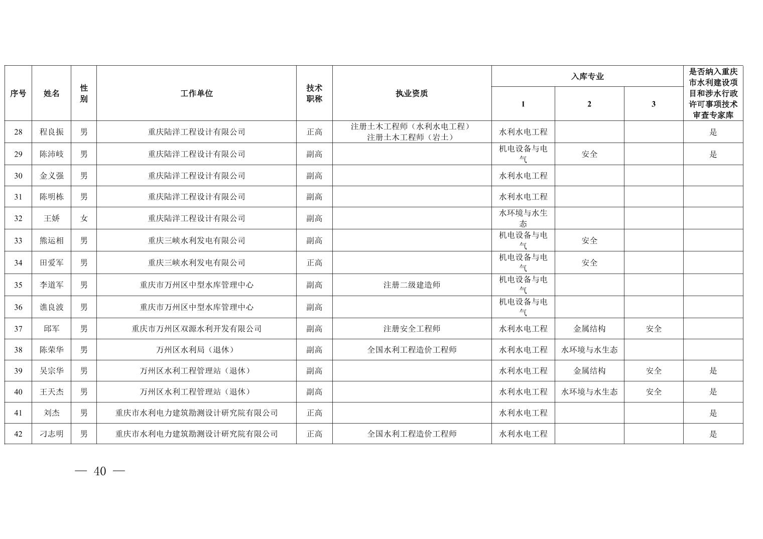 全文下载:重庆市水利局办公室关于印发重庆市水利建设项目和涉水行政许可事项技术审查等两个专家库人员名单的通知.docx