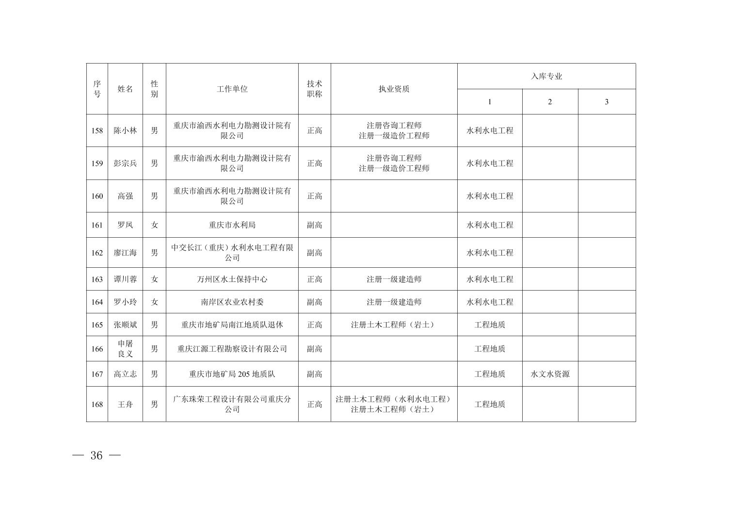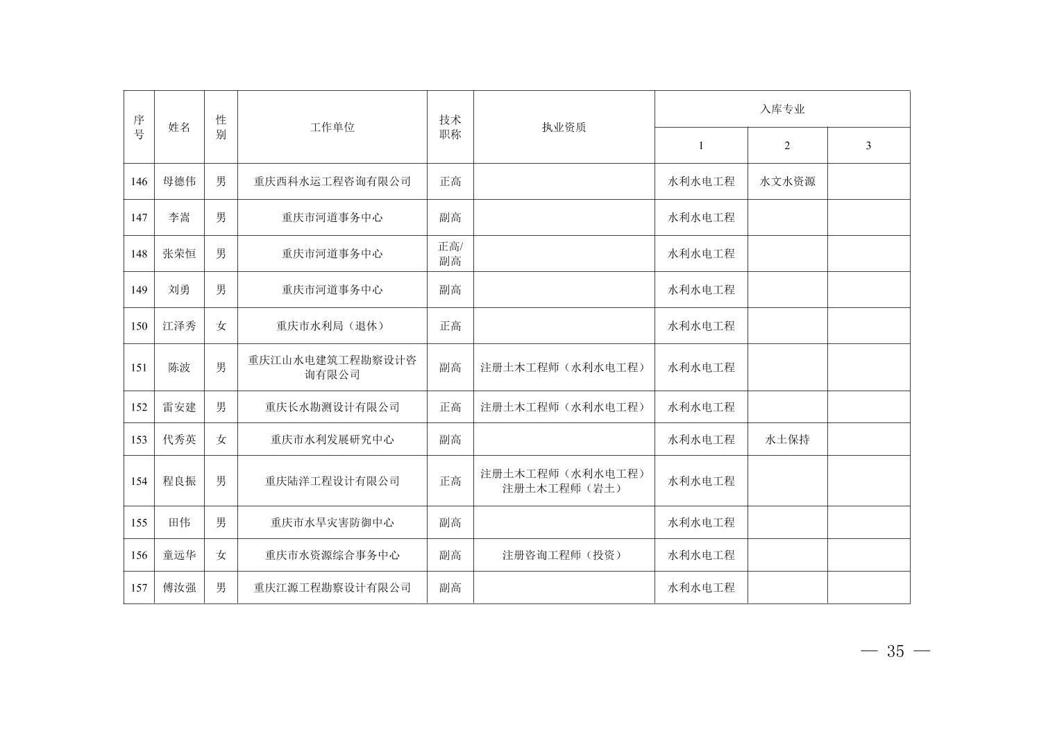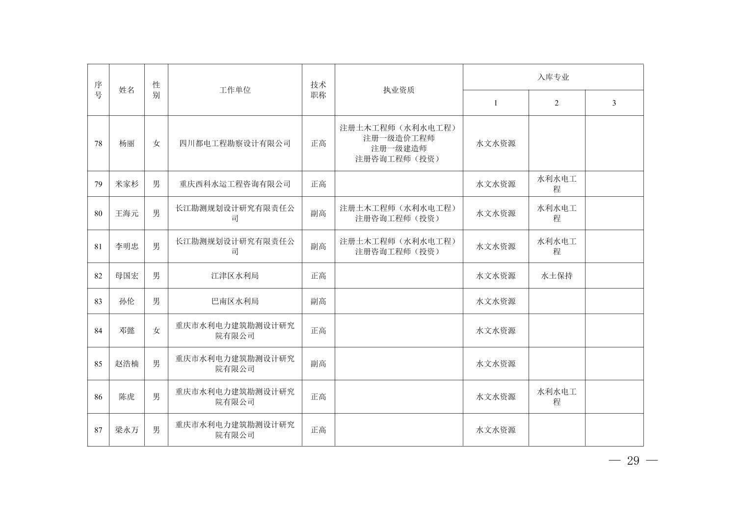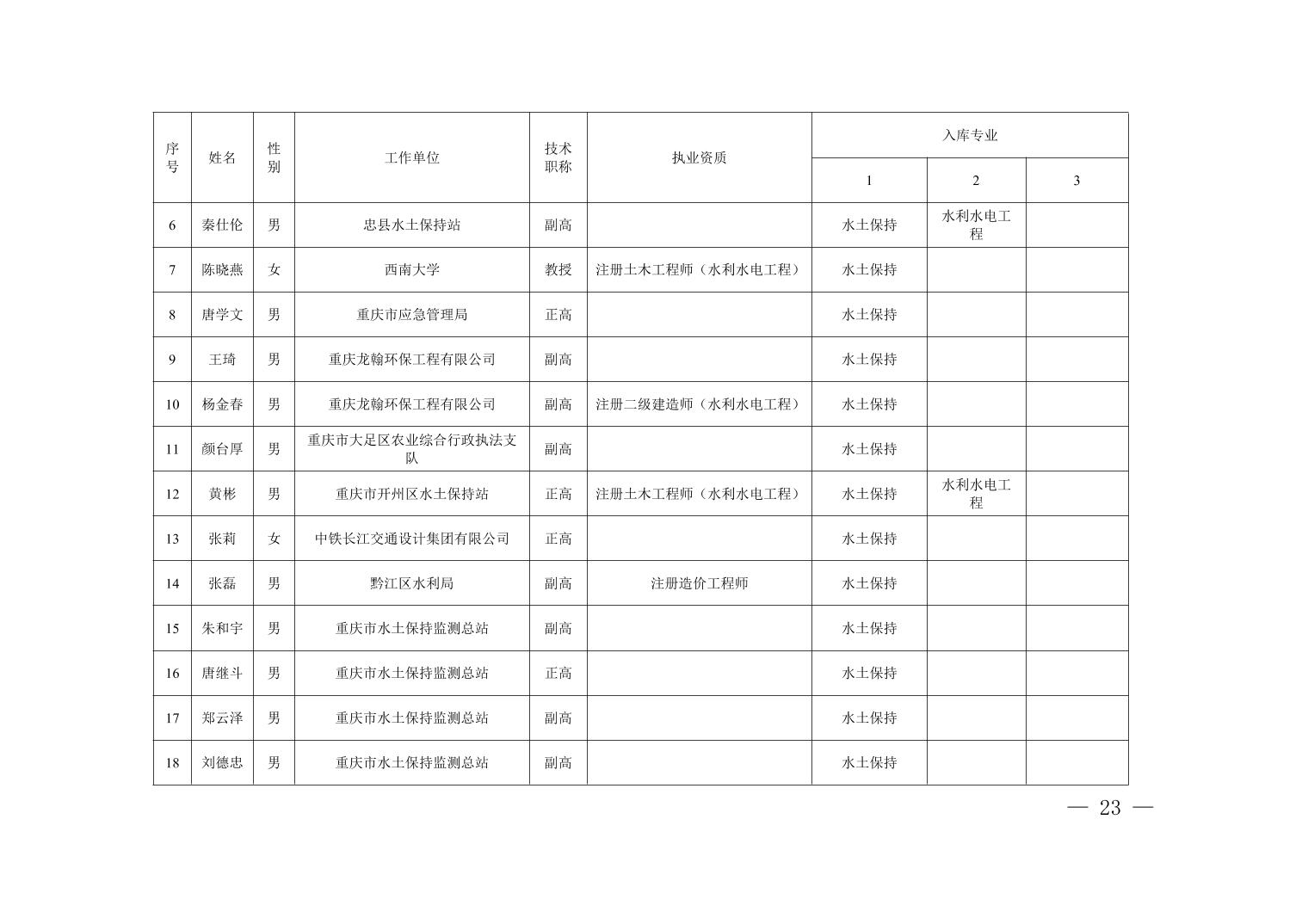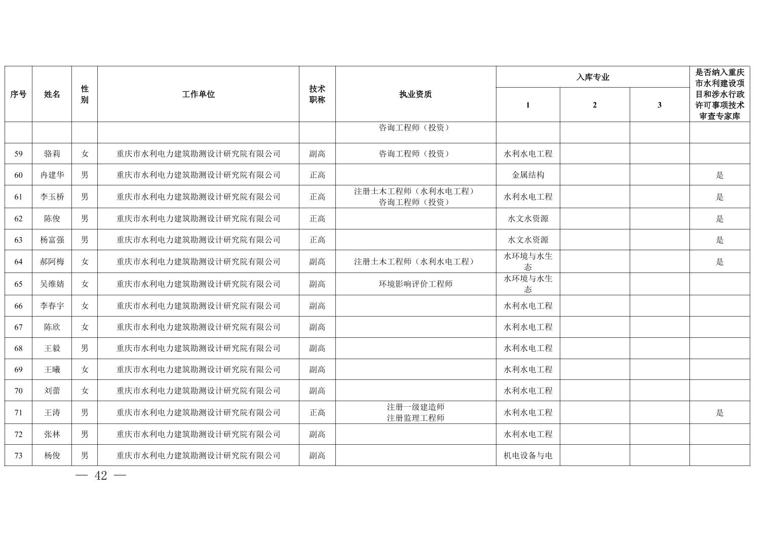 全文下载:重庆市水利局办公室关于印发重庆市水利建设项目和涉水行政许可事项技术审查等两个专家库人员名单的通知.docx