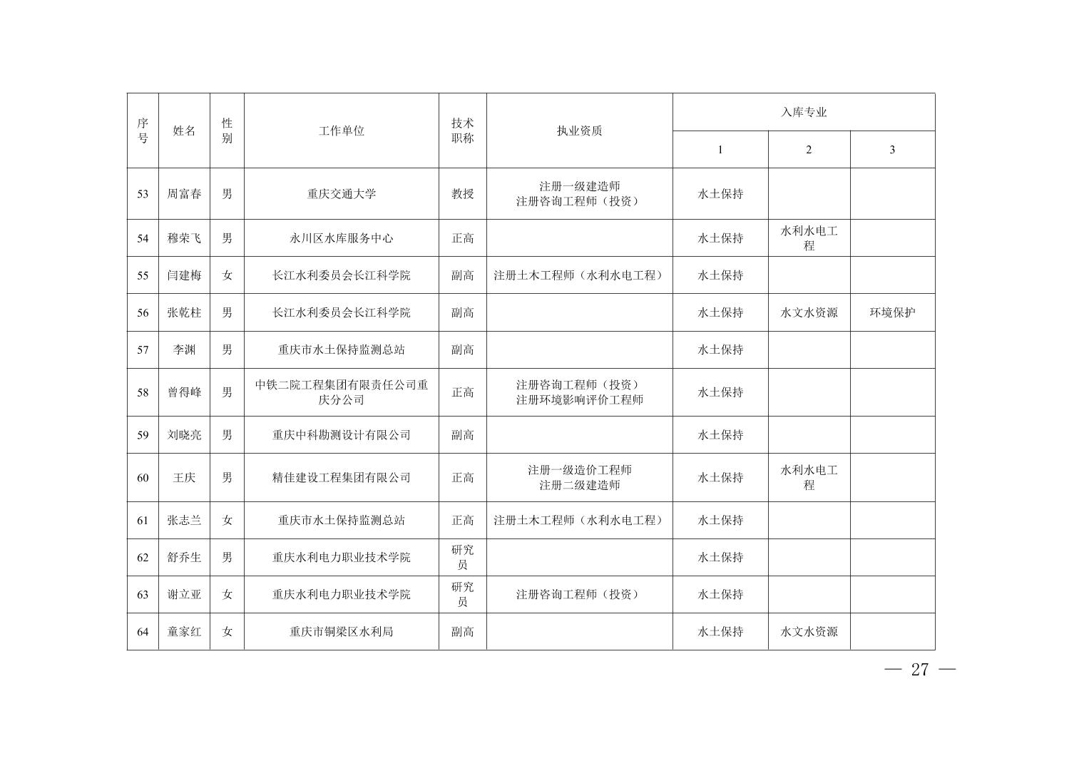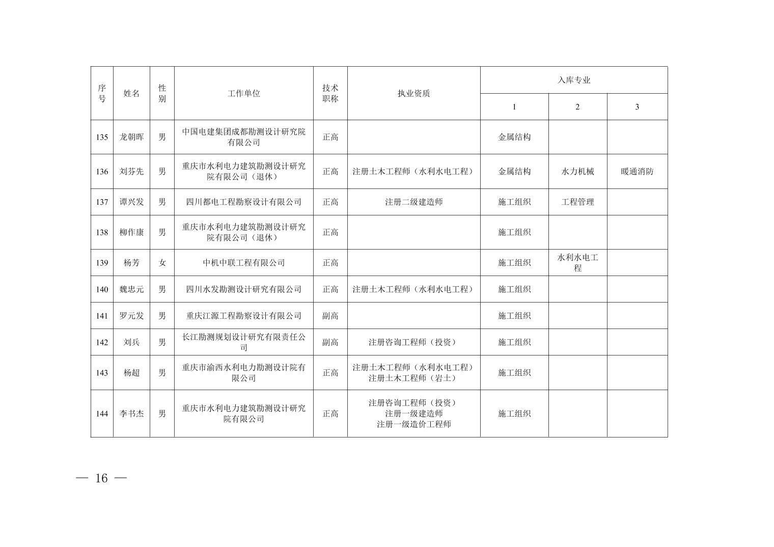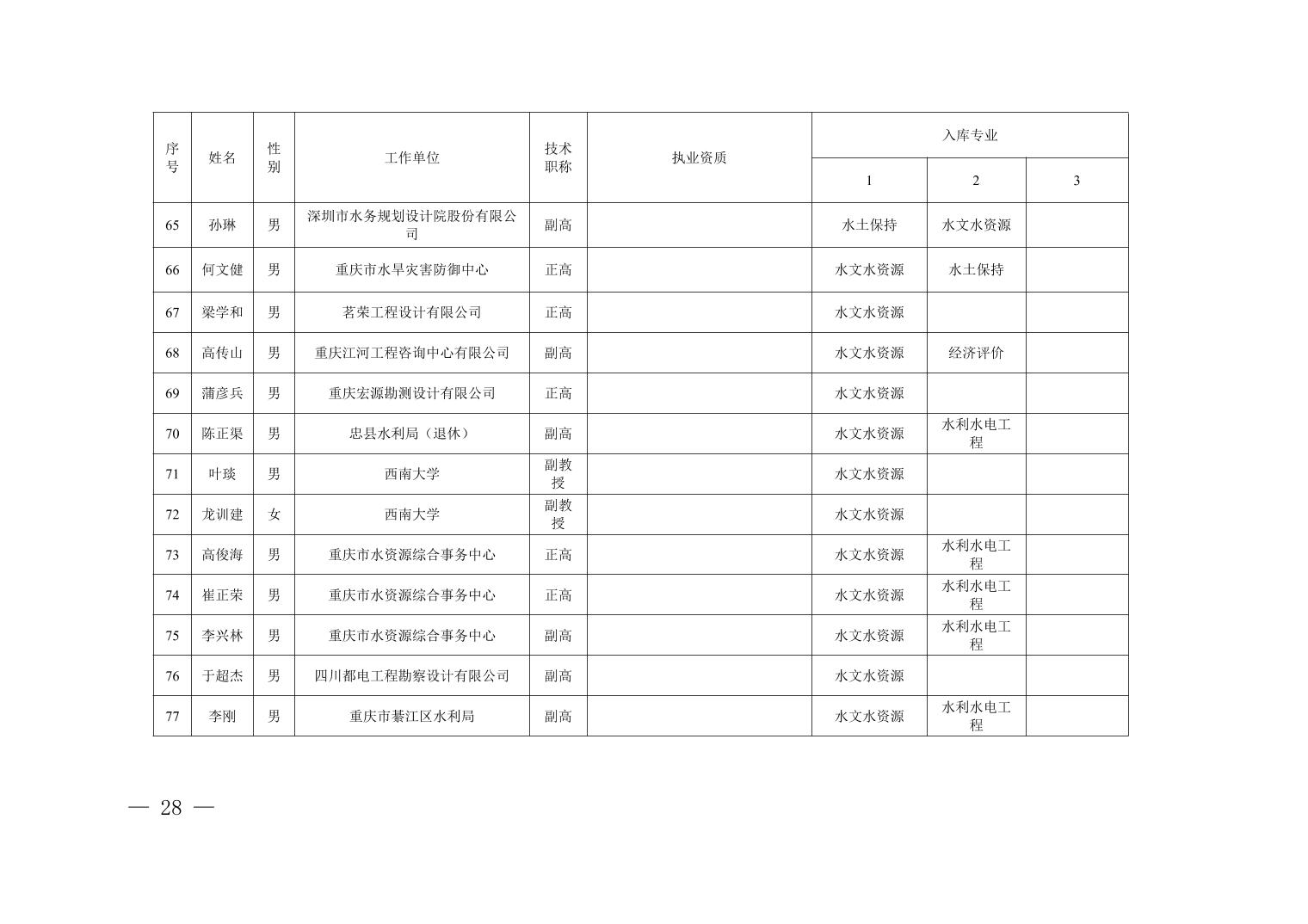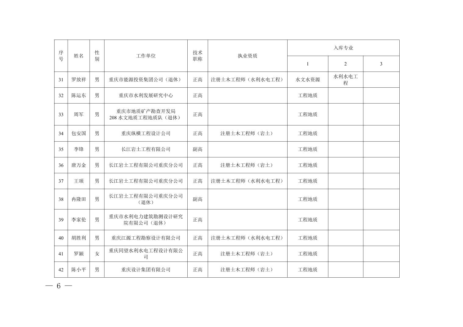 全文下载:重庆市水利局办公室关于印发重庆市水利建设项目和涉水行政许可事项技术审查等两个专家库人员名单的通知.docx