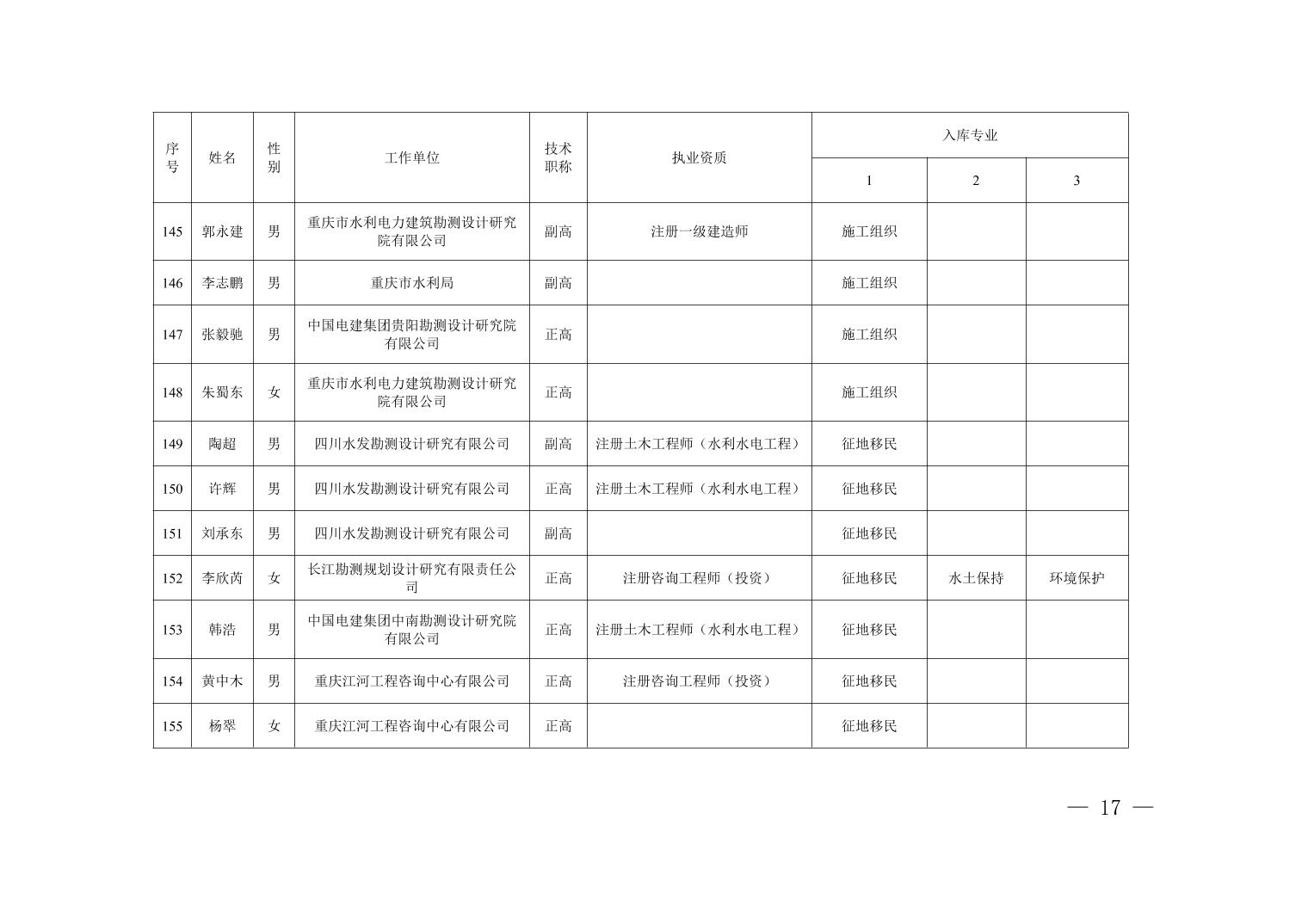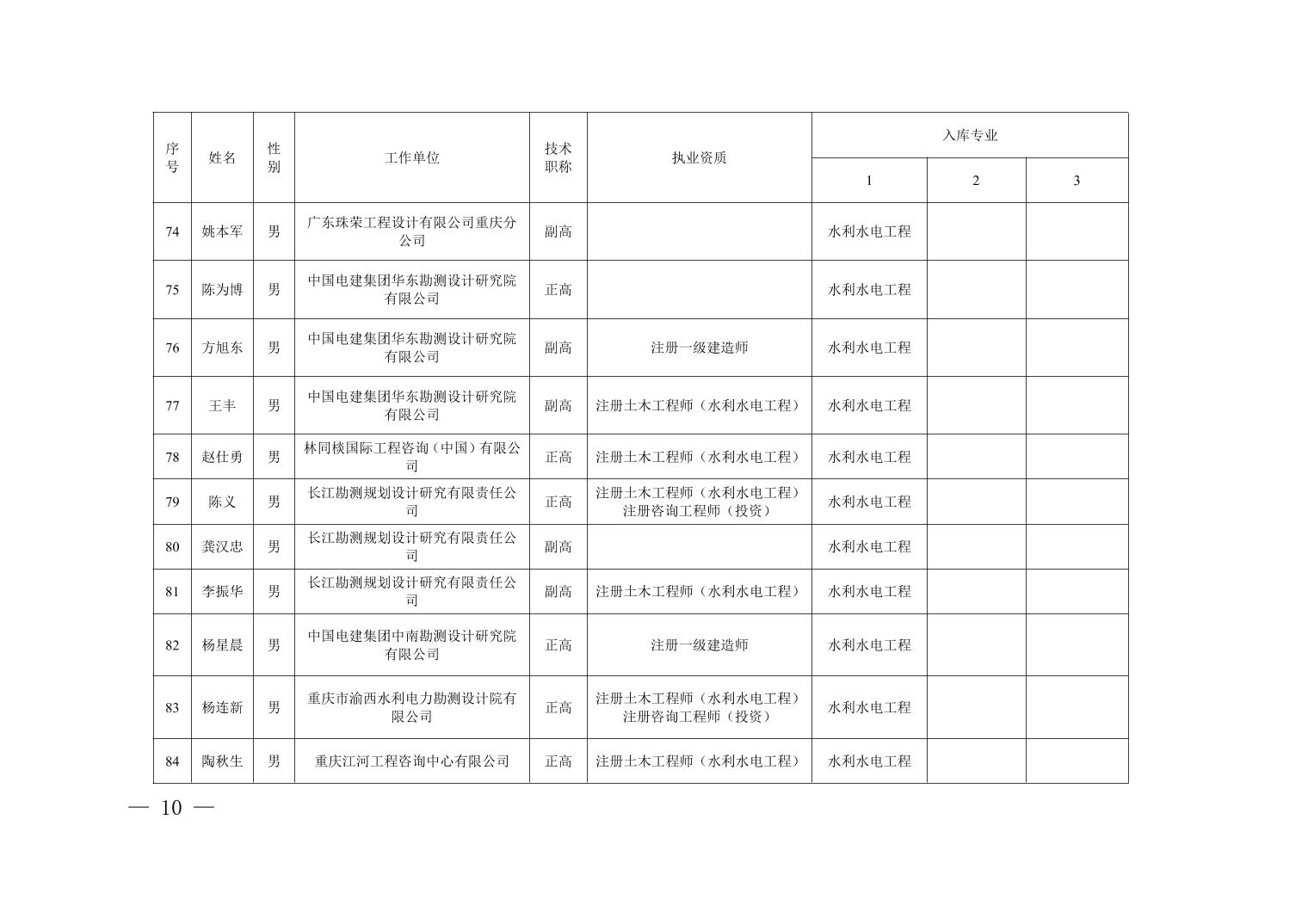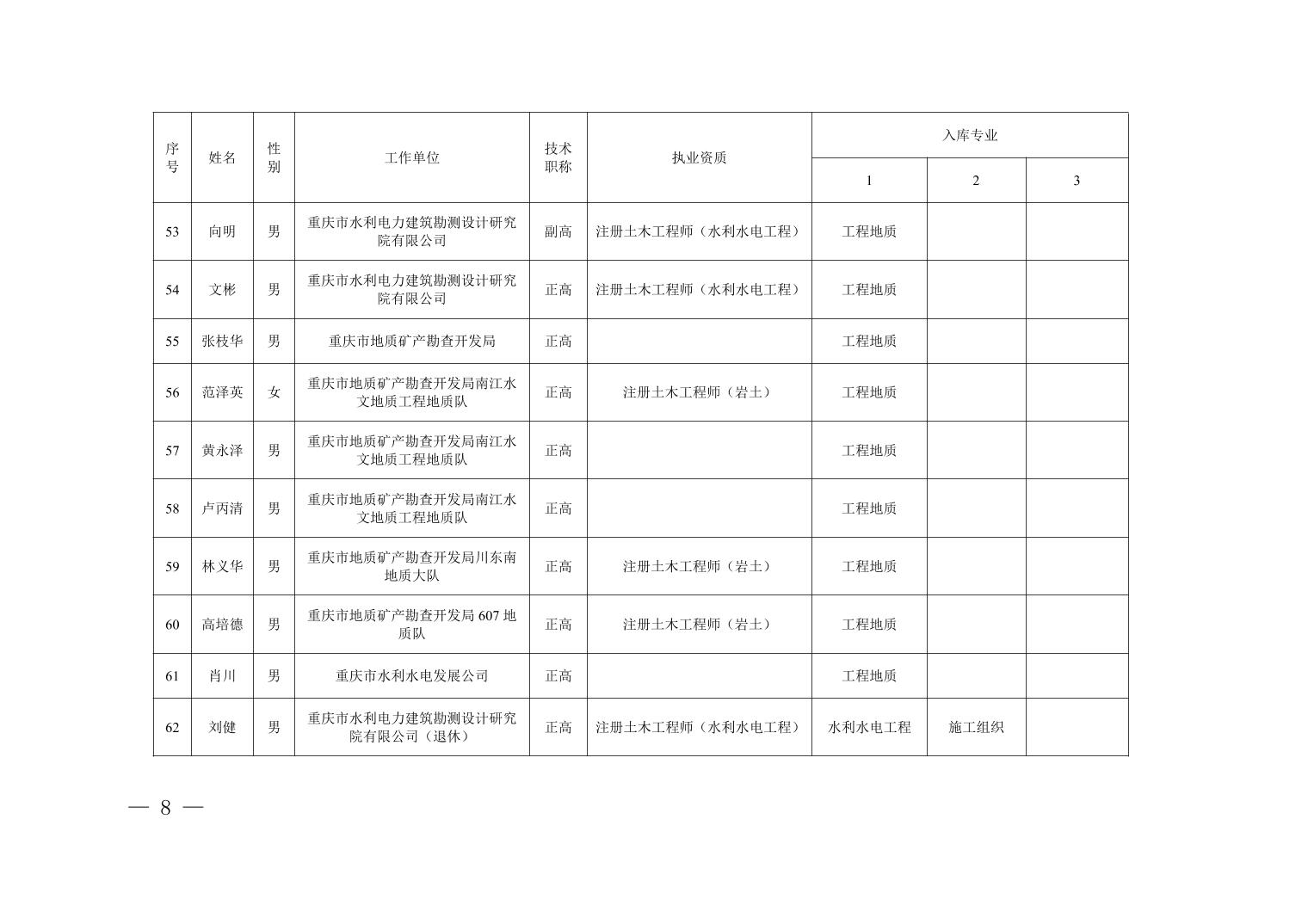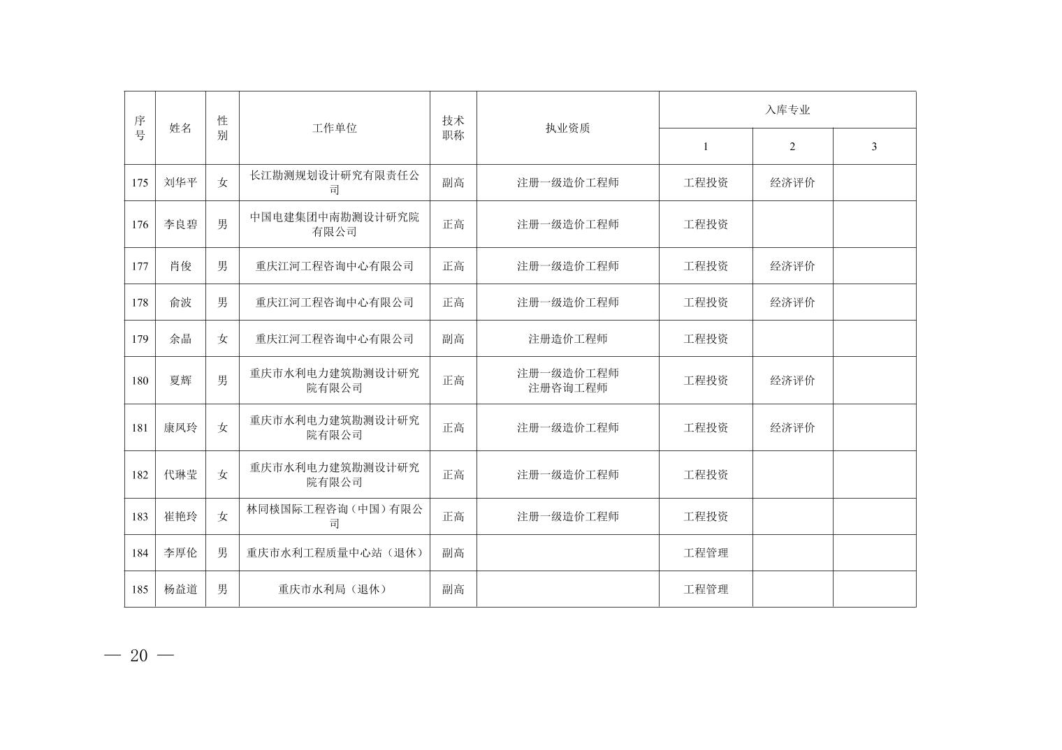 全文下载:重庆市水利局办公室关于印发重庆市水利建设项目和涉水行政许可事项技术审查等两个专家库人员名单的通知.docx