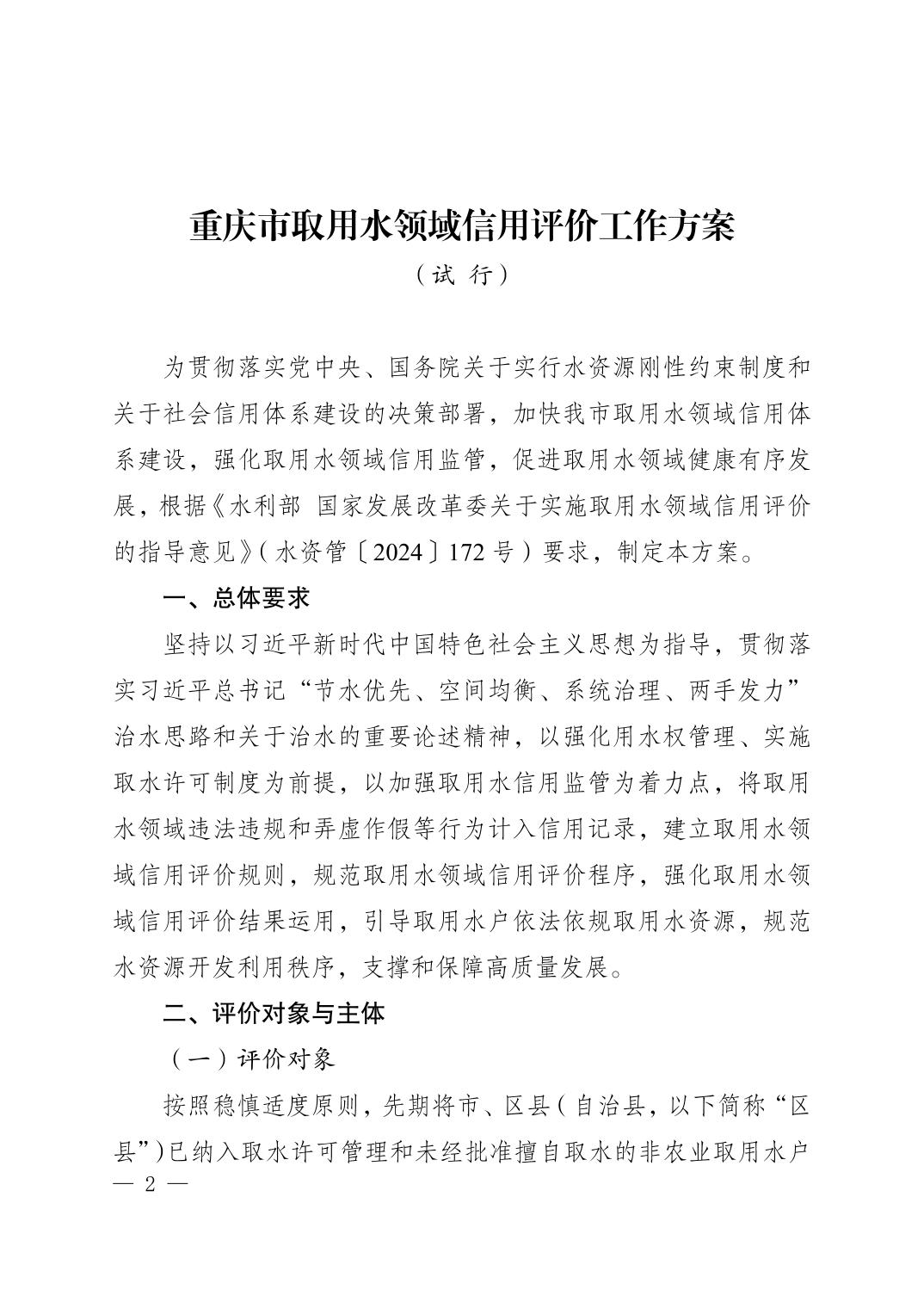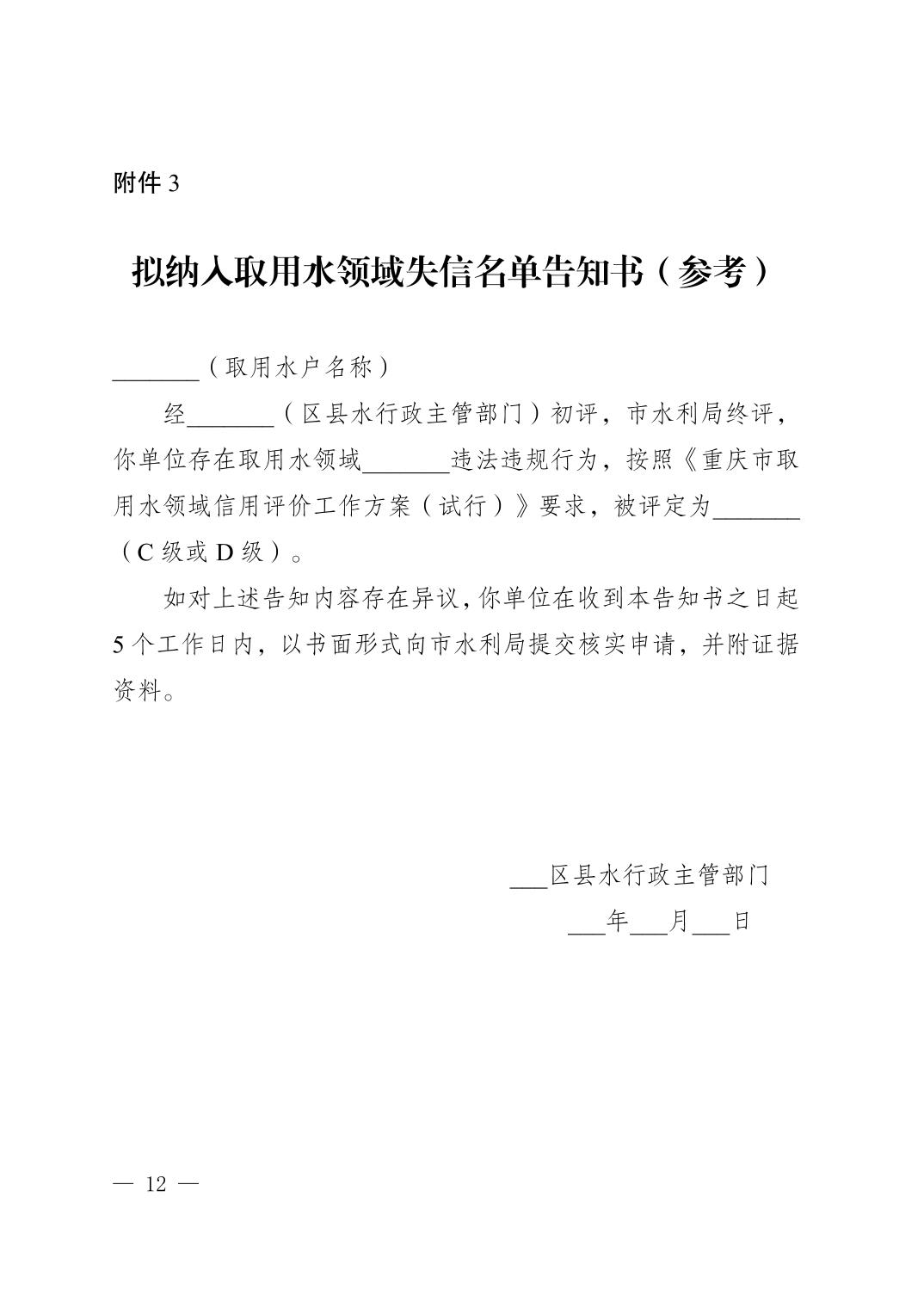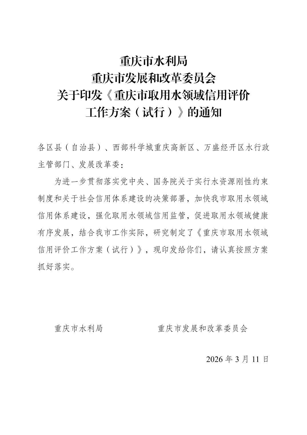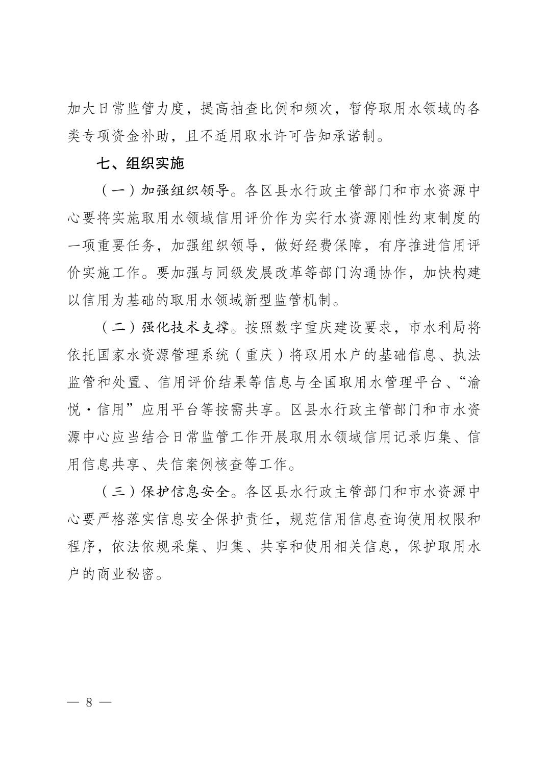 重庆市水利局 重庆市发展和改革委员会关于印发《重庆市取用水领域信用评价工作方案(试行)》的通知.pdf