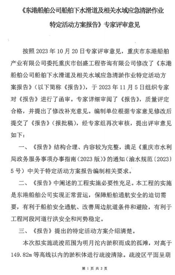 附件:东港船舶公司船舶下滑道及相关水域应急清淤作业特定活动方案报告专家评审意见