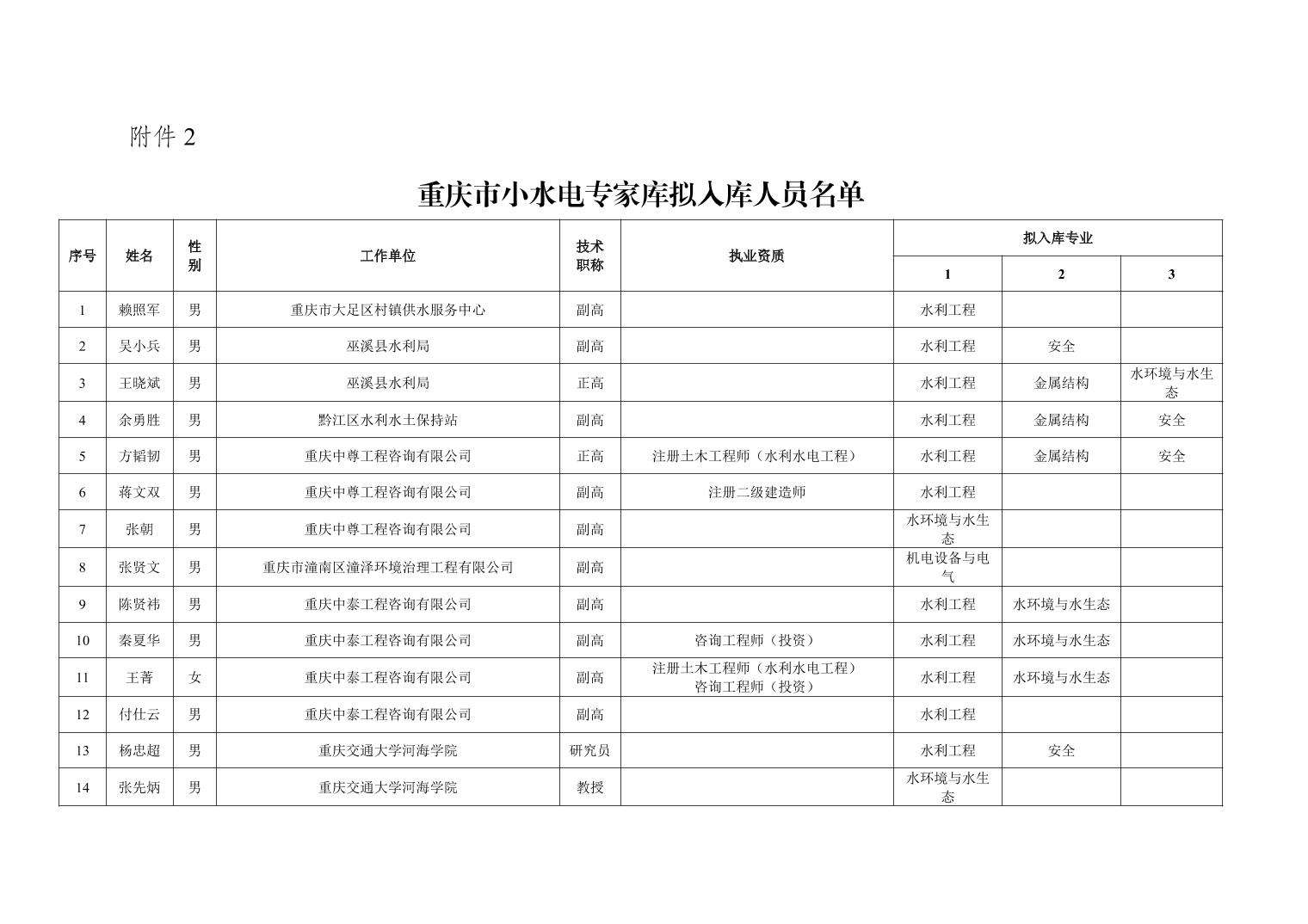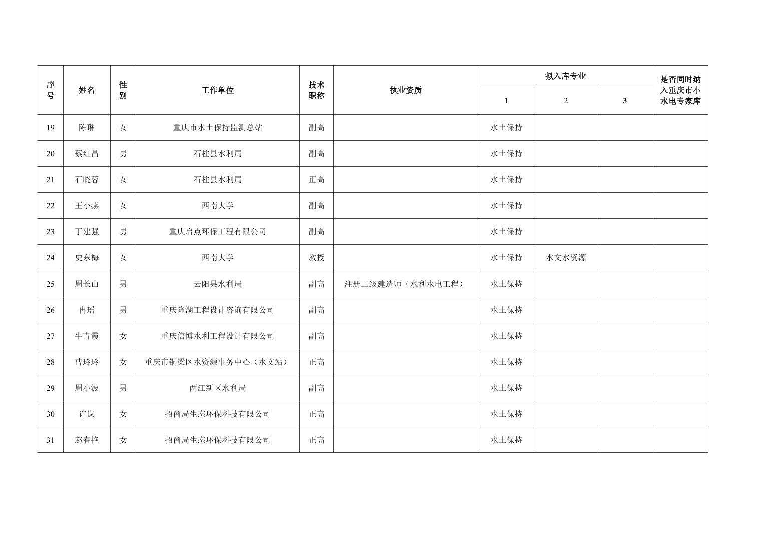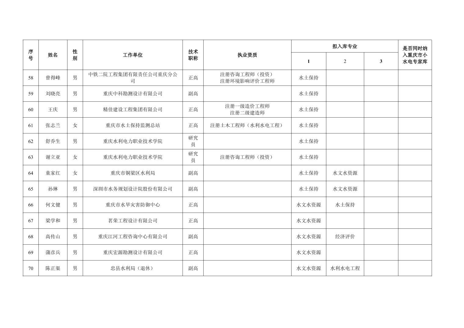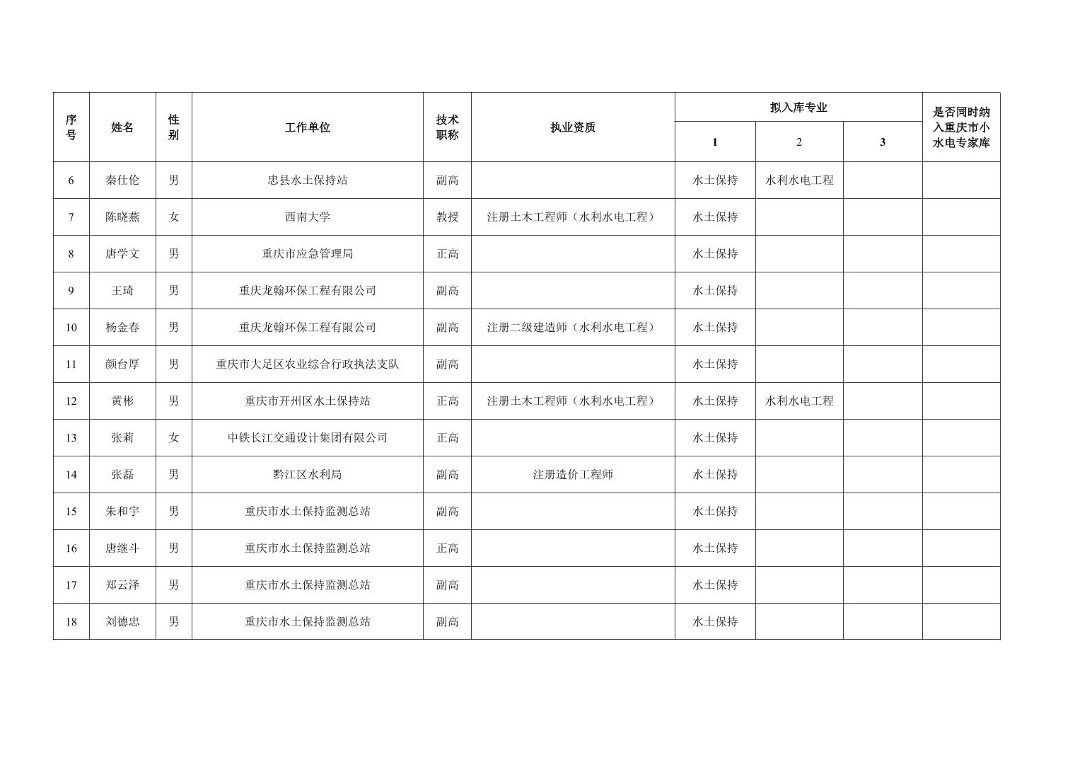 重庆市水利局办公室关于重庆市水利建设项目和涉水行政许可事项技术审查等两个专家库拟入库人员名单的公示