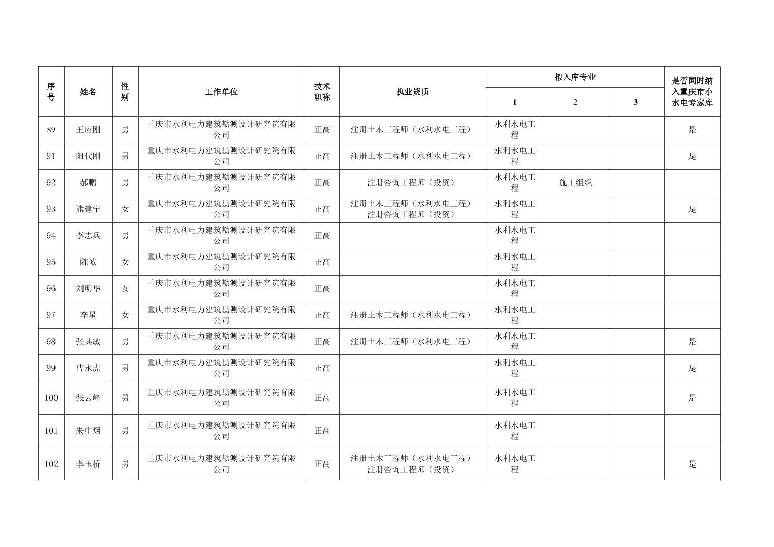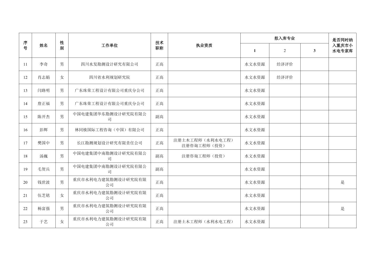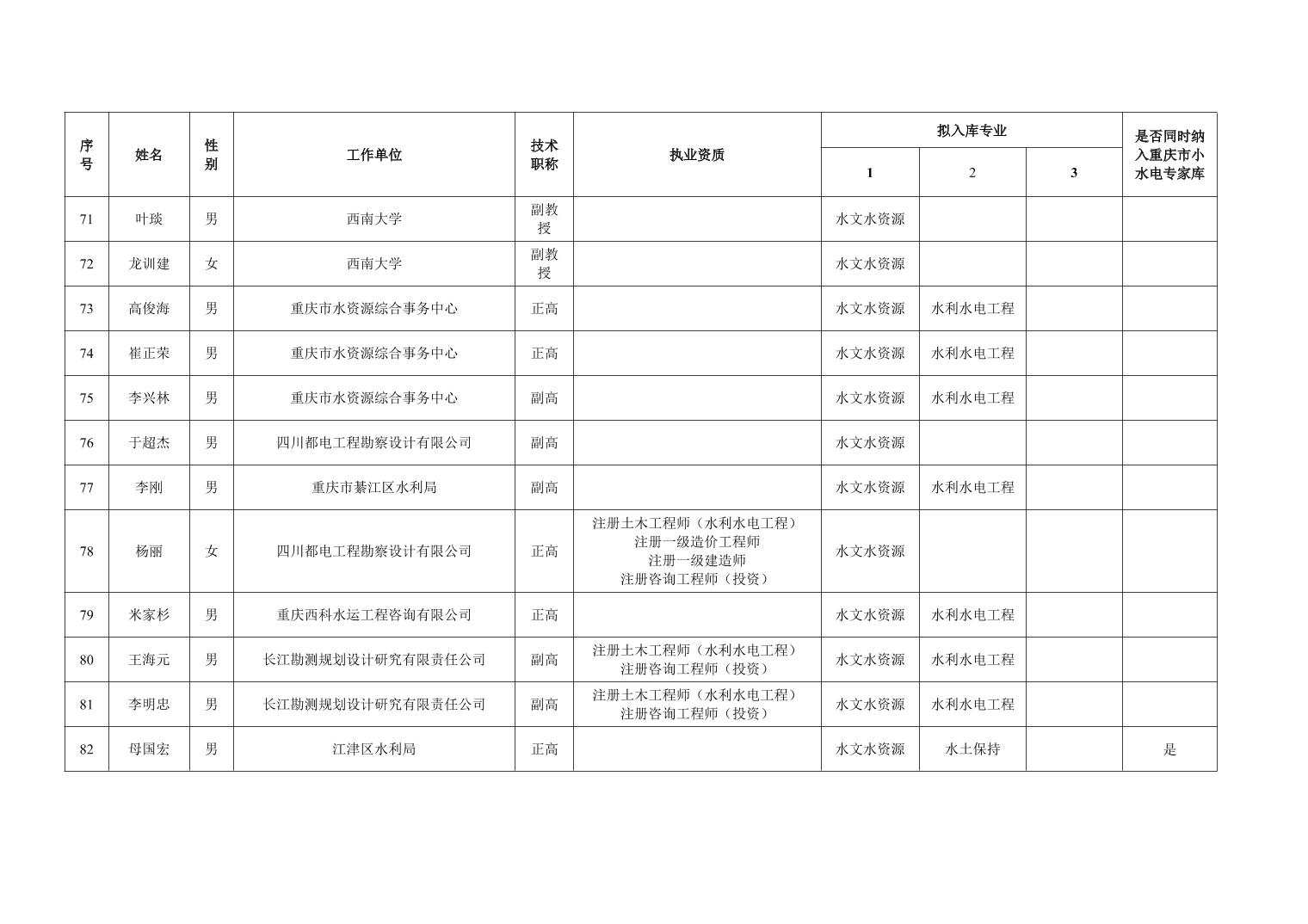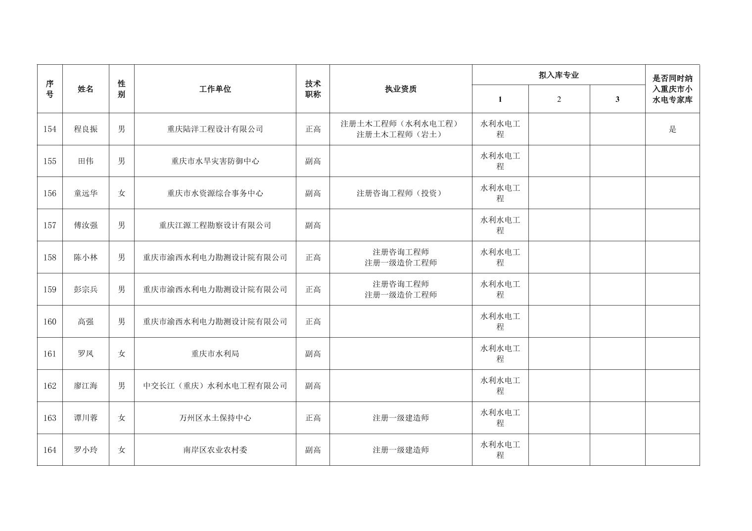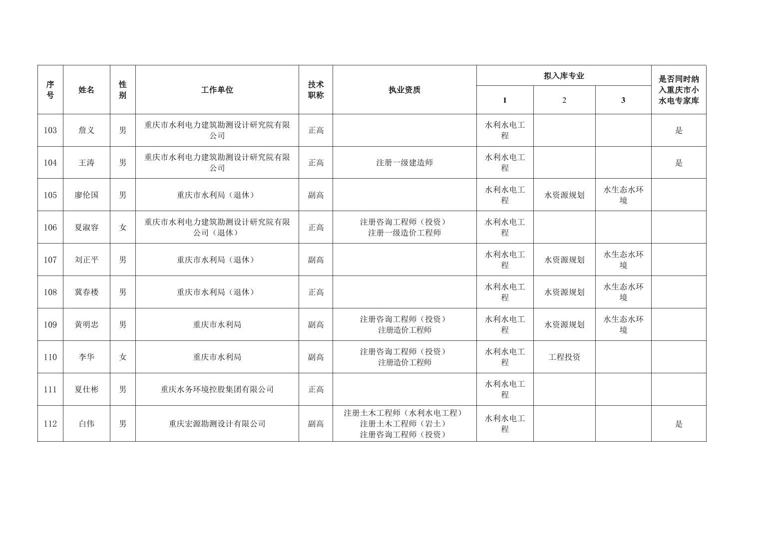 重庆市水利局办公室关于重庆市水利建设项目和涉水行政许可事项技术审查等两个专家库拟入库人员名单的公示