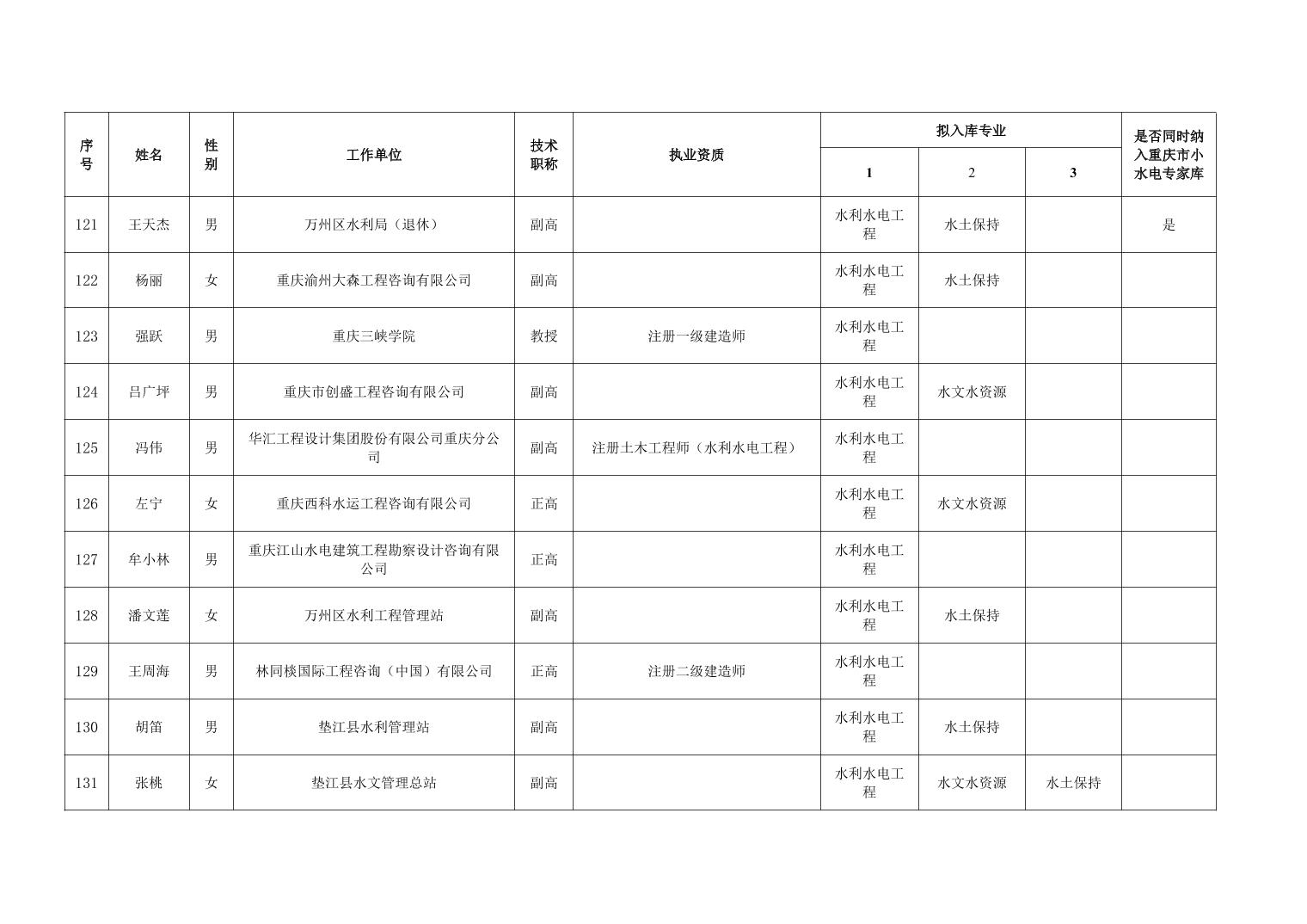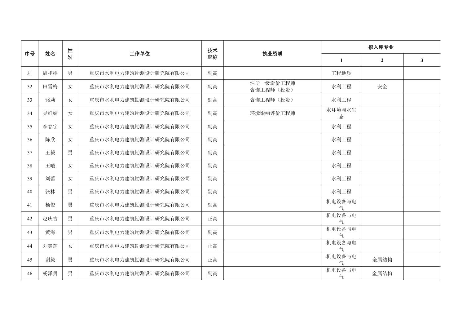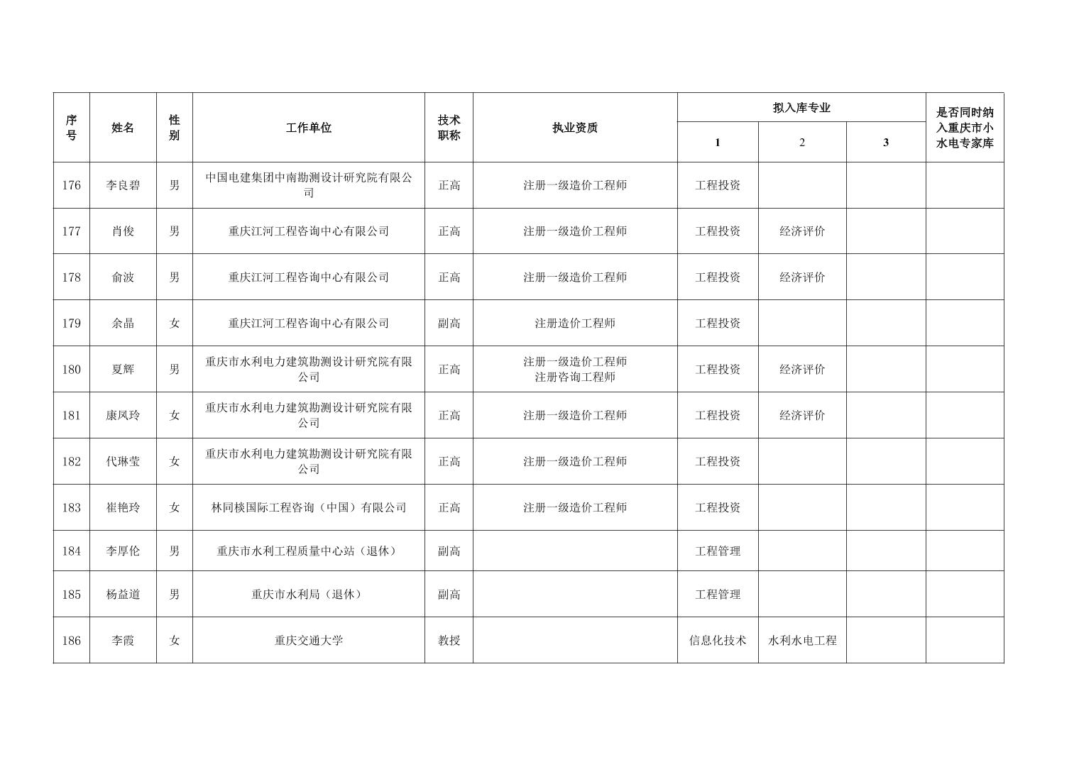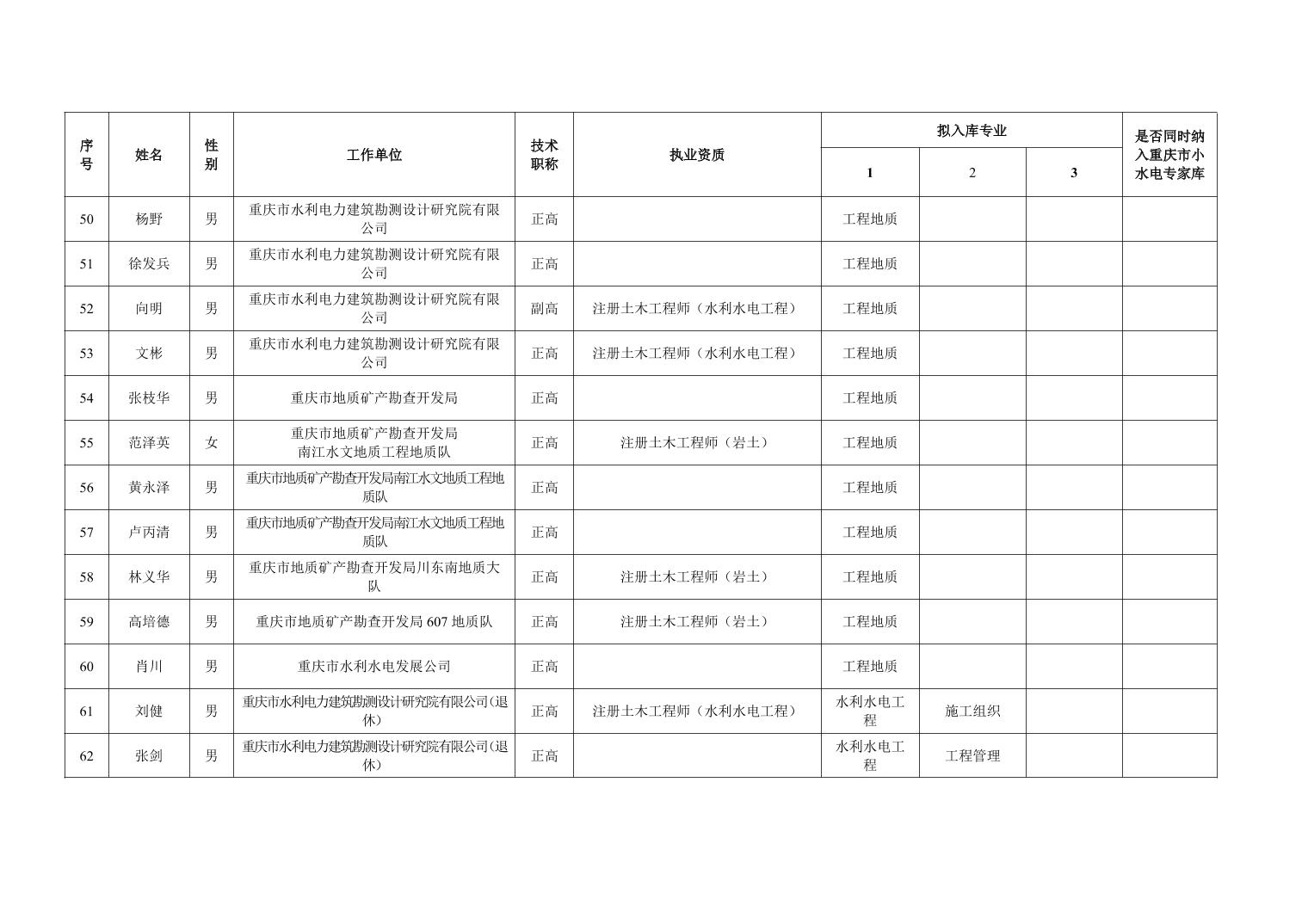 重庆市水利局办公室关于重庆市水利建设项目和涉水行政许可事项技术审查等两个专家库拟入库人员名单的公示