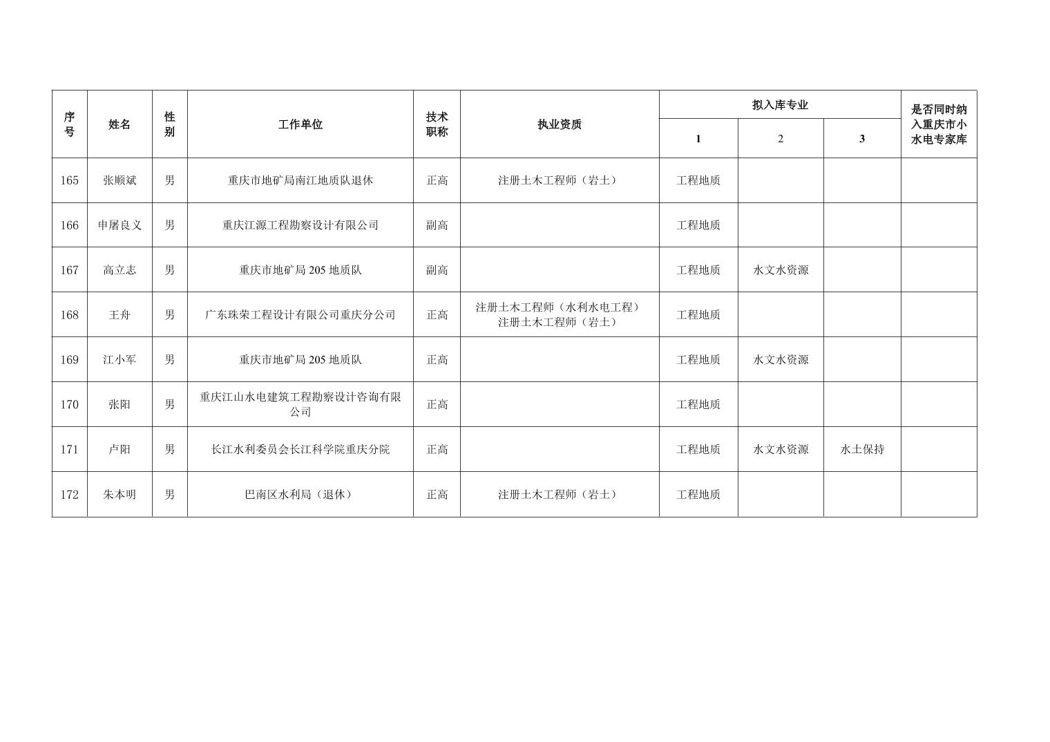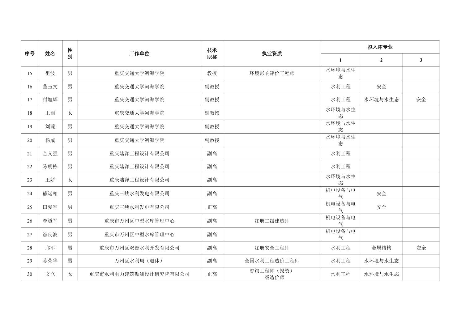 全文下载:重庆市水利局办公室关于重庆市水利建设项目和涉水行政许可事项技术审查等两个专家库拟入库人员名单的公示.doc
