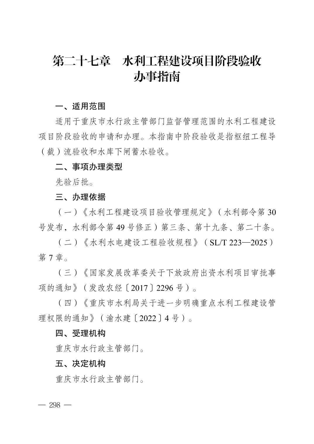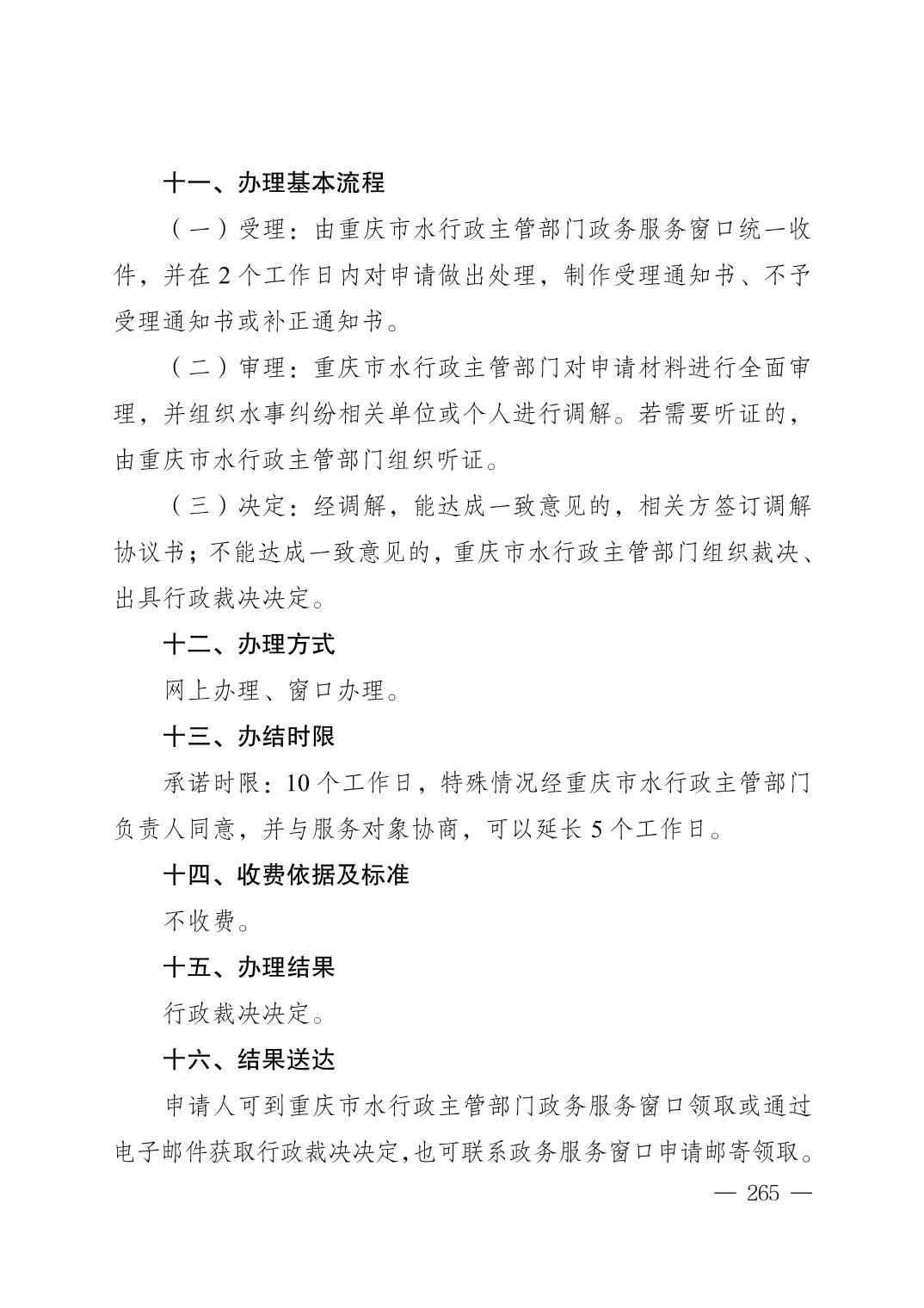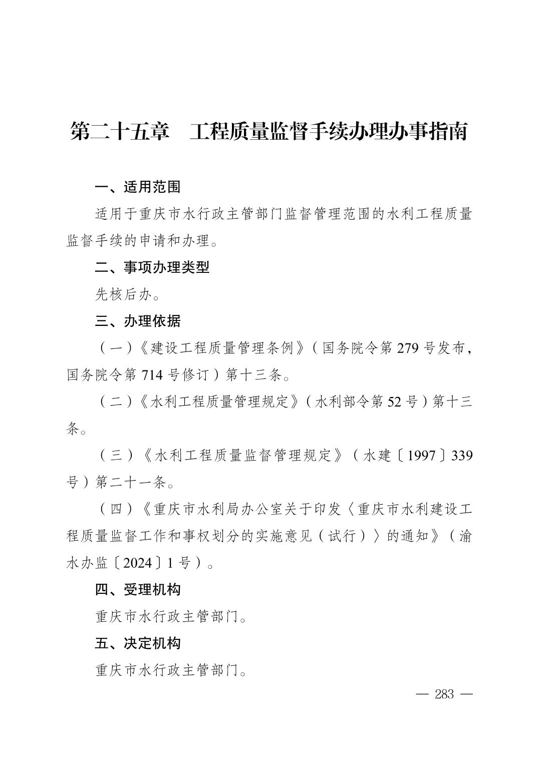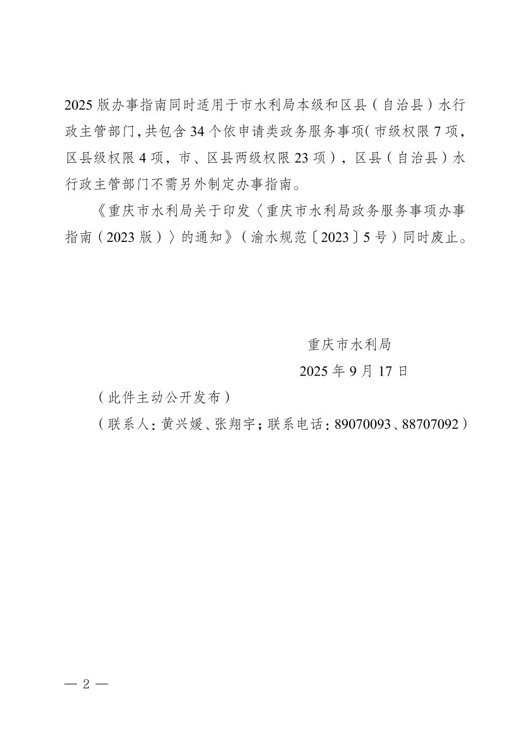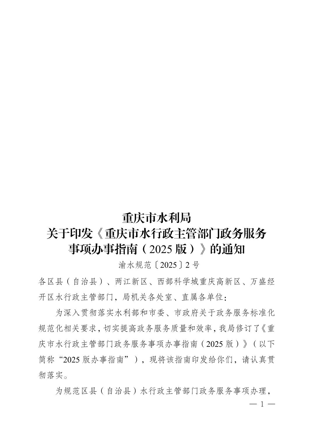 重庆市水行政主管部门政务服务事项办事指南(2025版)情况简介