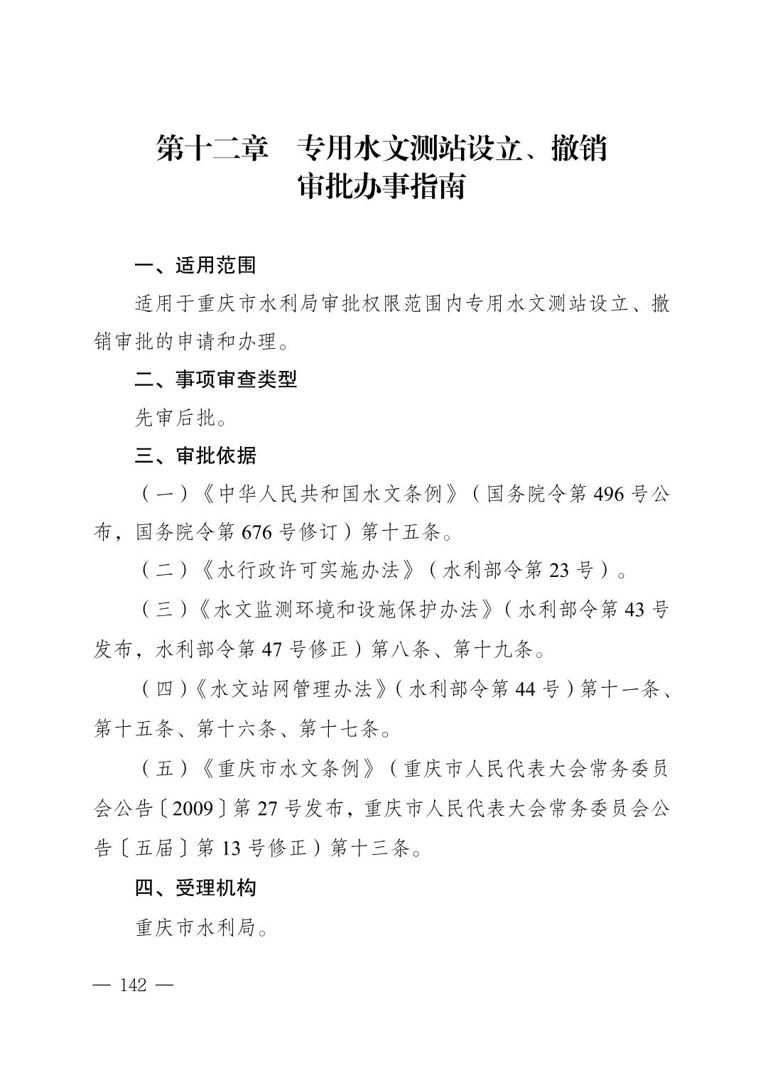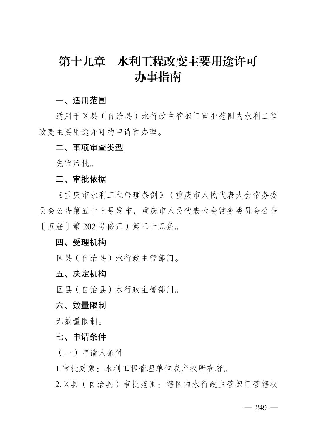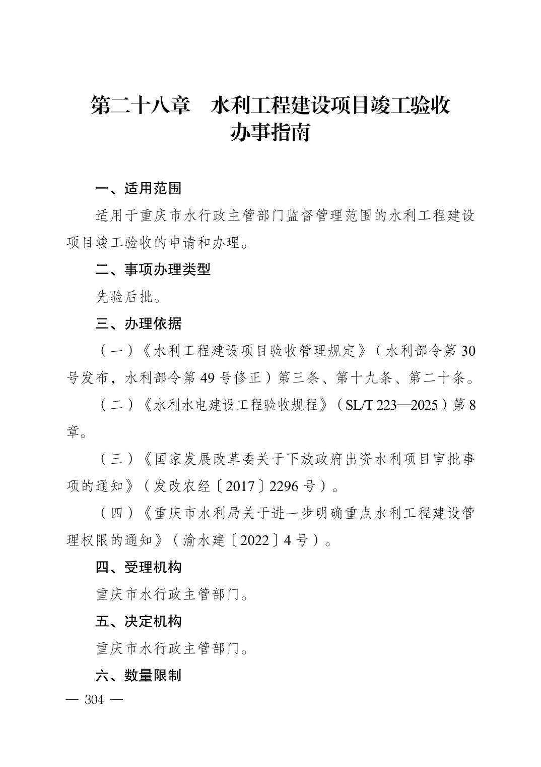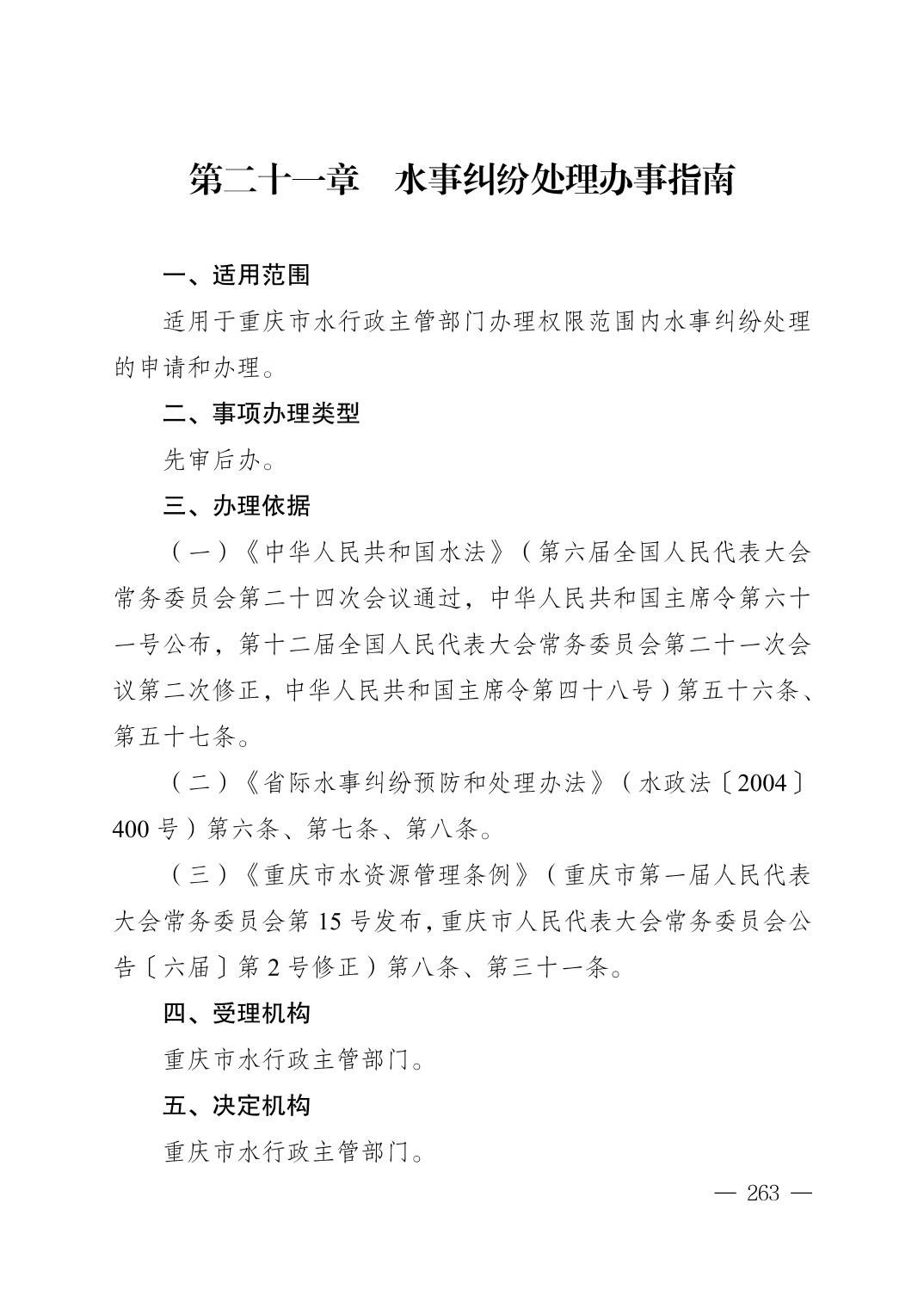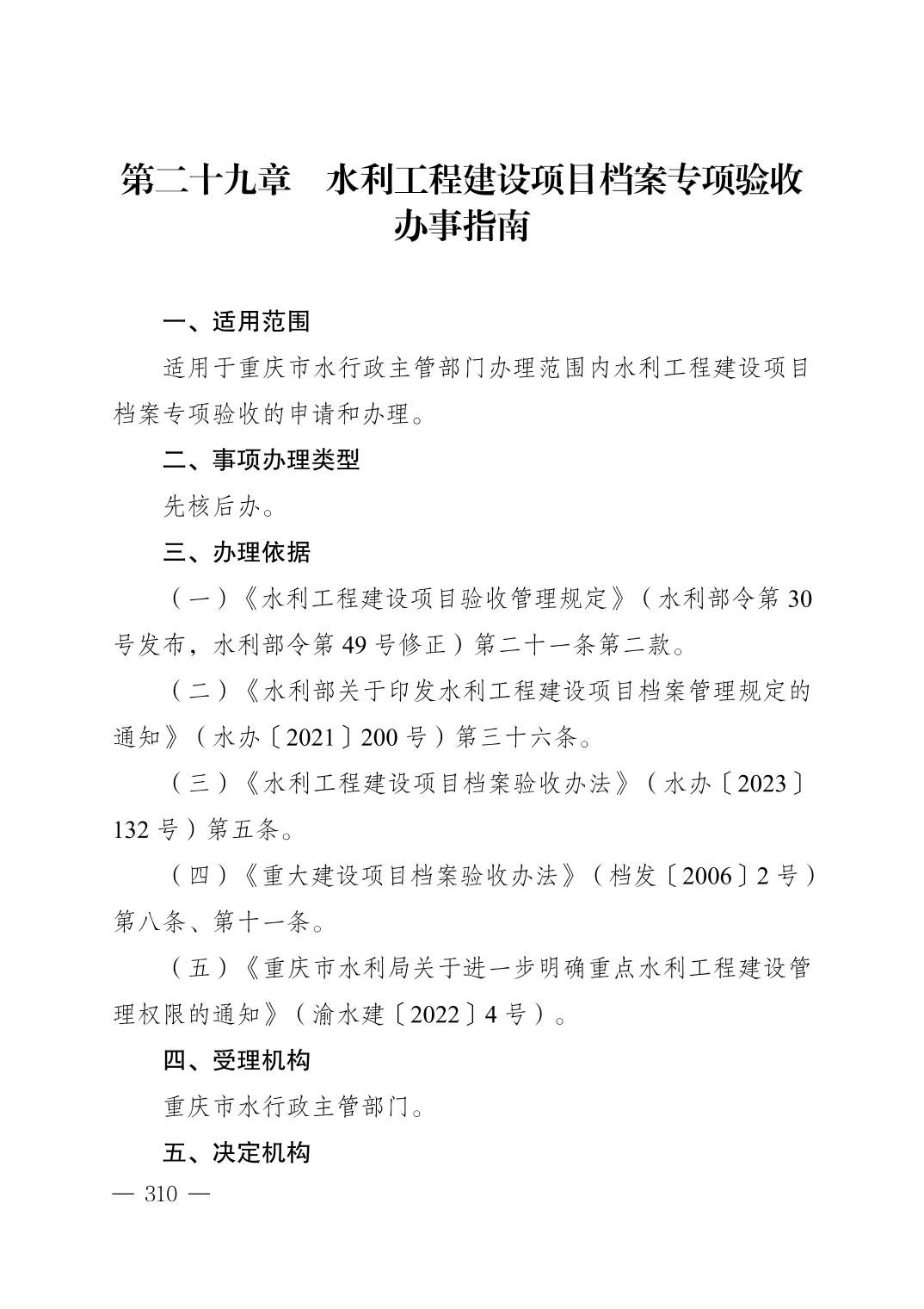 重庆市水行政主管部门政务服务事项办事指南(2025版)情况简介