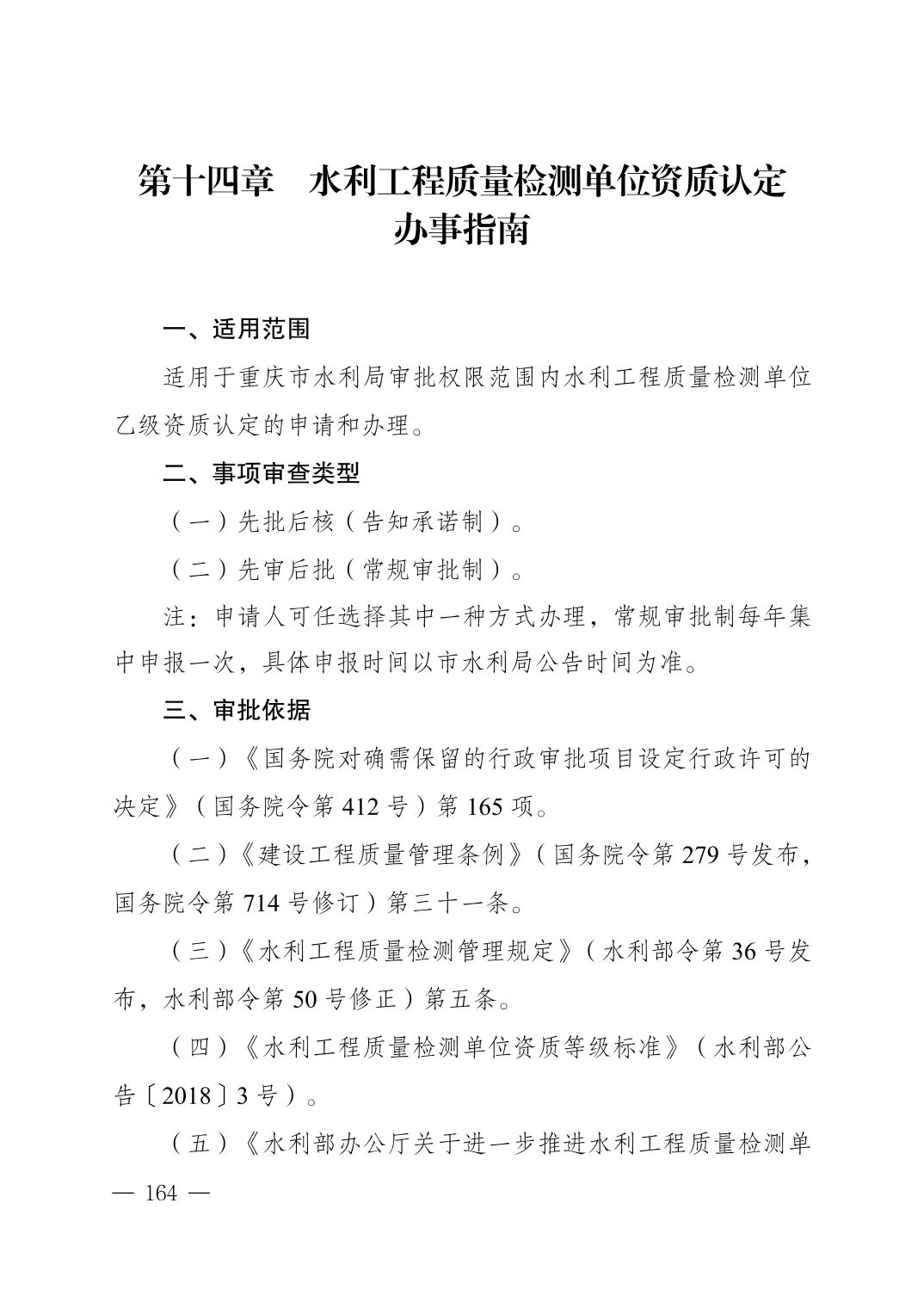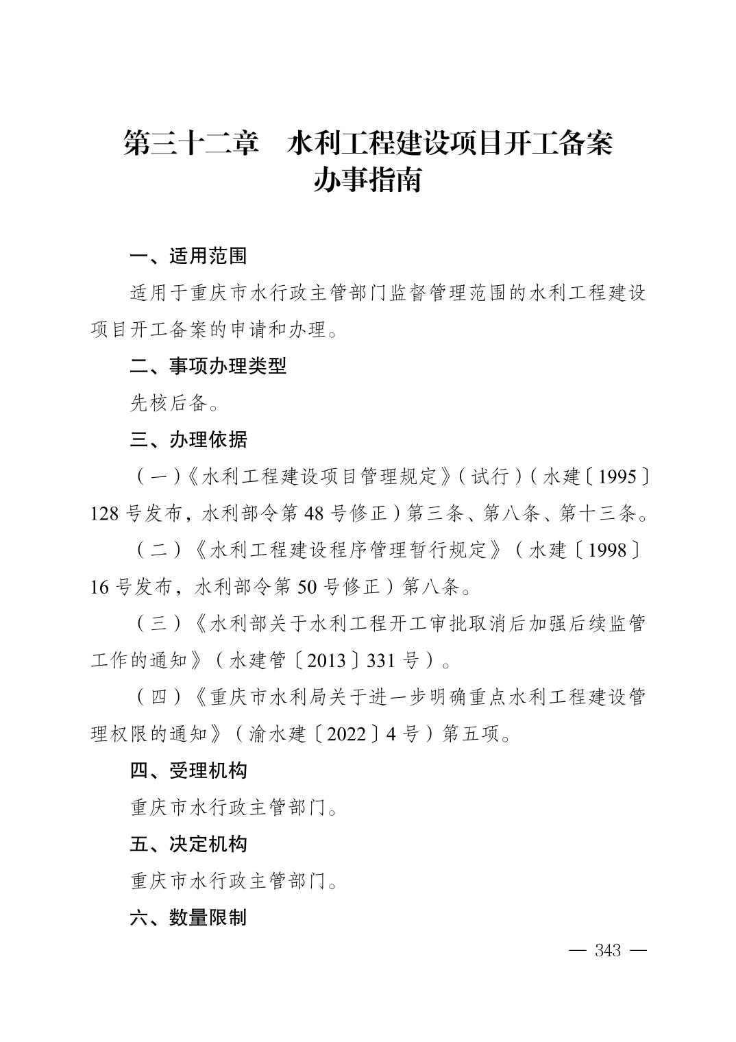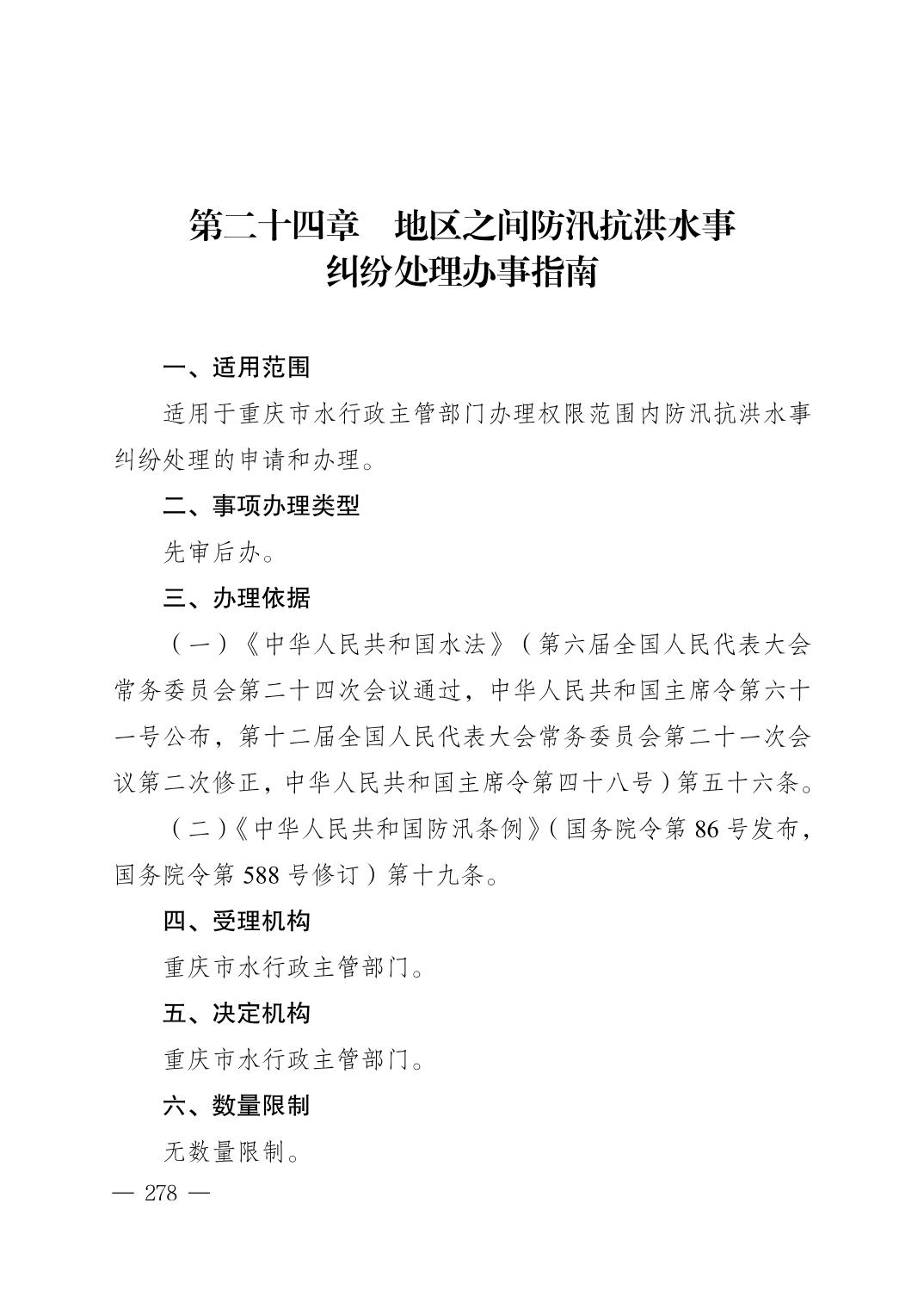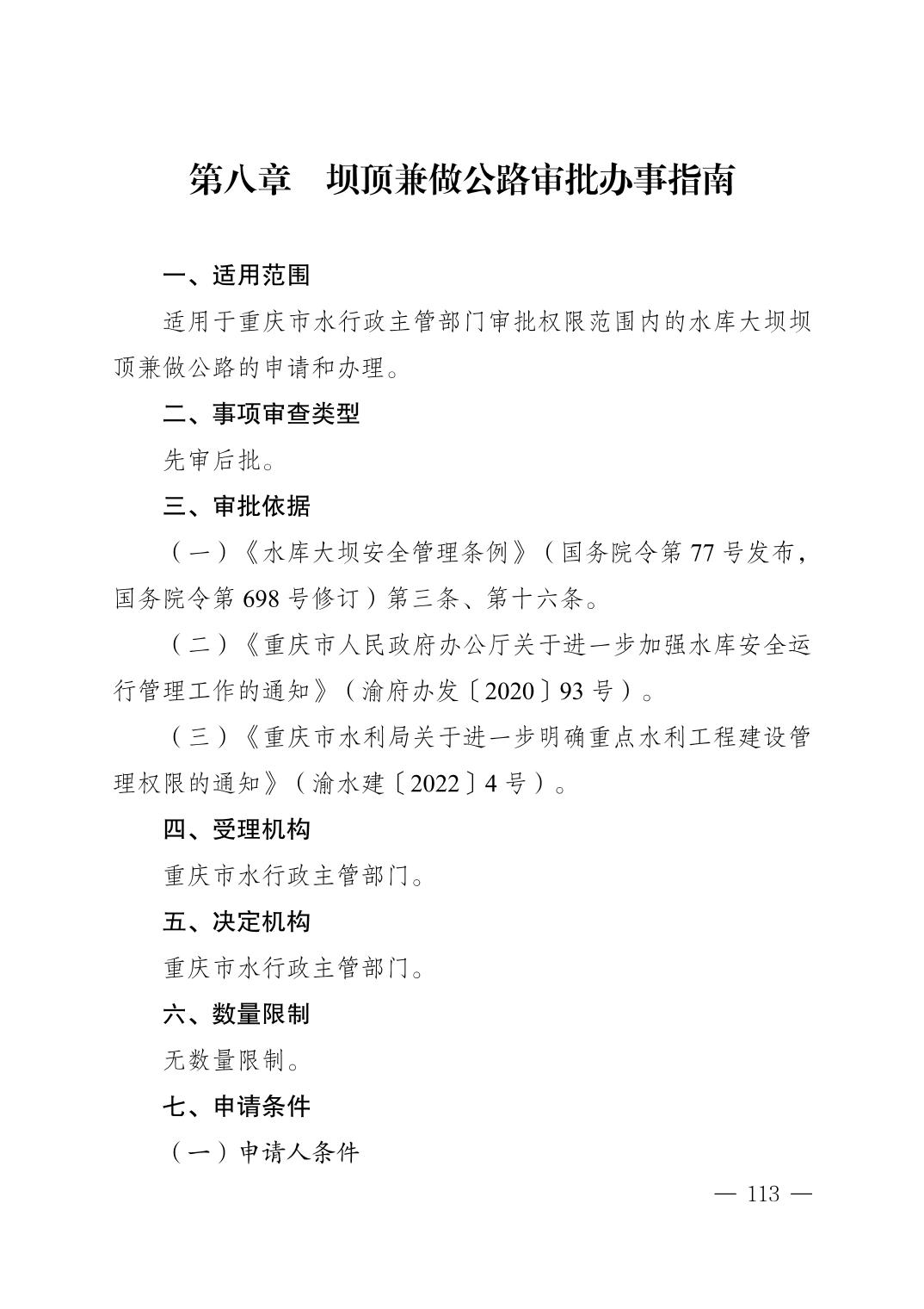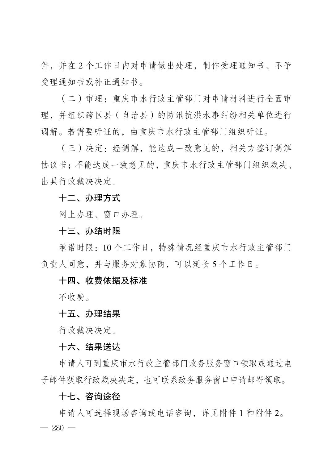 重庆市水行政主管部门政务服务事项办事指南(2025版)情况简介