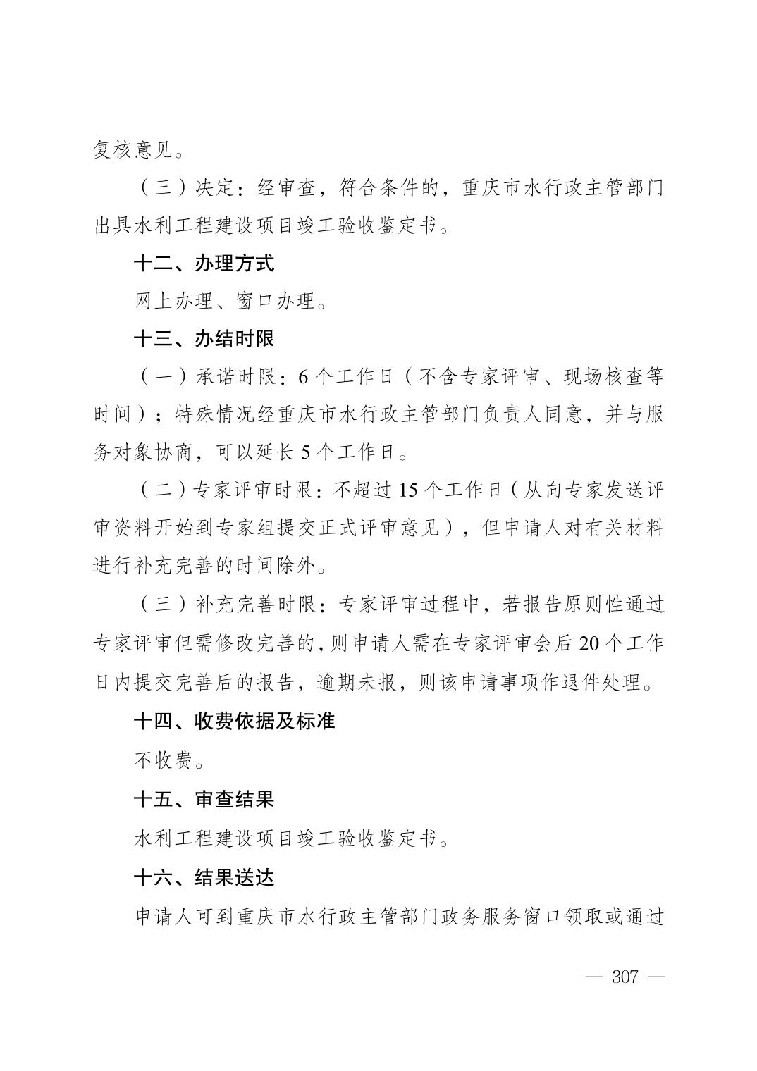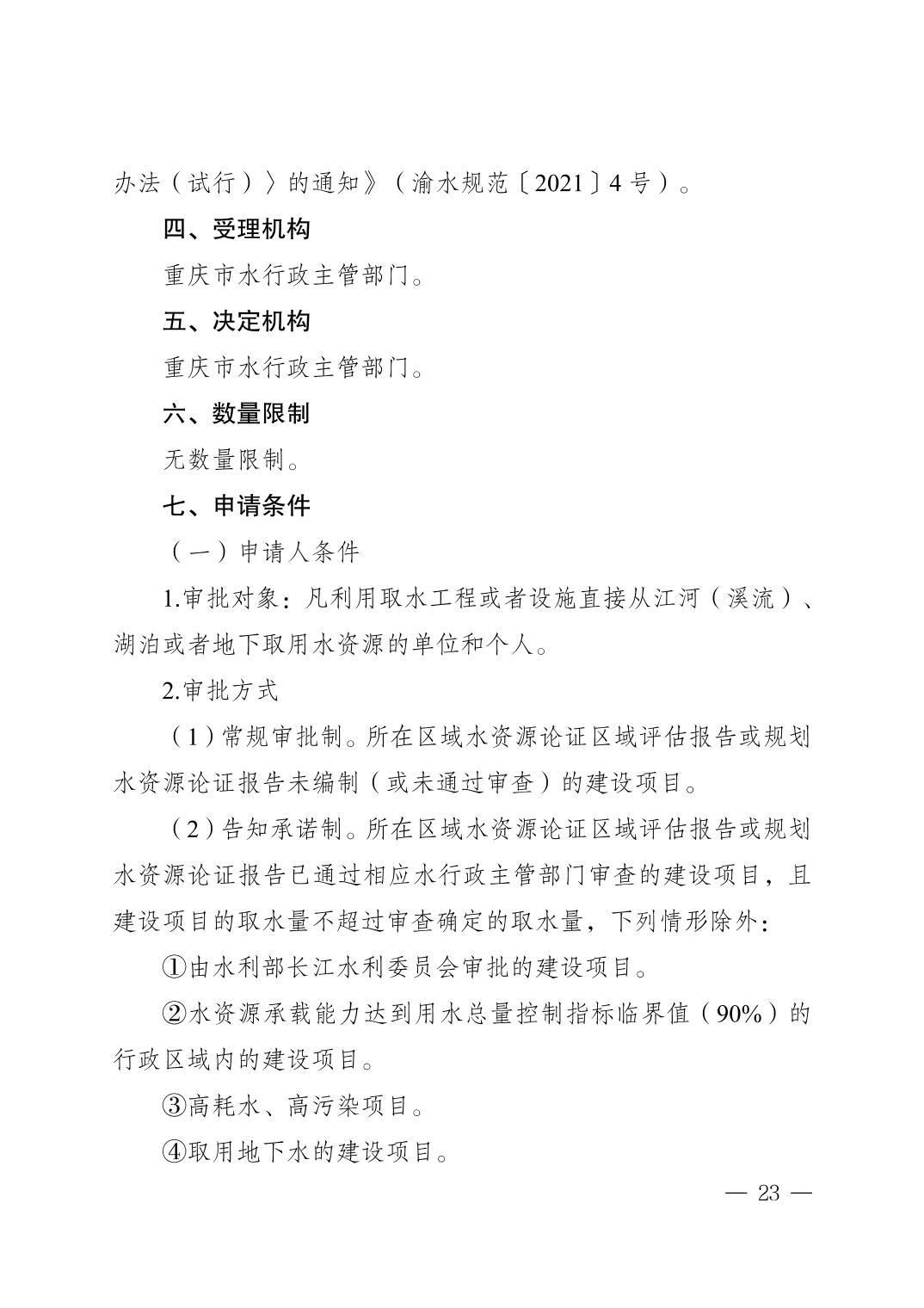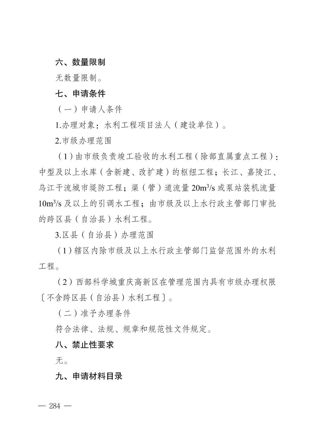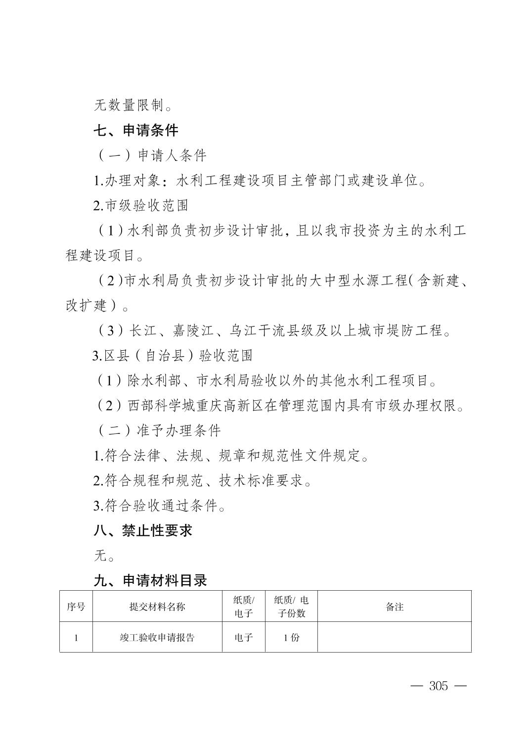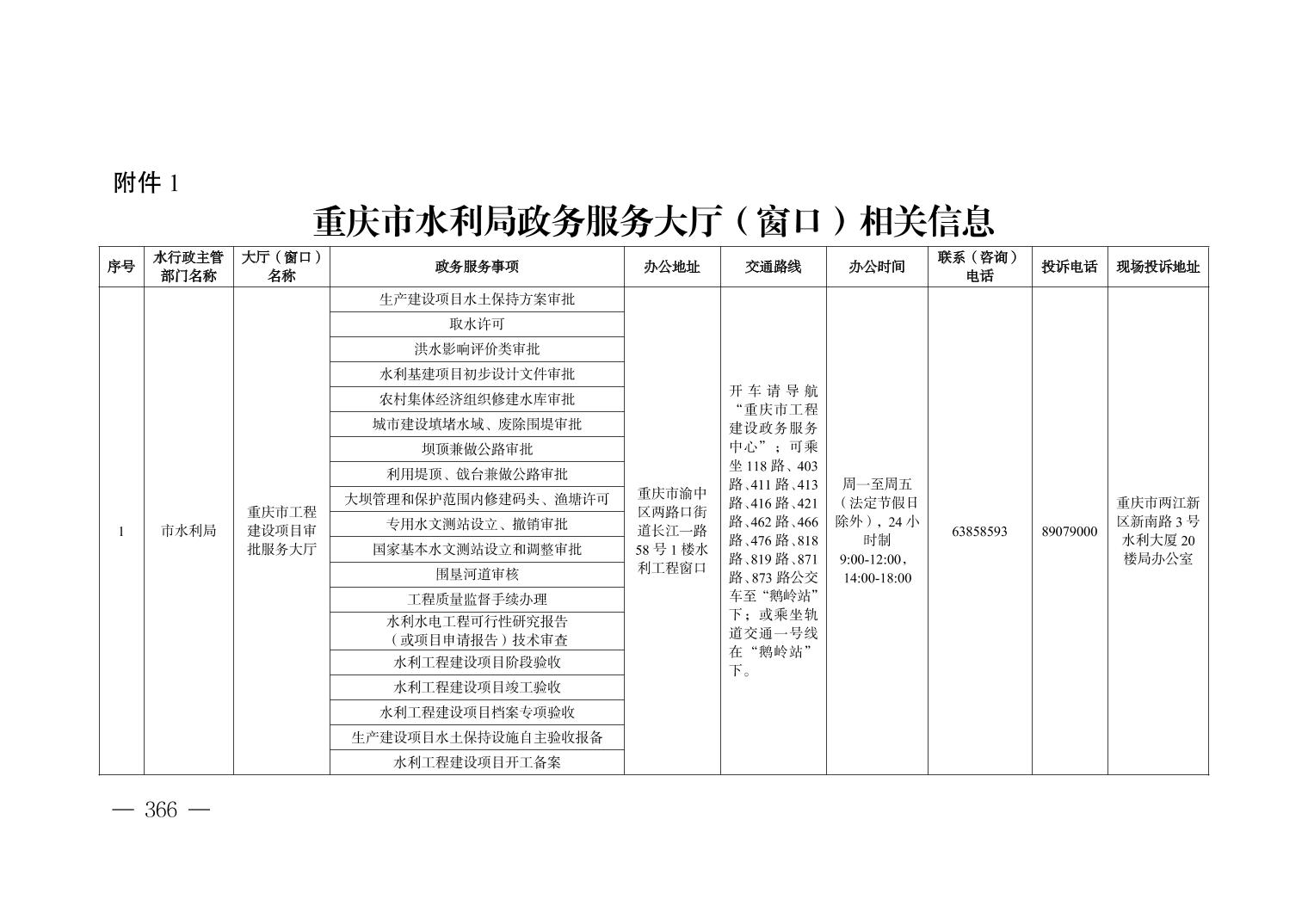 重庆市水行政主管部门政务服务事项办事指南(2025版)情况简介