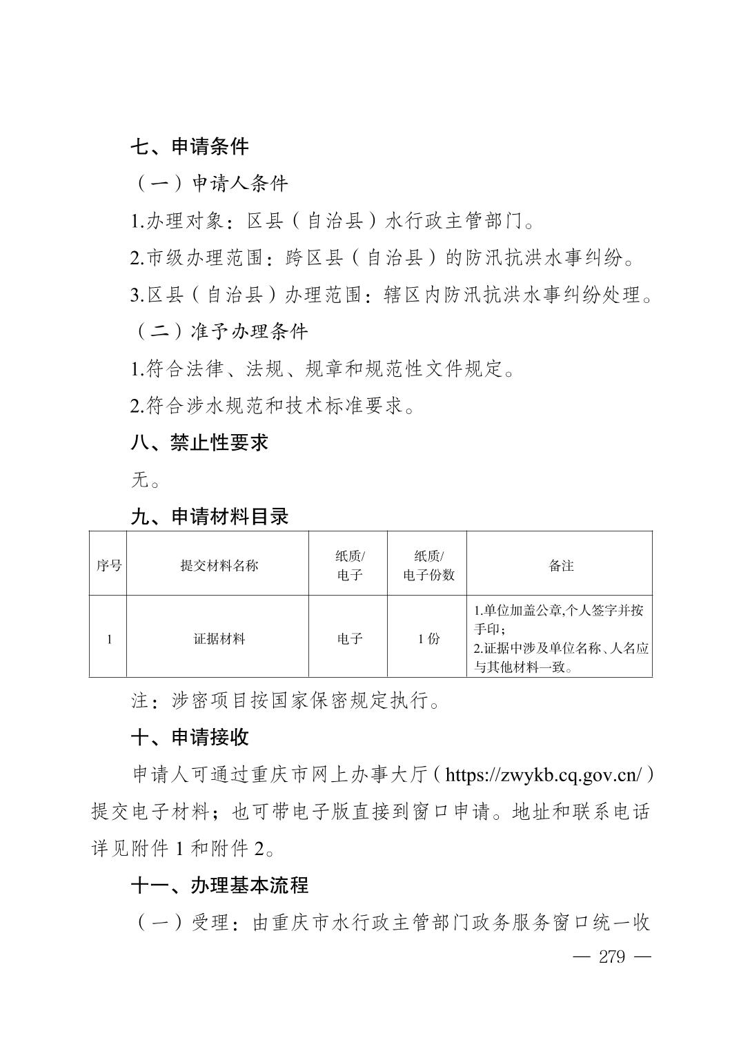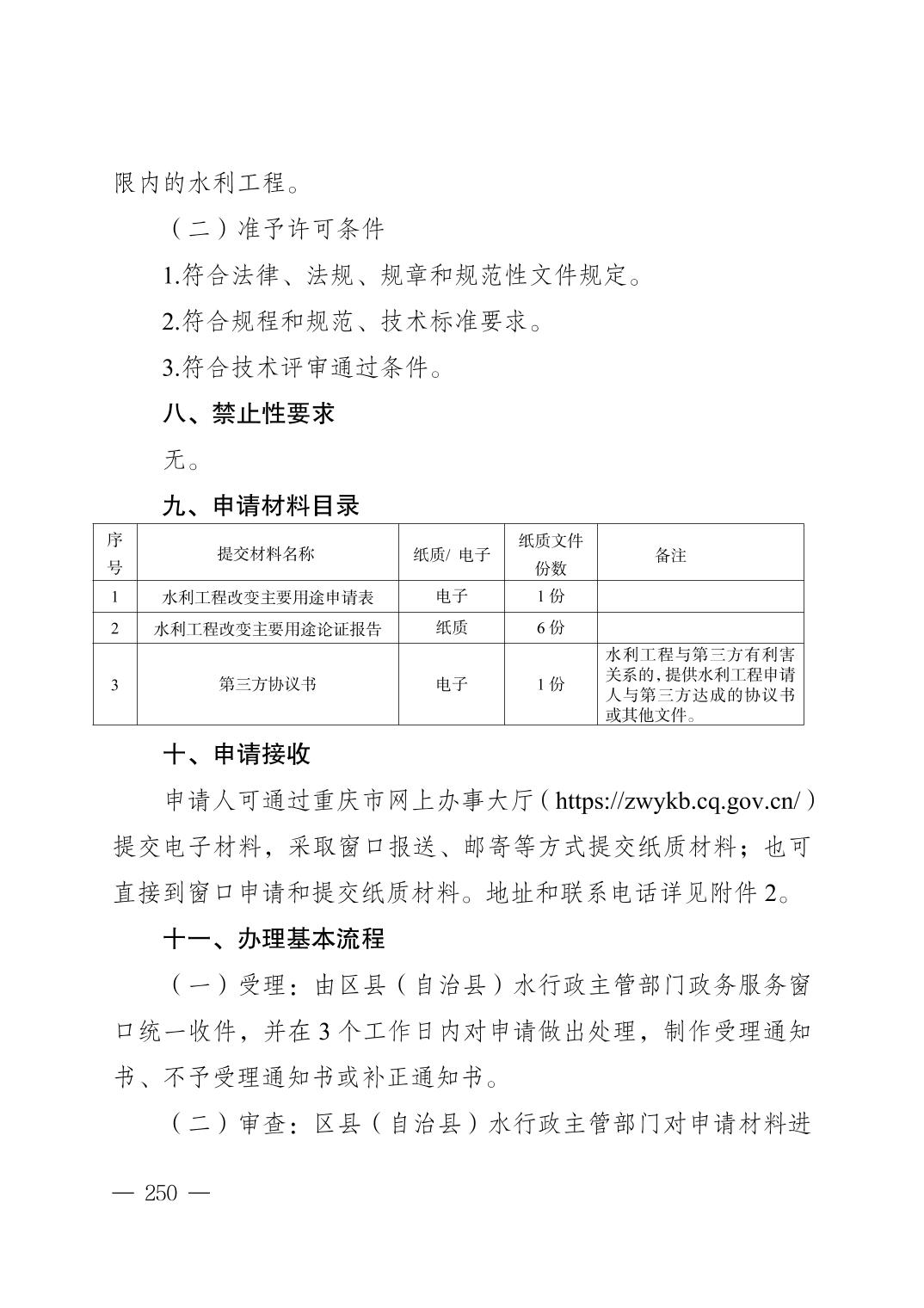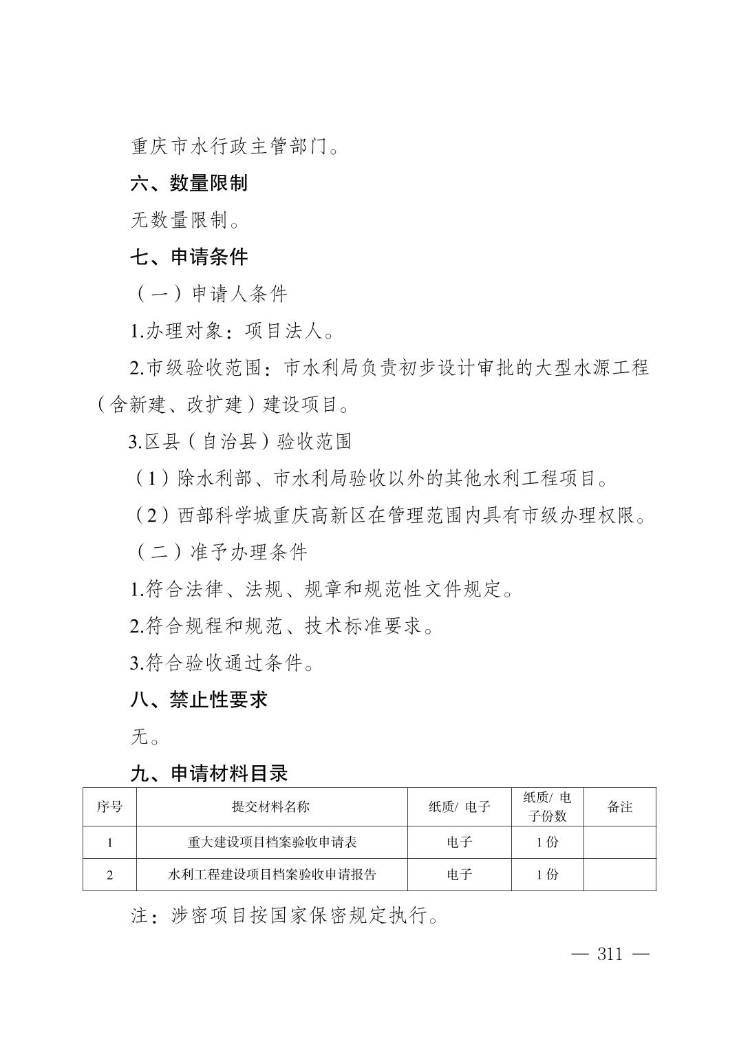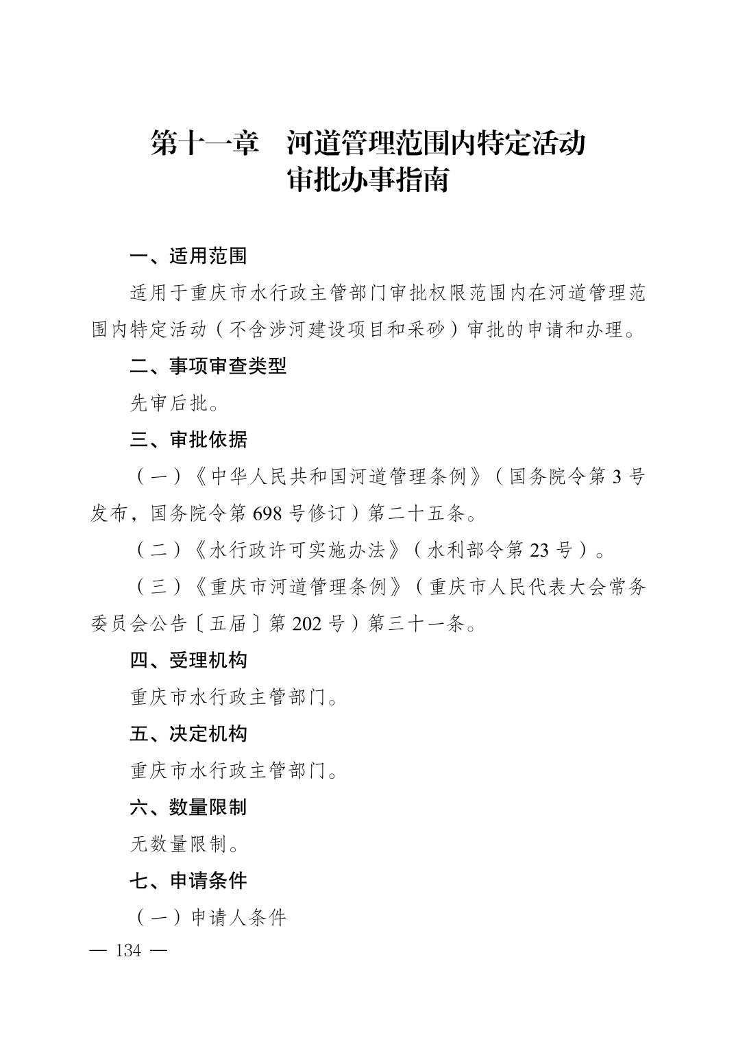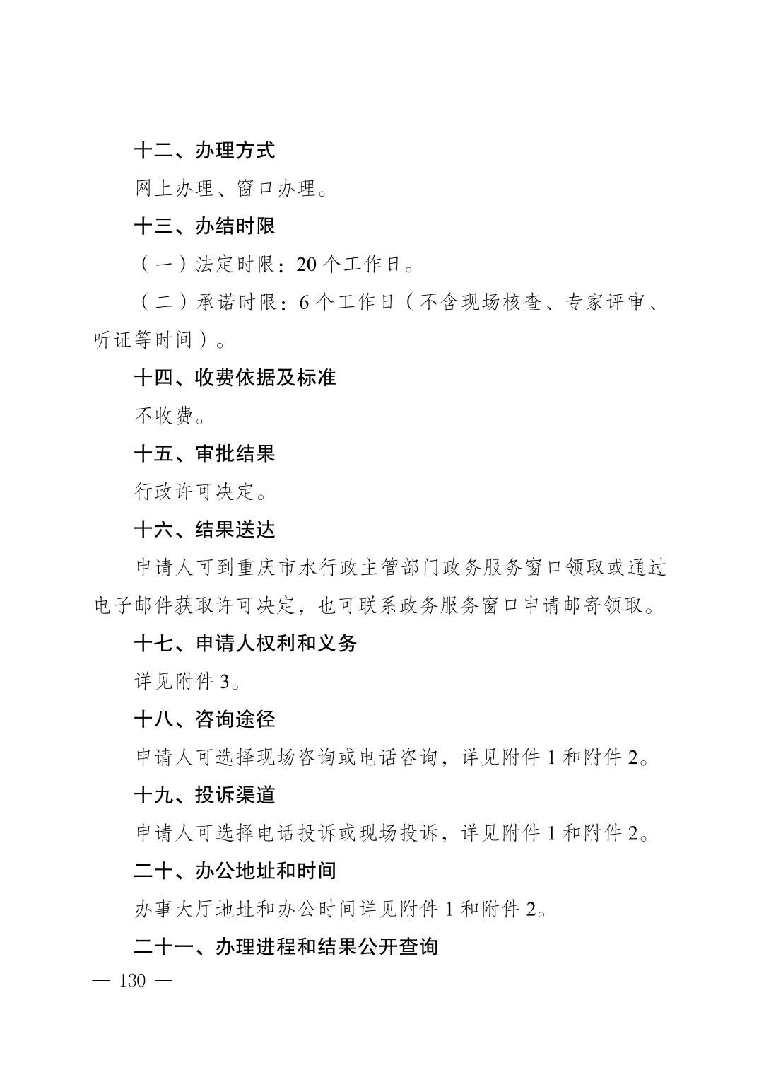 重庆市水行政主管部门政务服务事项办事指南(2025版)情况简介