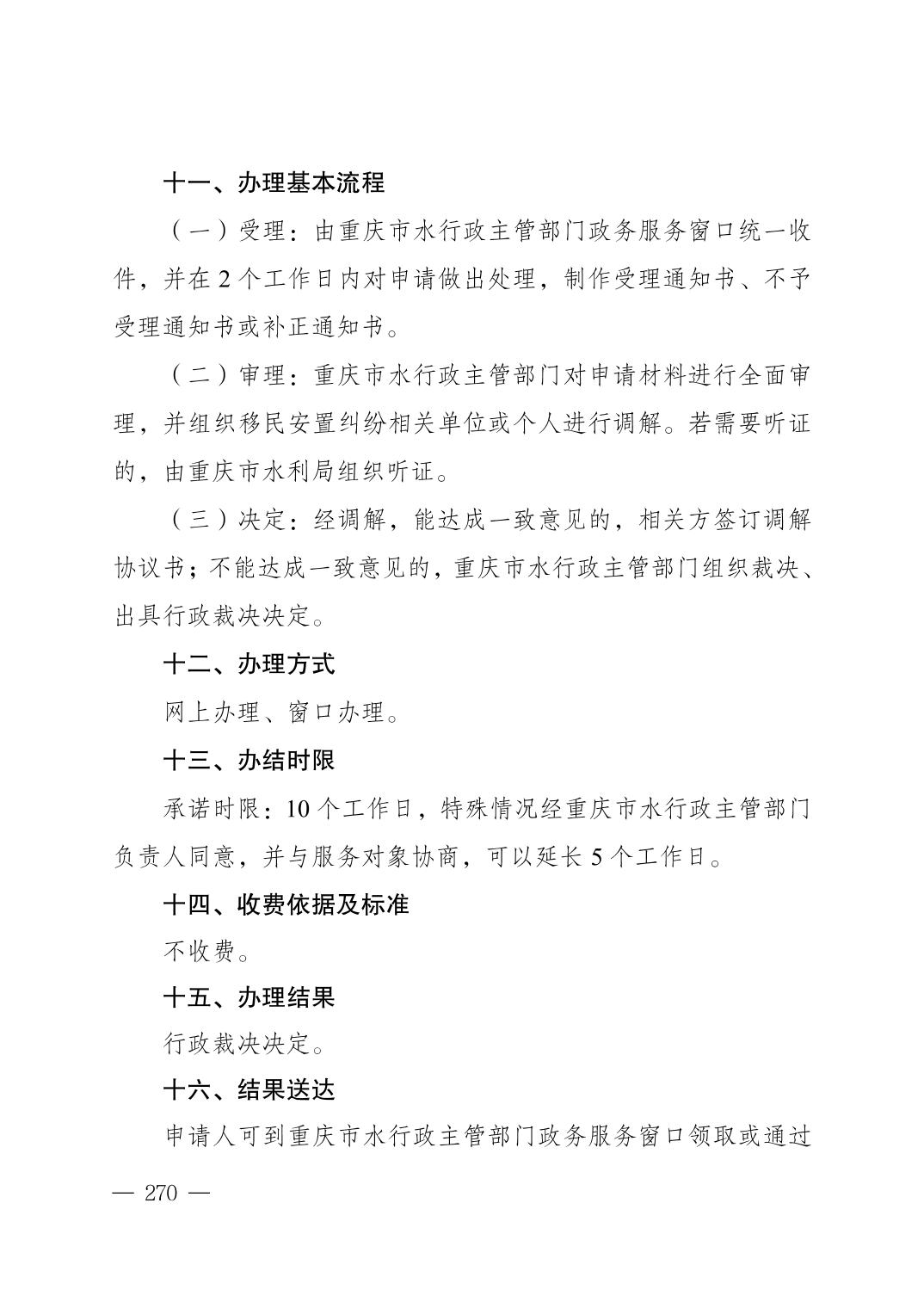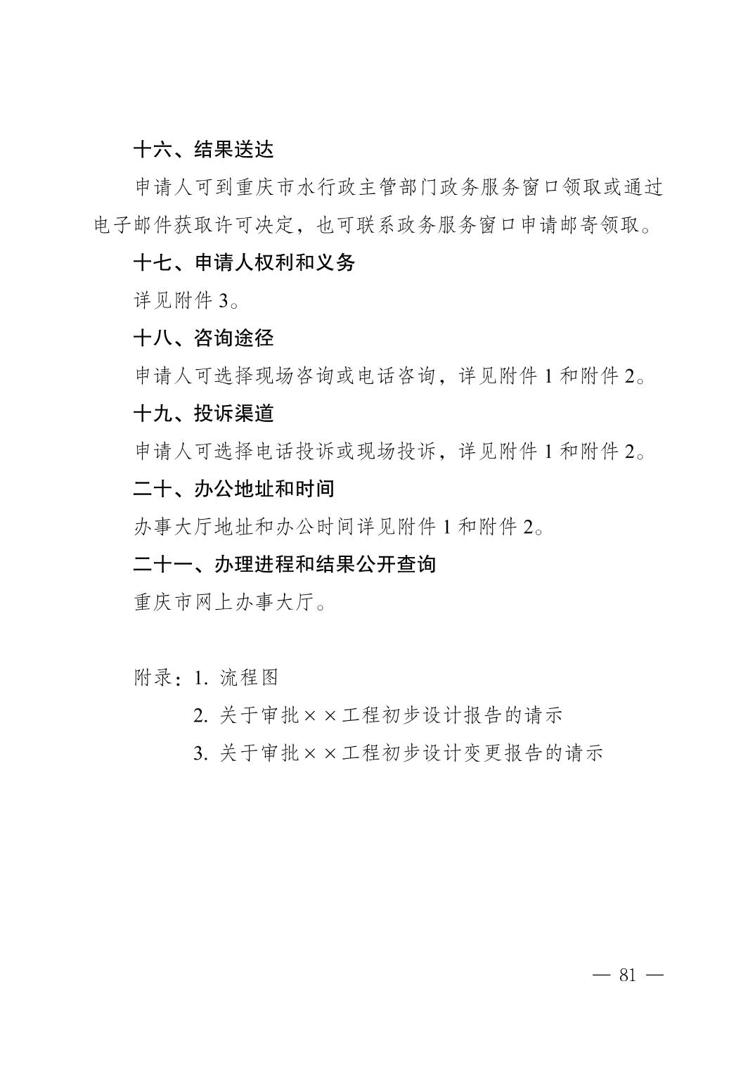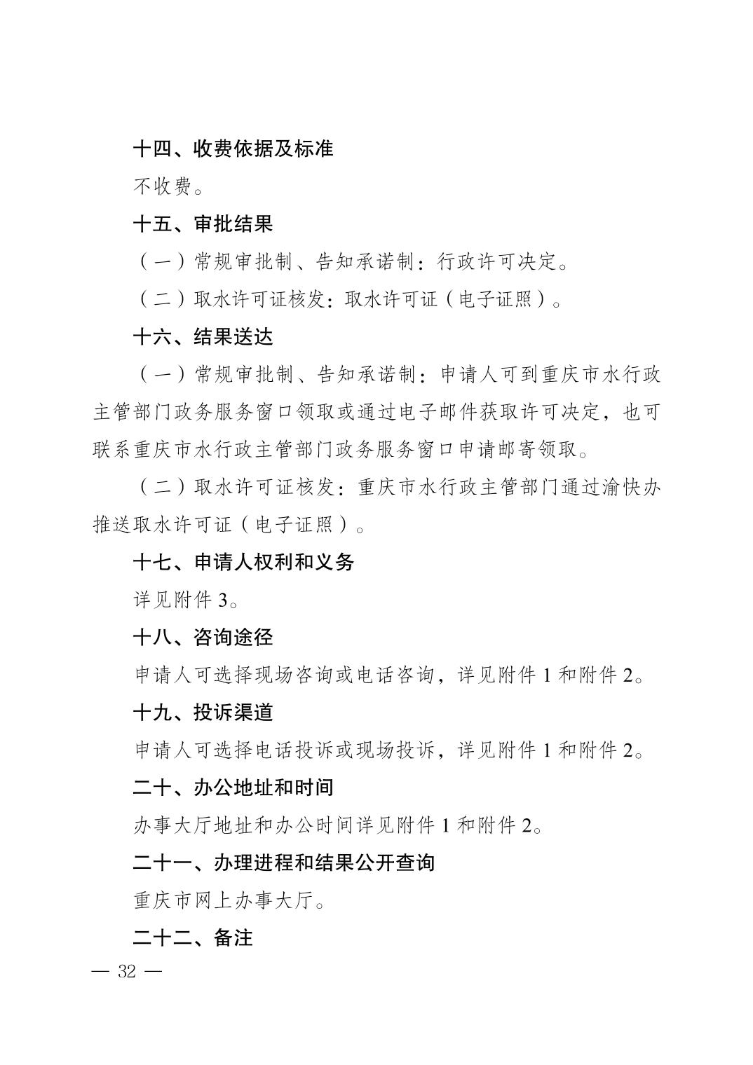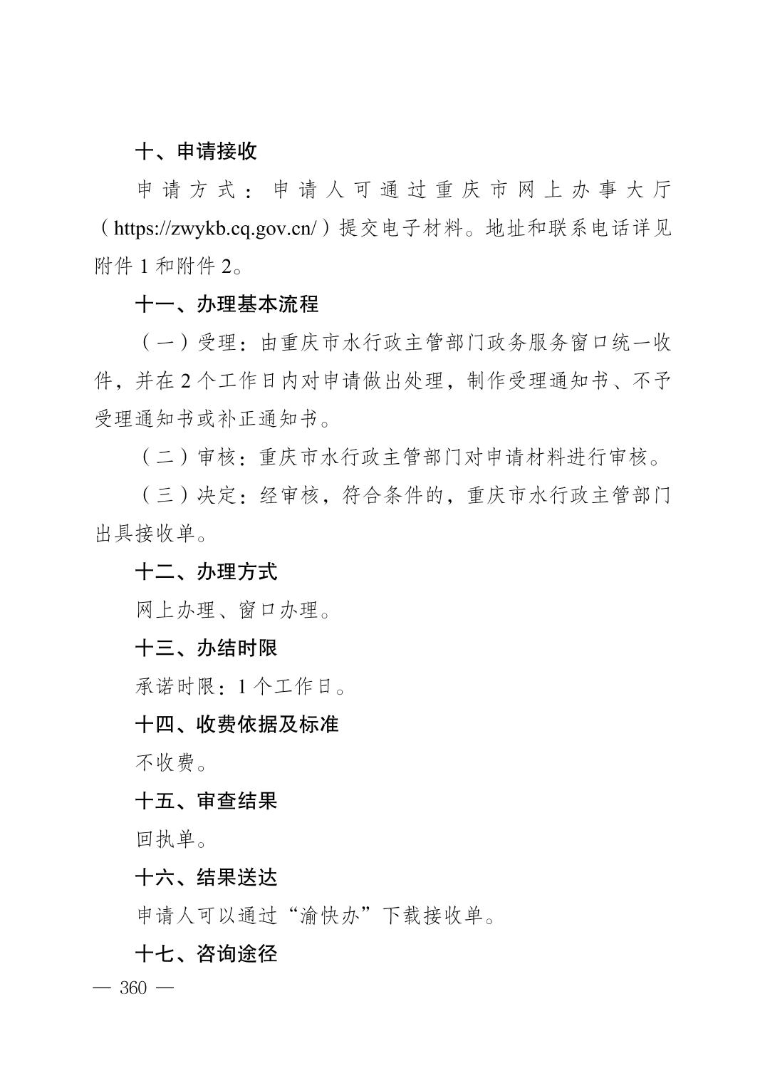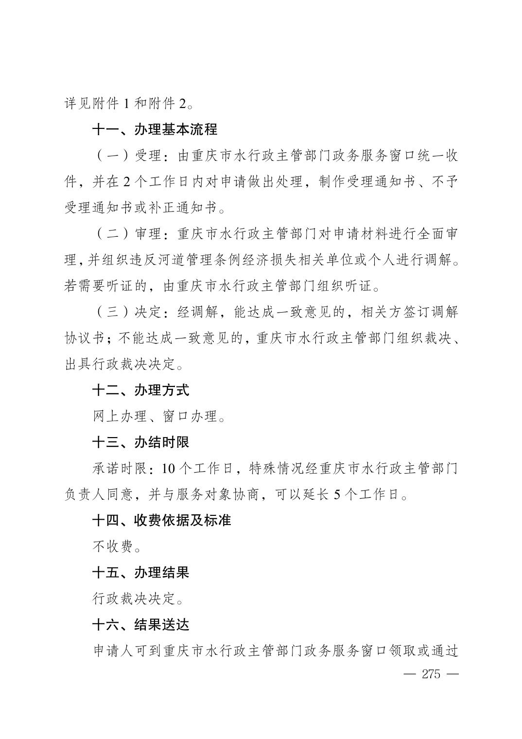 重庆市水行政主管部门政务服务事项办事指南(2025版)情况简介