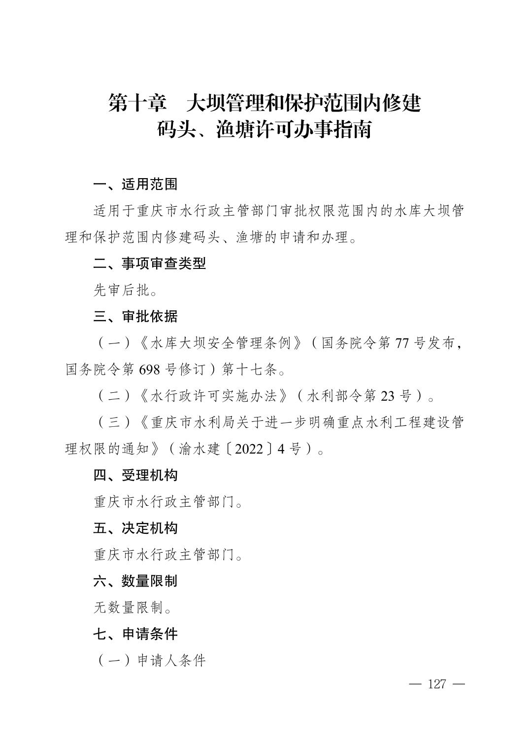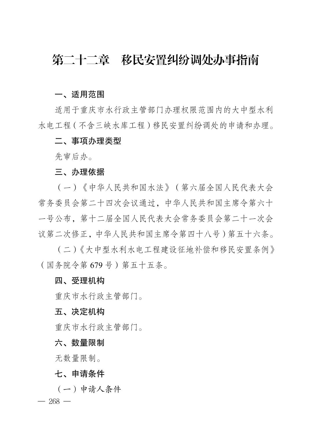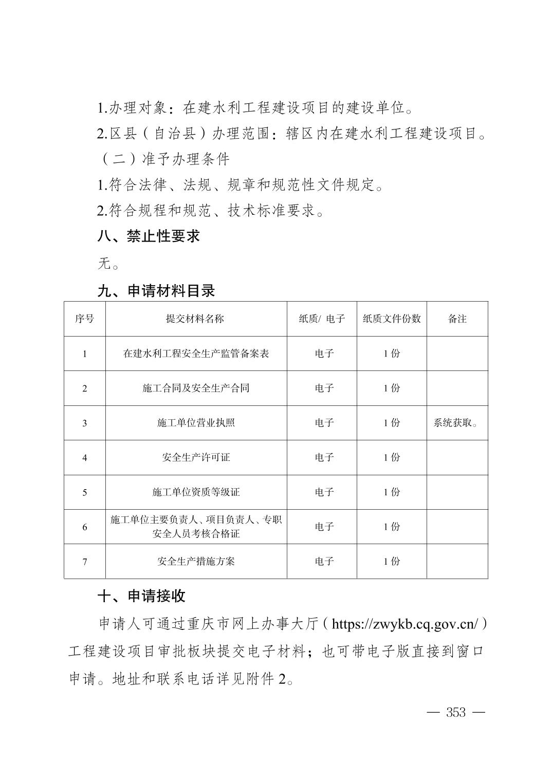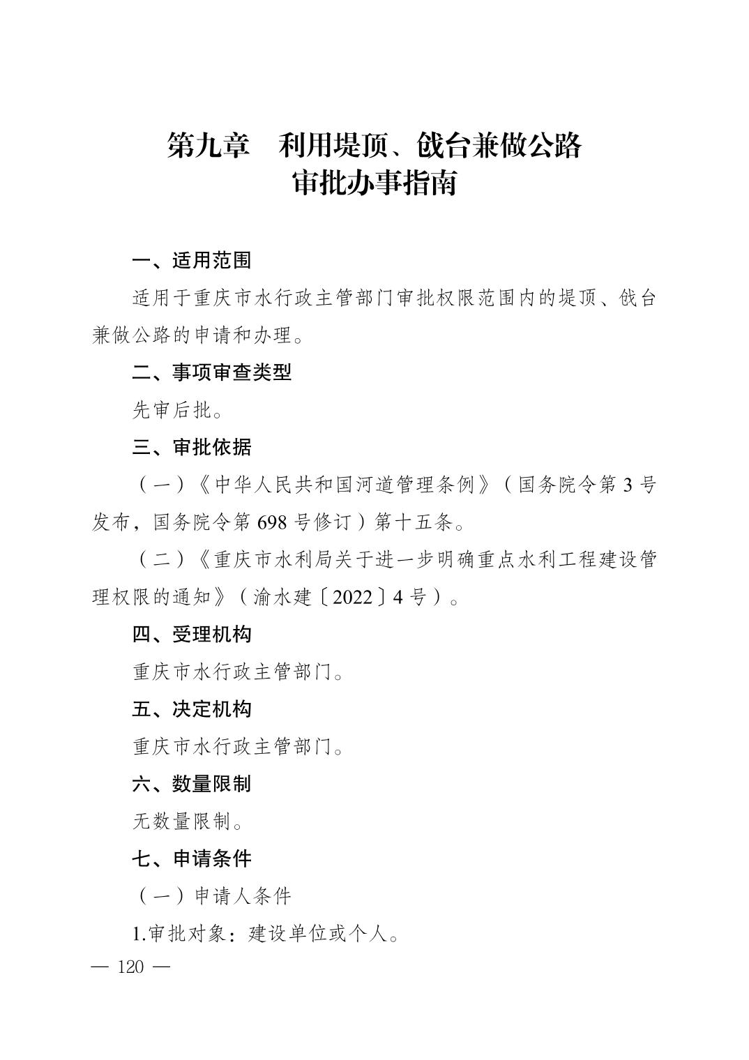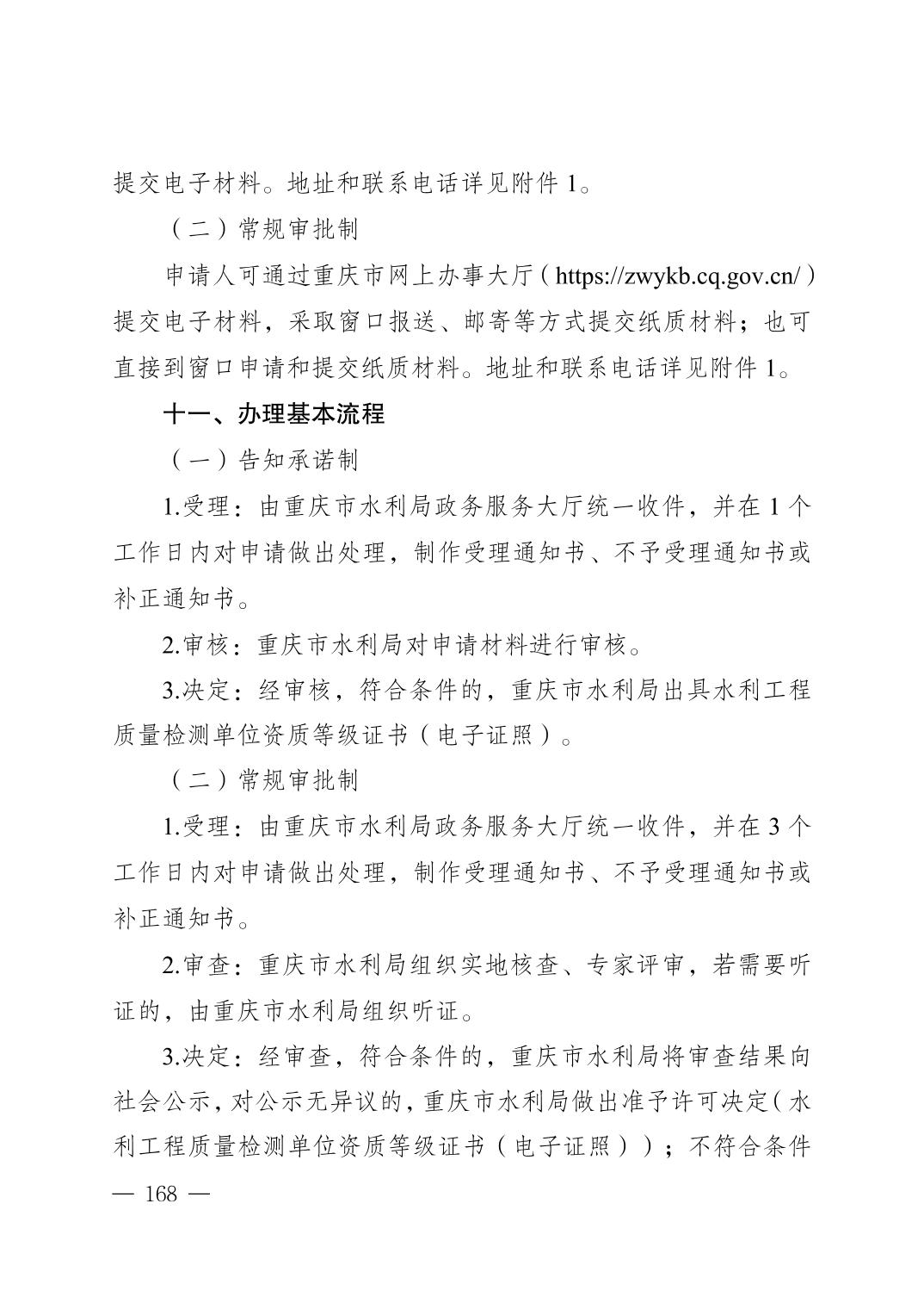 重庆市水行政主管部门政务服务事项办事指南(2025版)情况简介