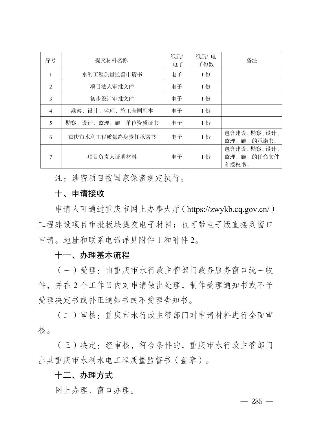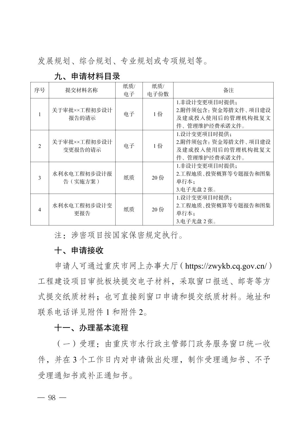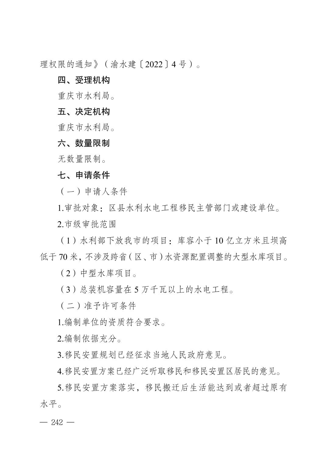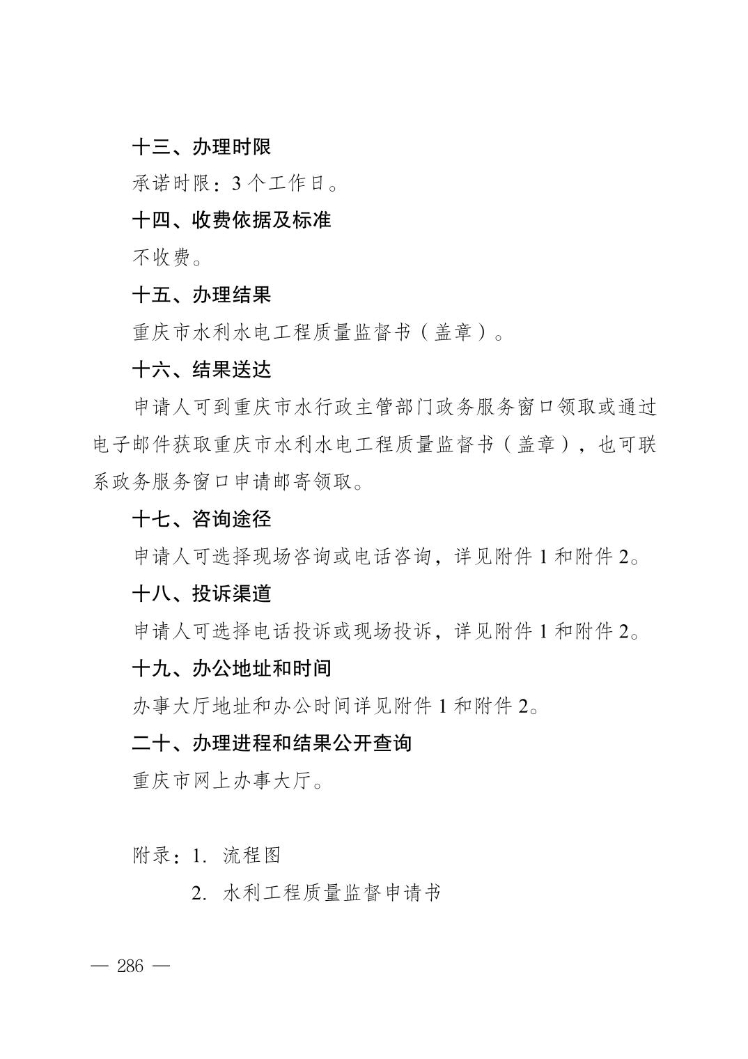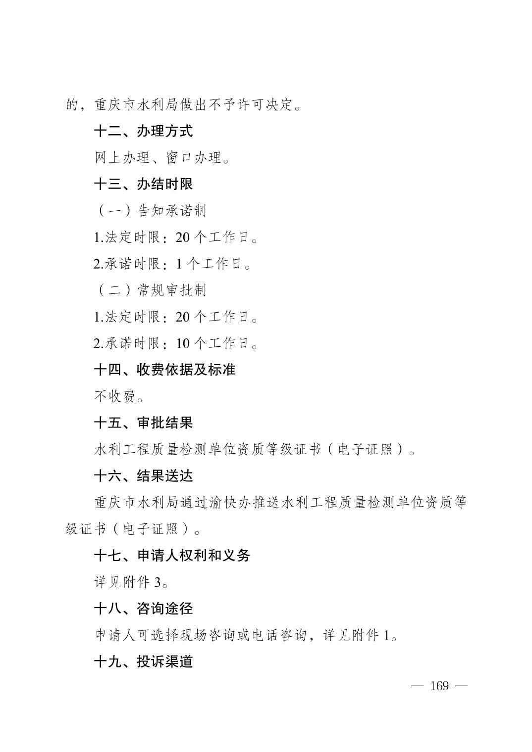 重庆市水行政主管部门政务服务事项办事指南(2025版)情况简介