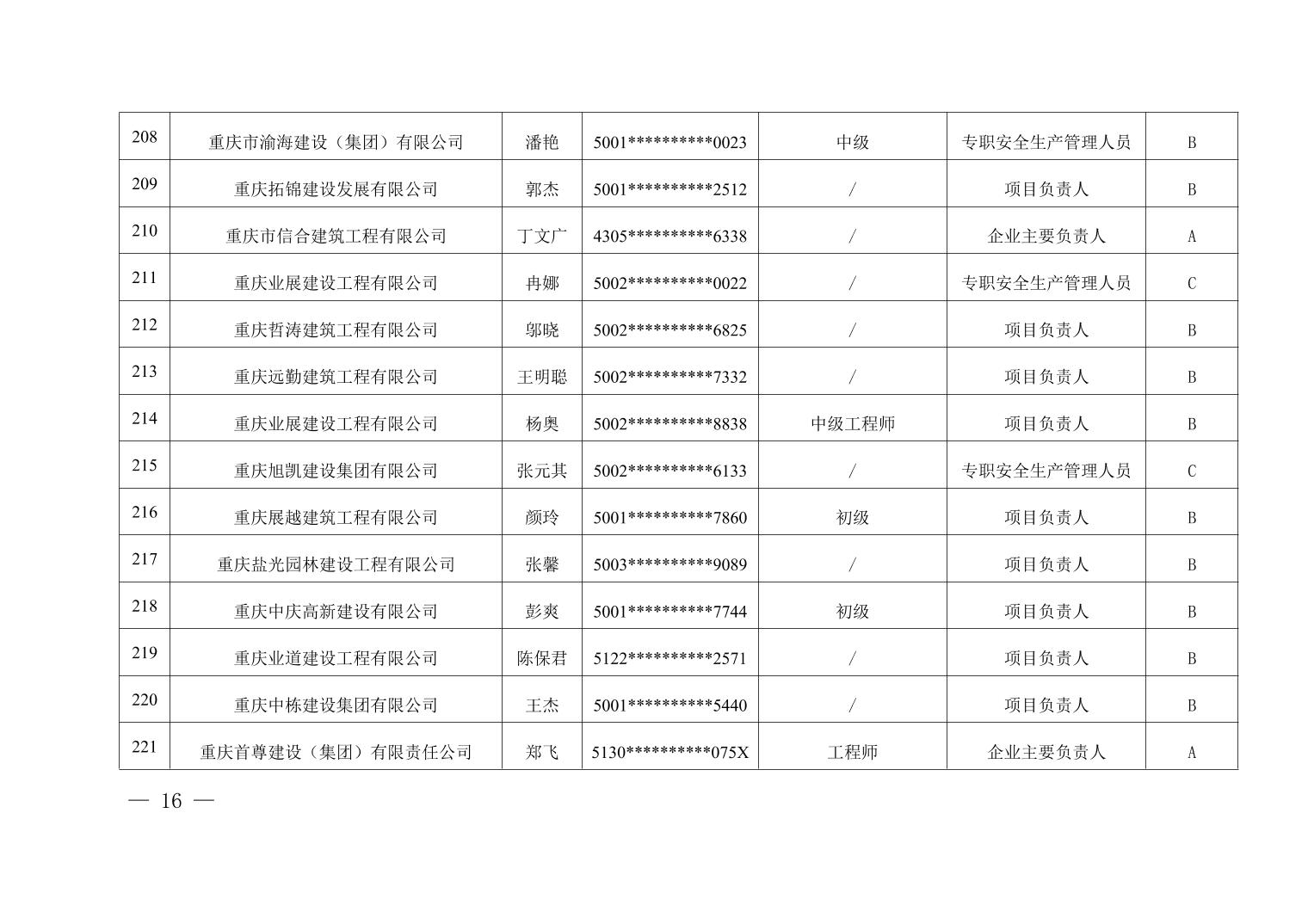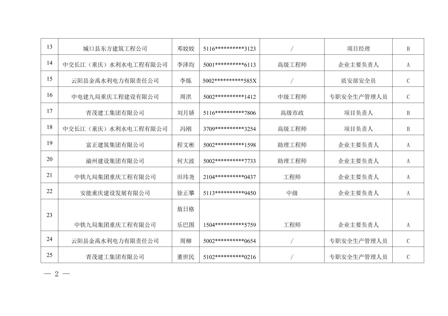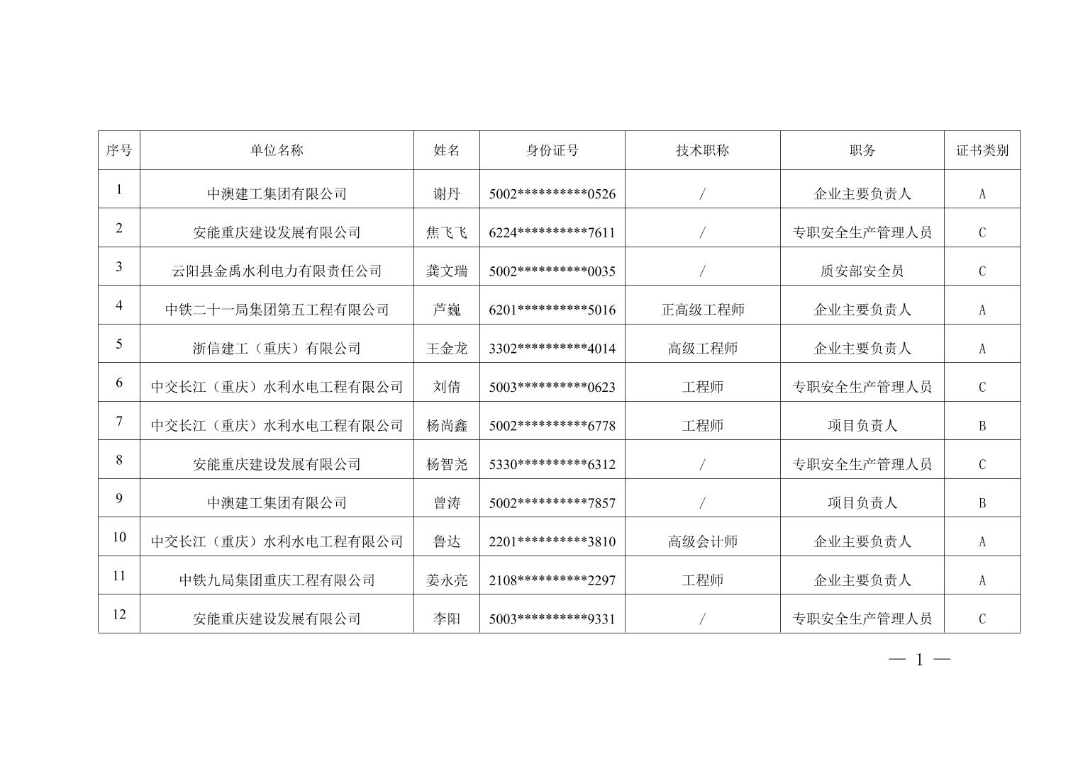 22025年第期重庆市“安管人员”考核合格人员名单(申请延续)