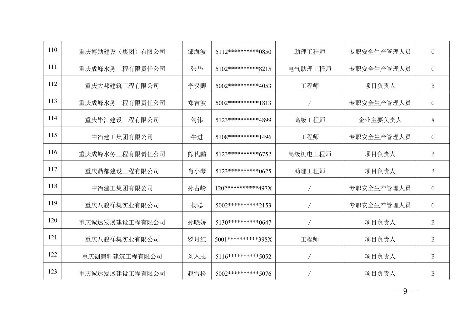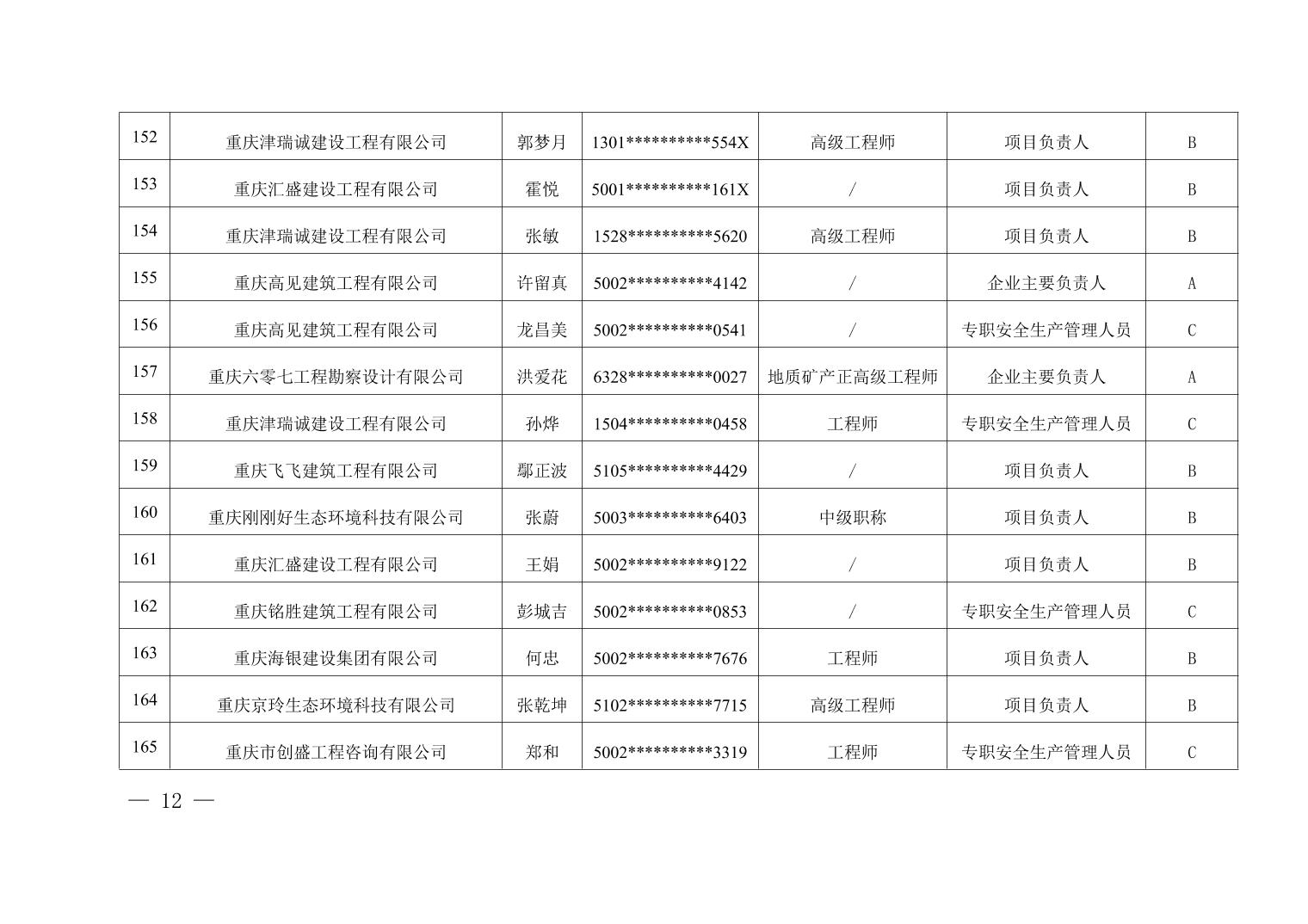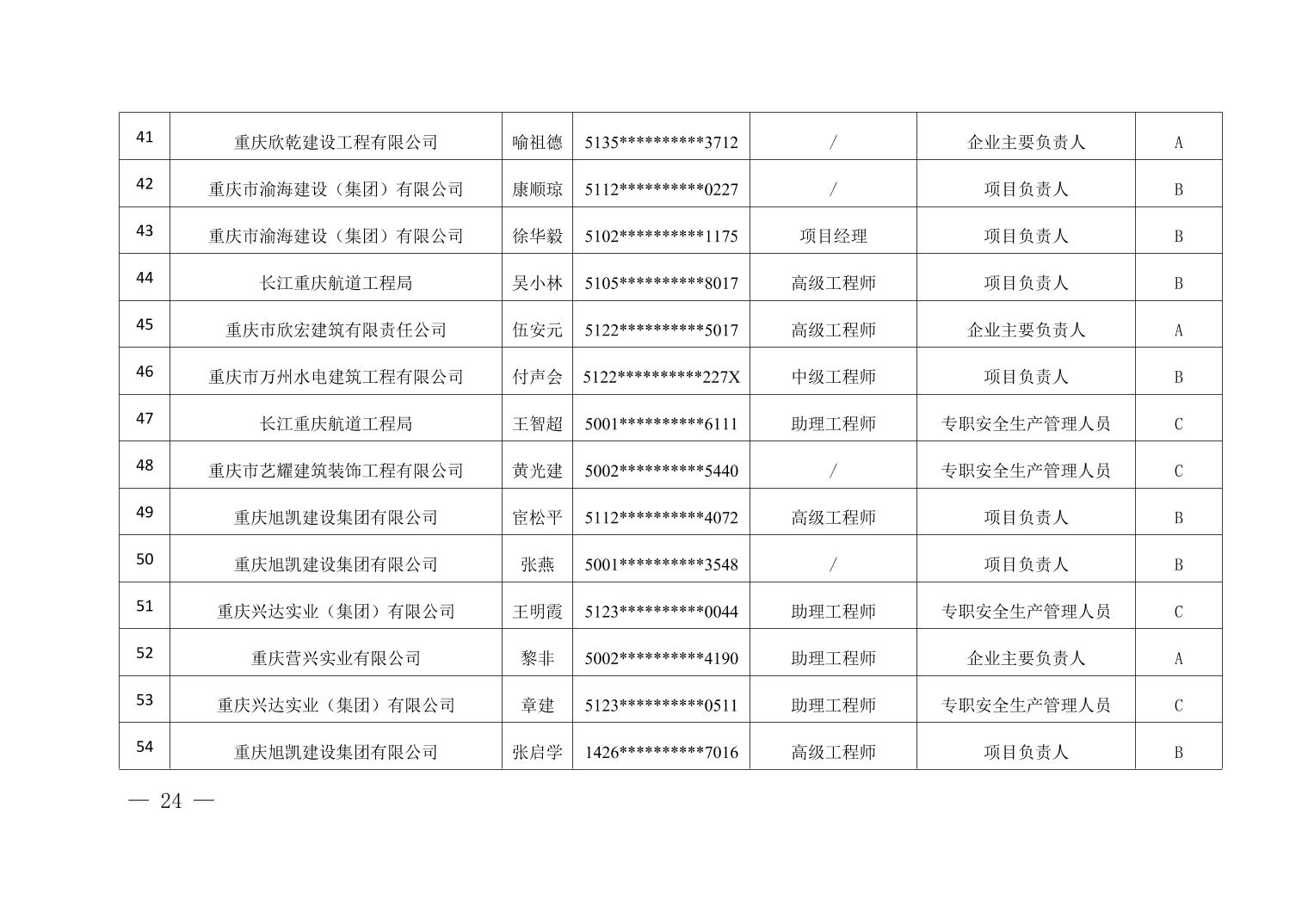 22025年第期重庆市“安管人员”考核合格人员名单(申请延续)