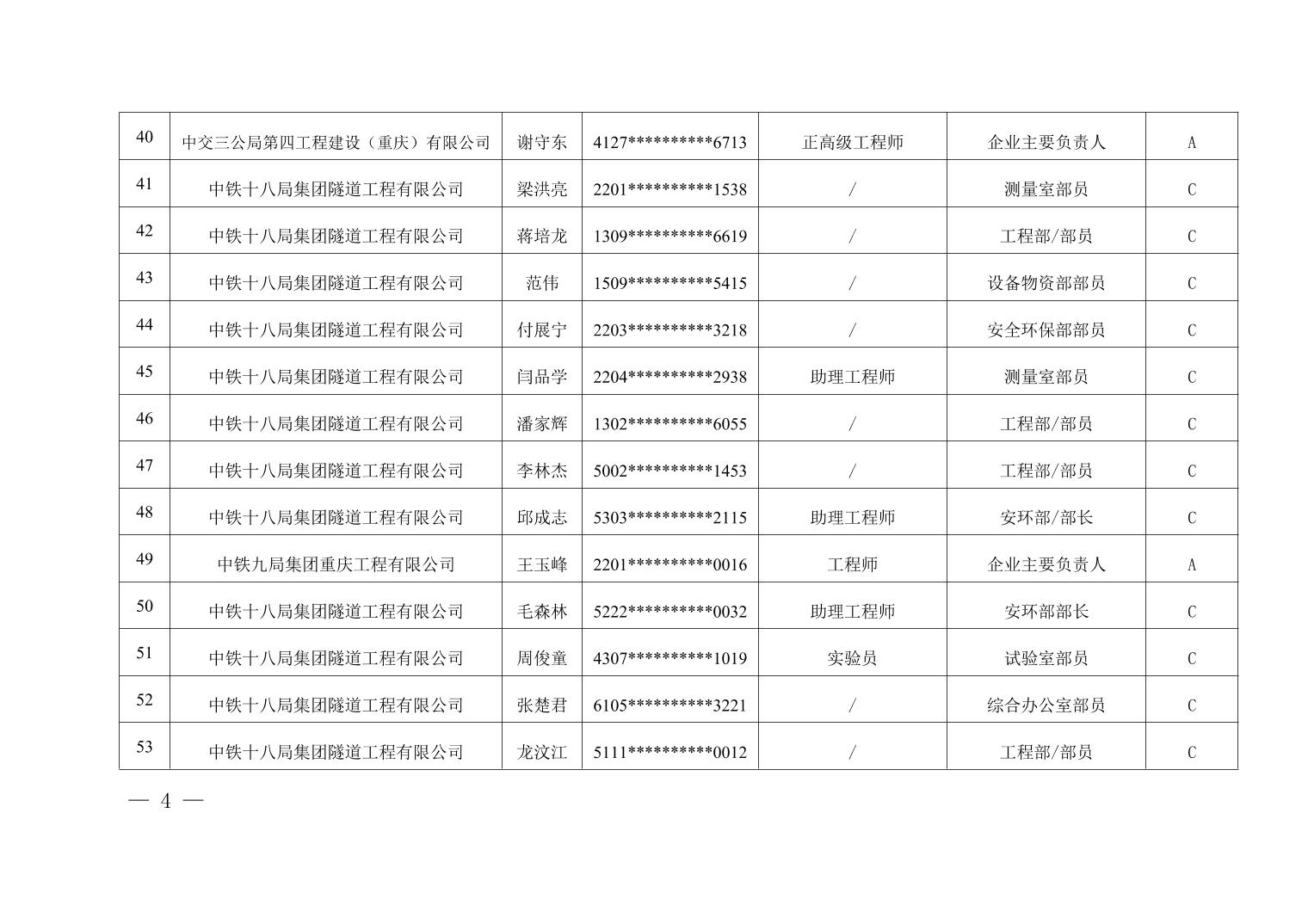重庆市水利局办公室关于公布2025年度第四期水利水电工程施工企业主要负责人、项目负责人和专职安全生产管理人员安全生产考核管理合格人员名单的通知
