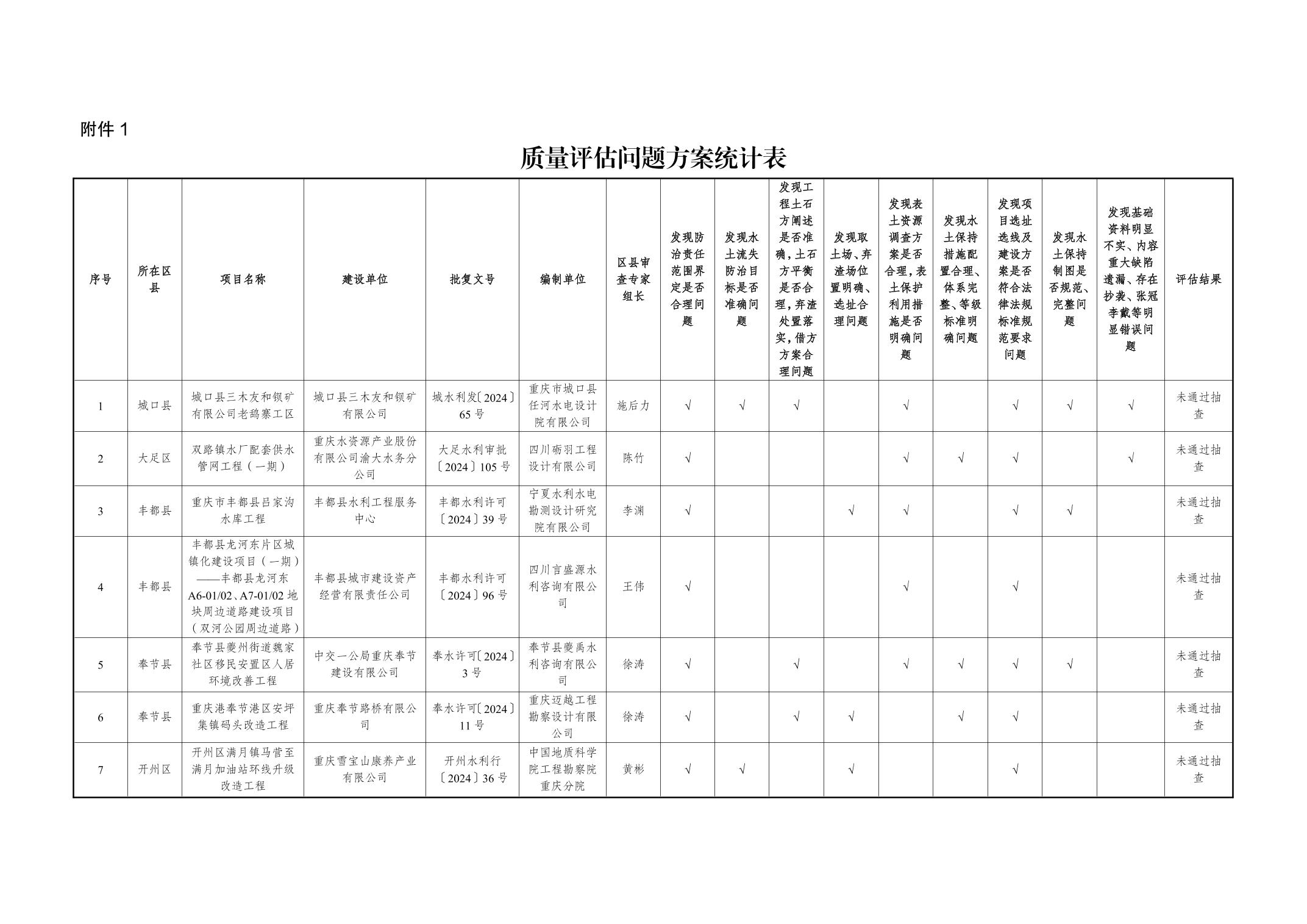 按照生产建设项目全链条全流程闭环管理要求,严把水土保持方案审查审批关,我局组织对2024年区县审批水土保持方案进行了成果质量抽查,现将抽查情况通报如下: