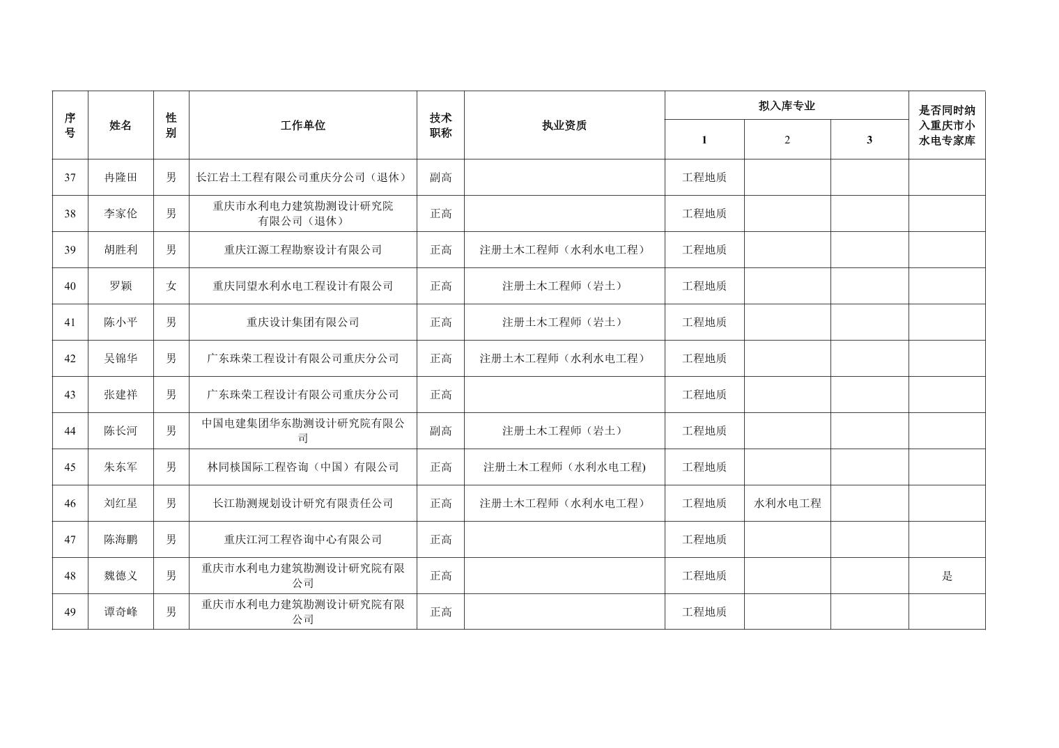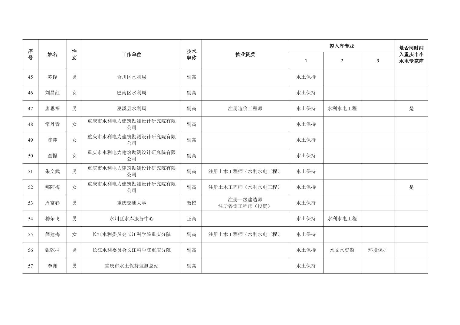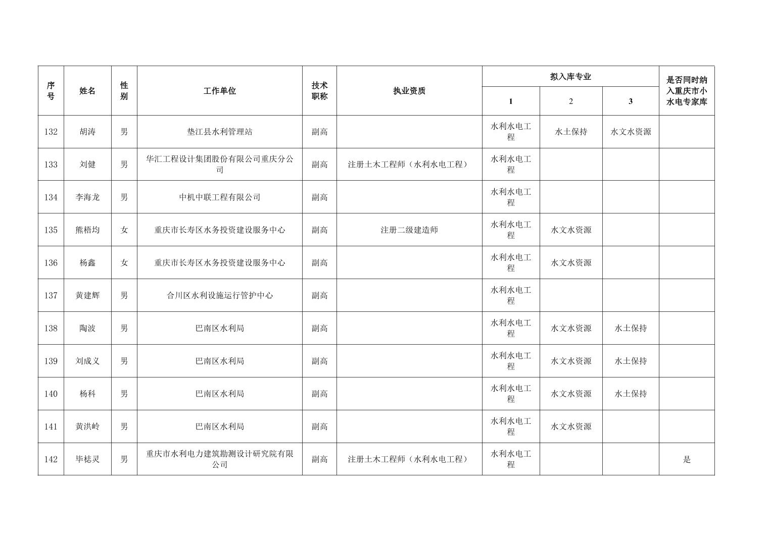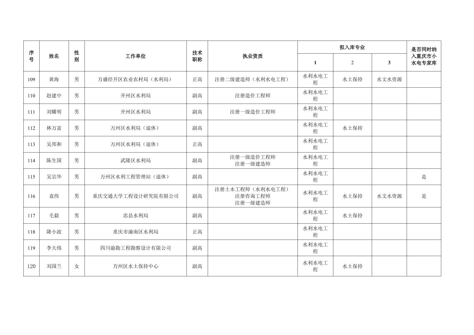 重庆市水利局办公室关于重庆市水利建设项目和涉水行政许可事项技术审查等两个专家库拟入库人员名单的公示