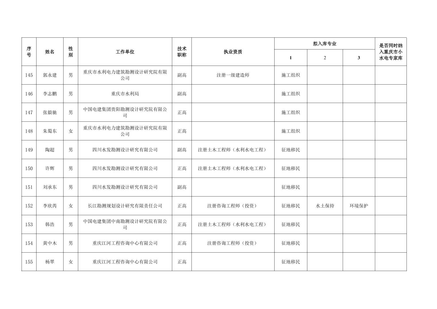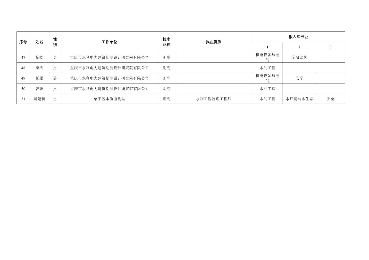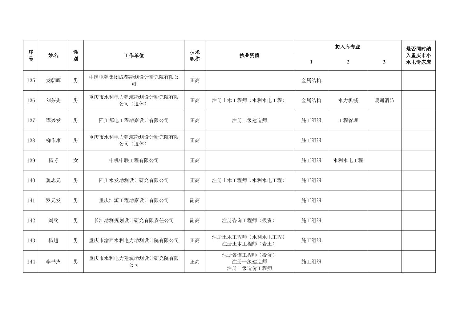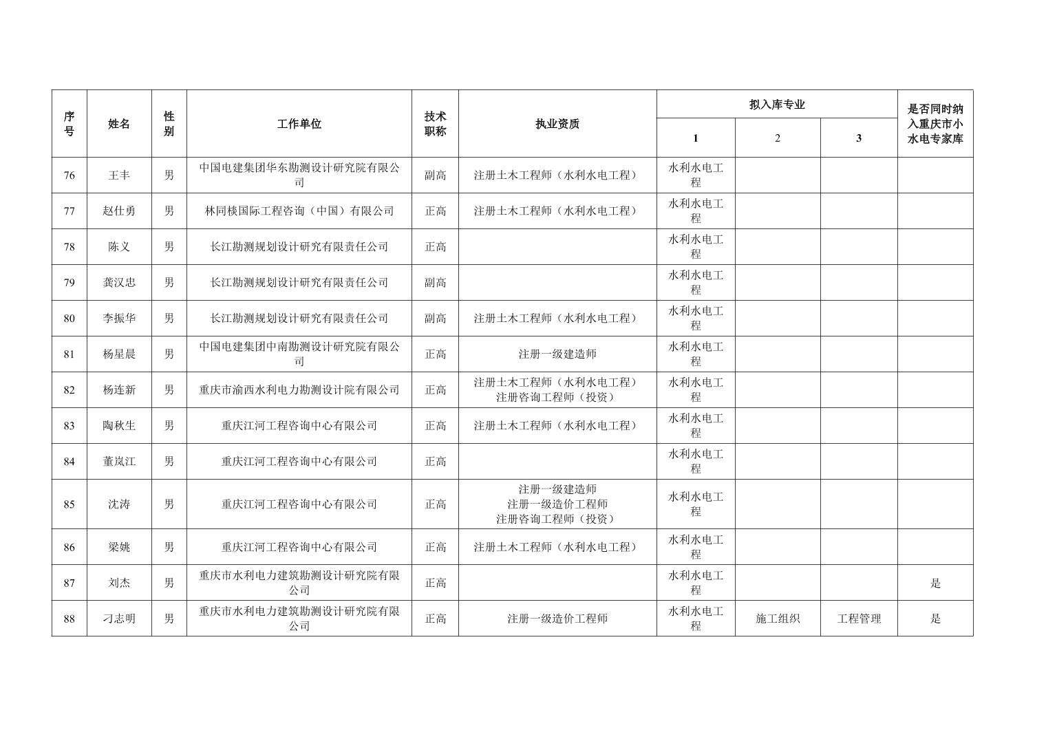 重庆市水利局办公室关于重庆市水利建设项目和涉水行政许可事项技术审查等两个专家库拟入库人员名单的公示
