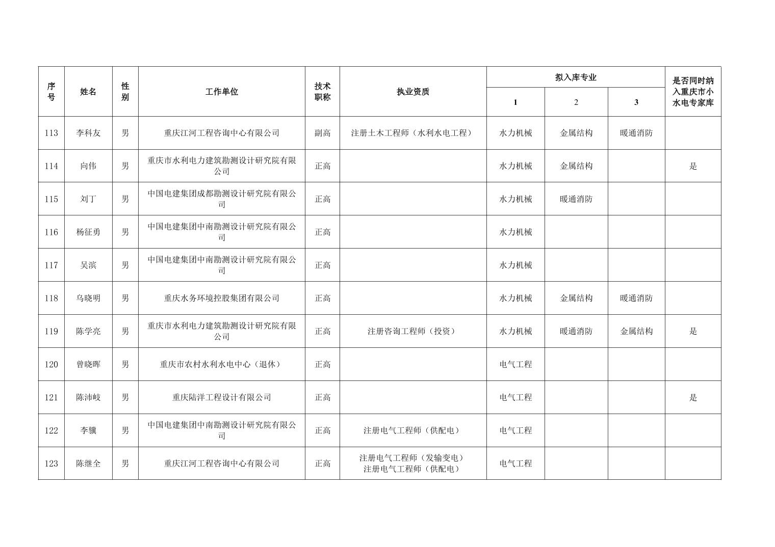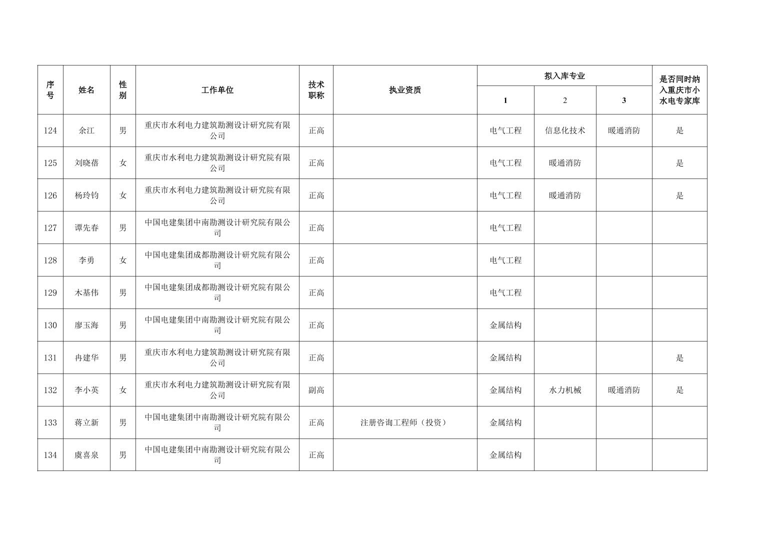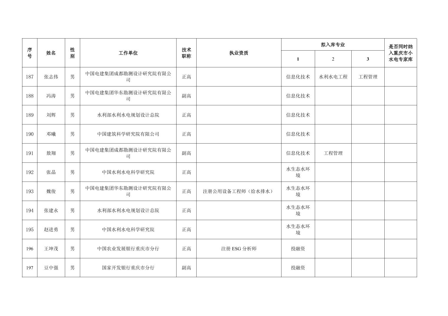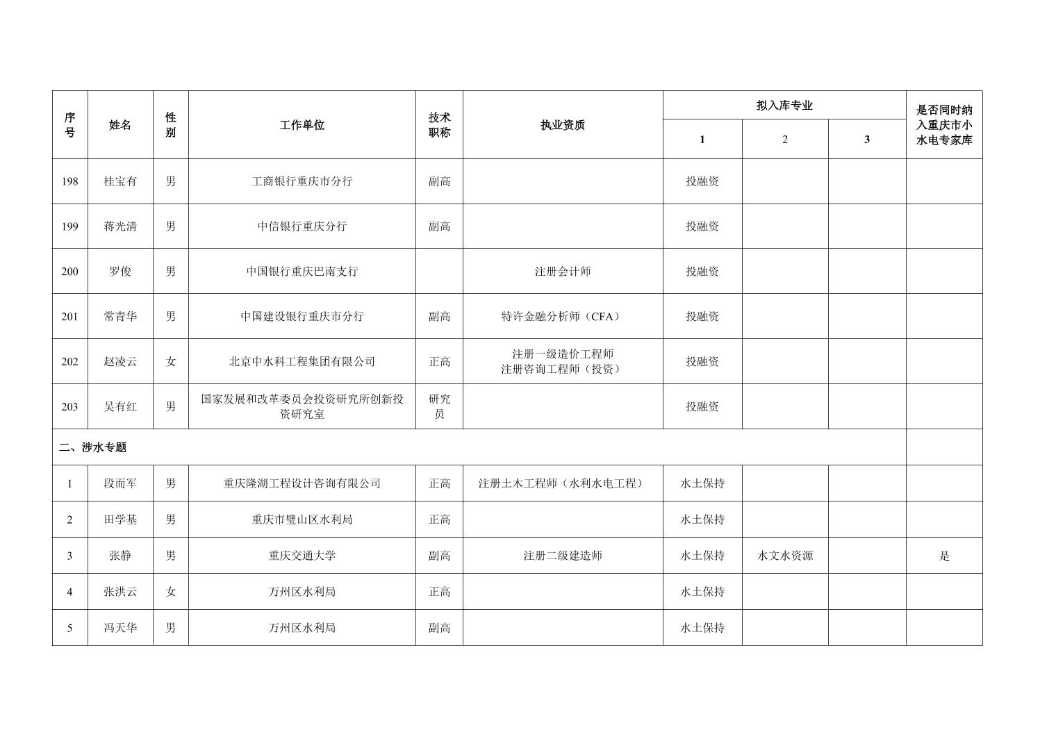 重庆市水利局办公室关于重庆市水利建设项目和涉水行政许可事项技术审查等两个专家库拟入库人员名单的公示