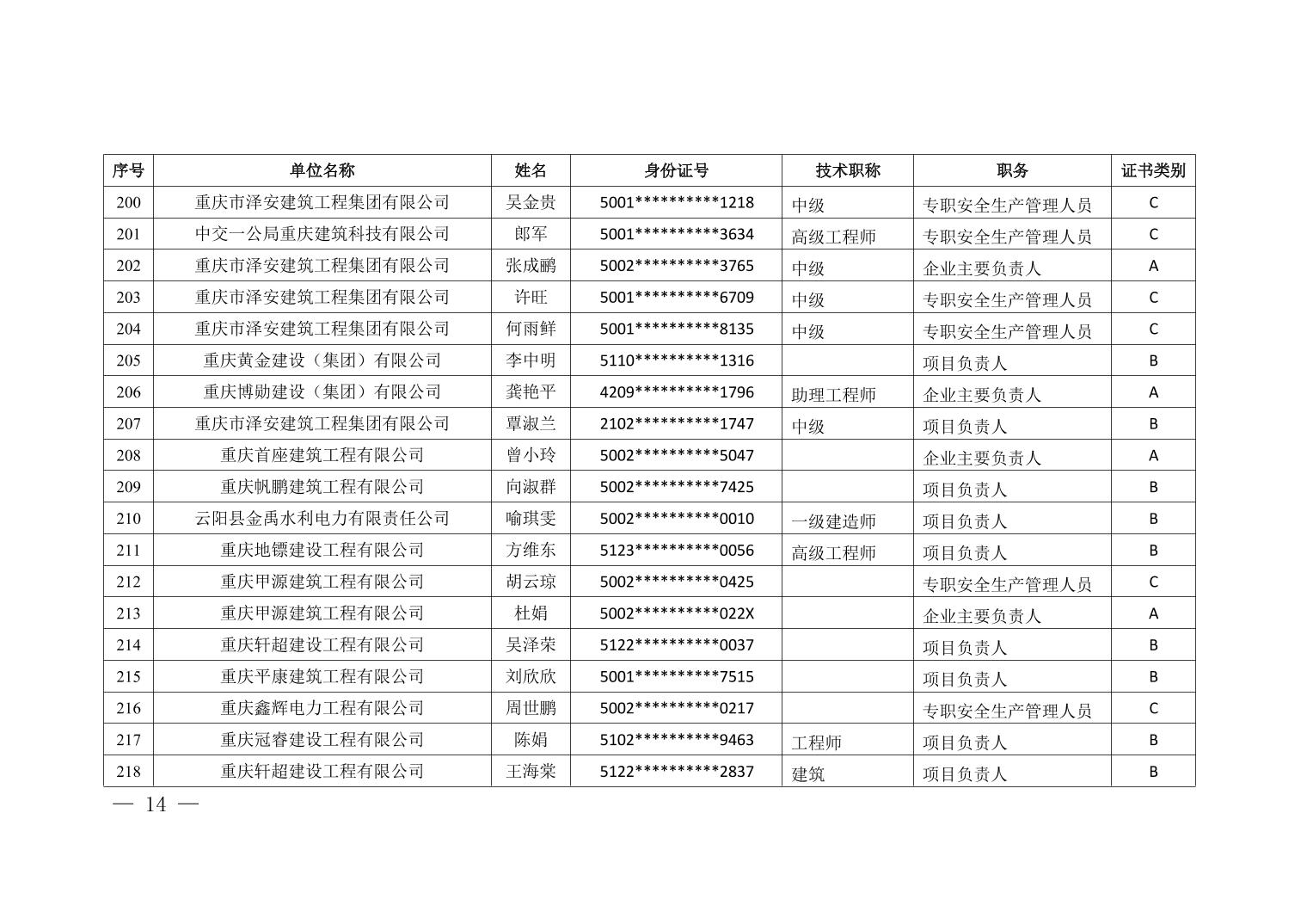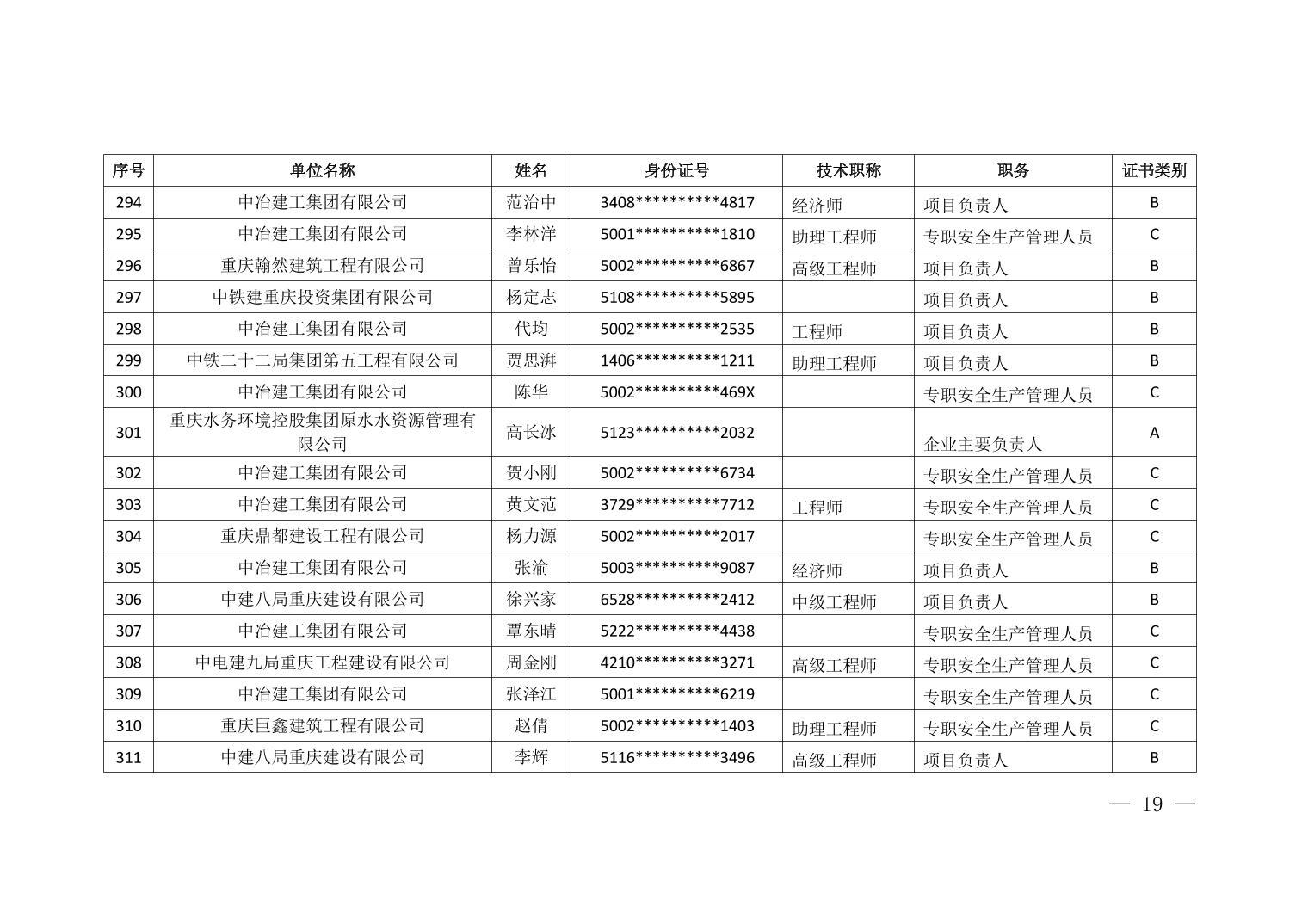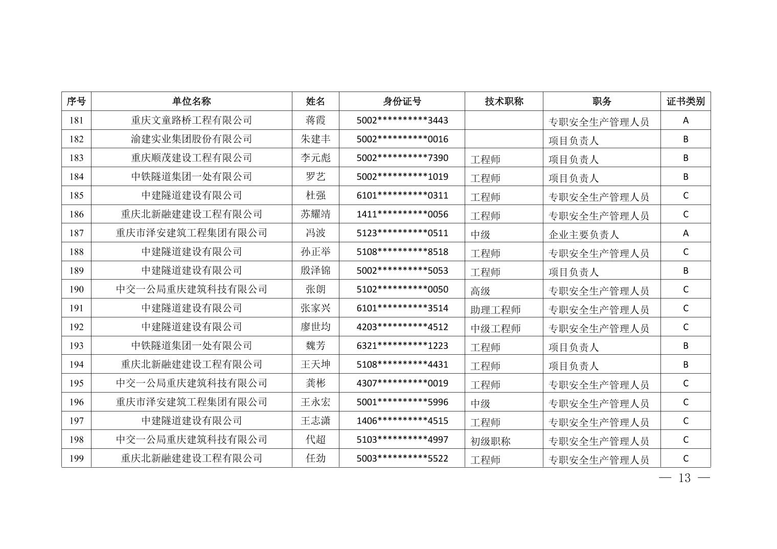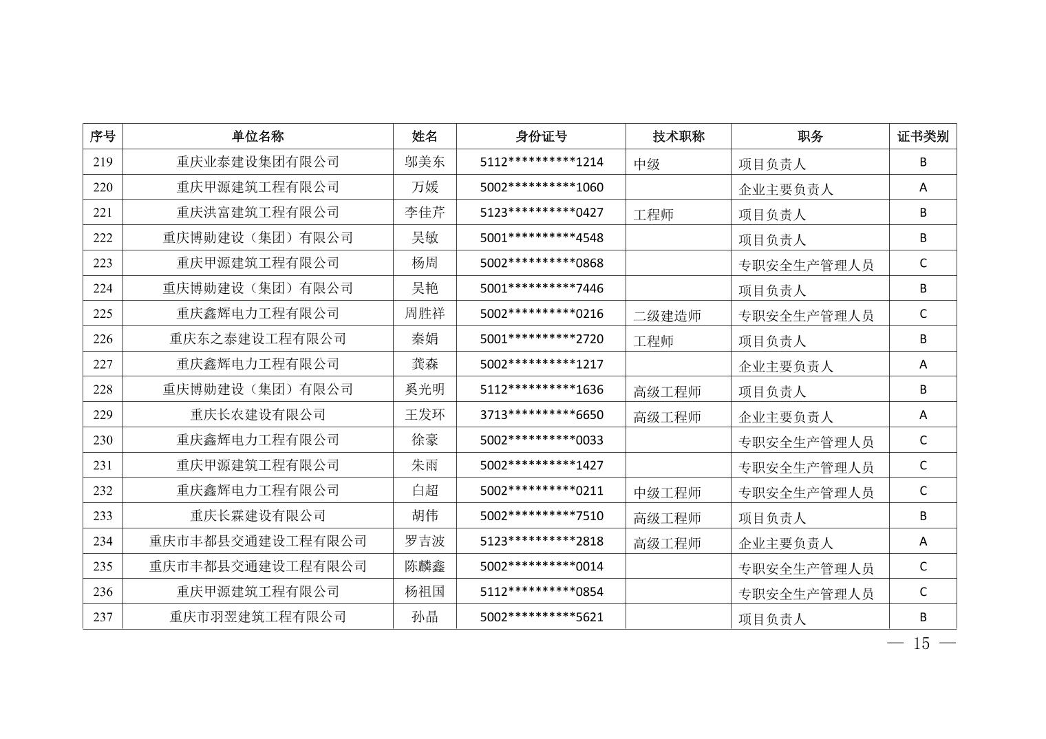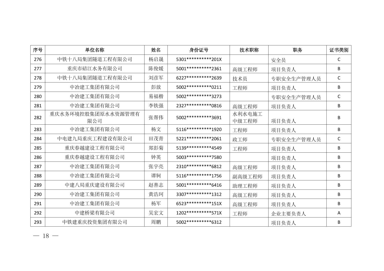 重庆市水利局办公室关于公布2026年度第一期水利水电工程施工企业“安管人员”安全生产考核管理合格人员名单的通知