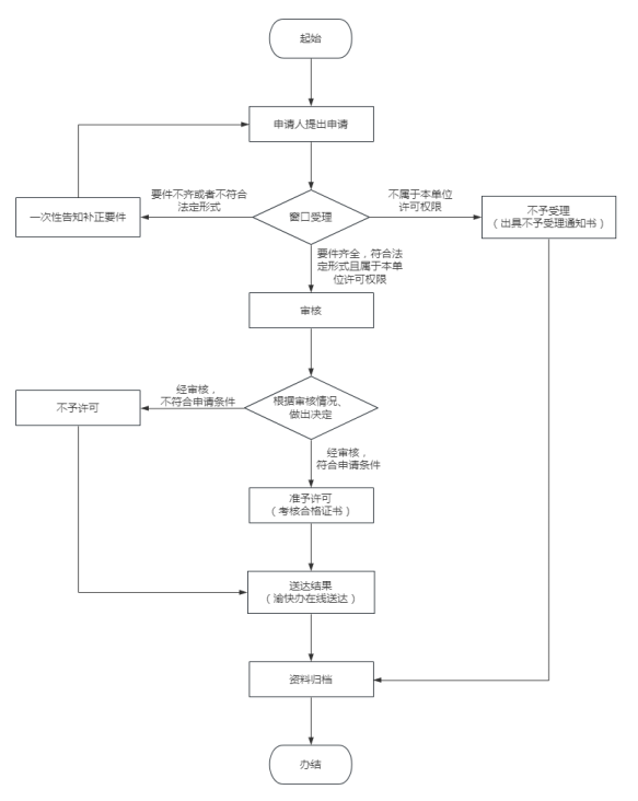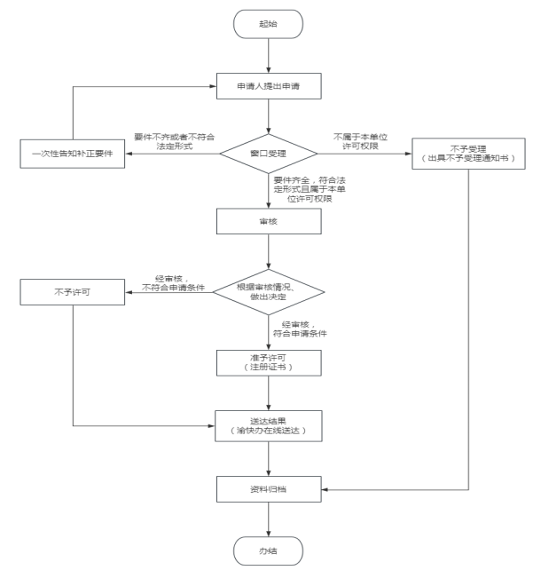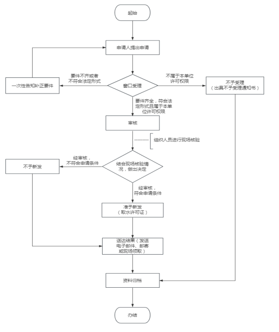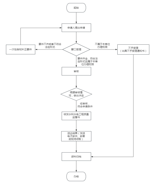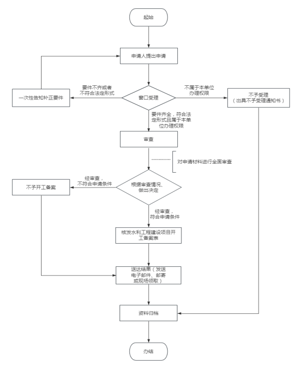 (四)决定:经审查,符合条件的,重庆市水利局出具水利工程建设项目开工备案表(盖章);不符合条件的,出具不予水利工程建设项目开工备案表。