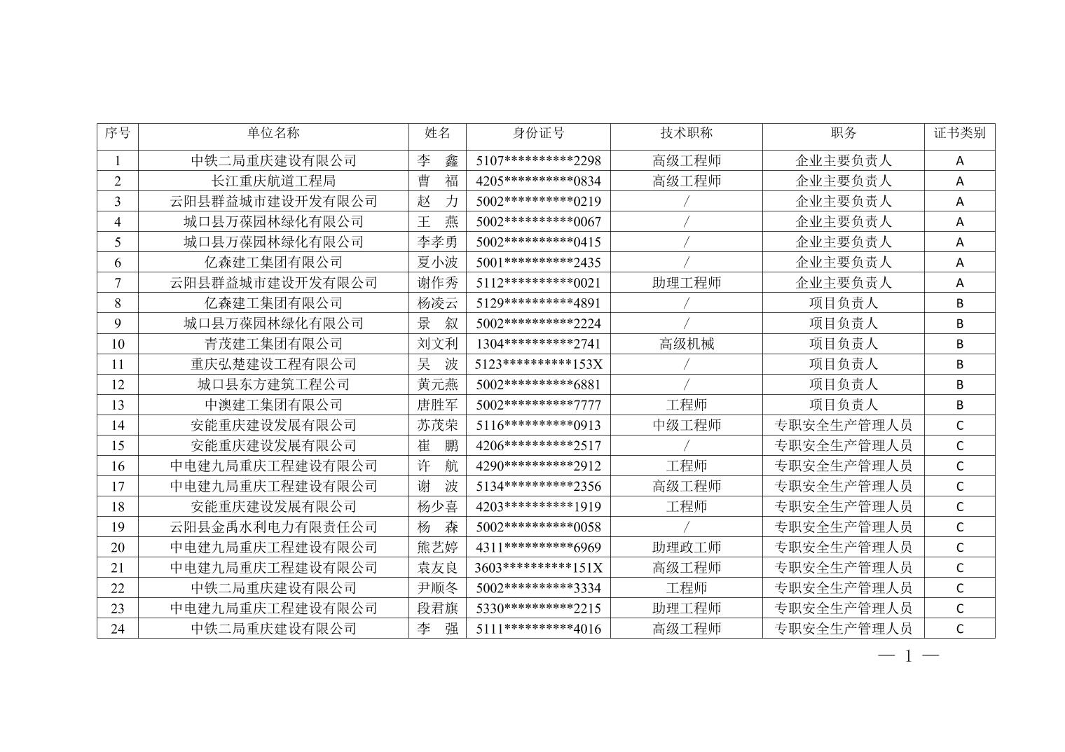 附件:1.2025年第三期重庆市水利水电工程施工企业主要负责人、项目负责人和专职安全生产管理人员安全生产管理考核合格人员名单(新申领)