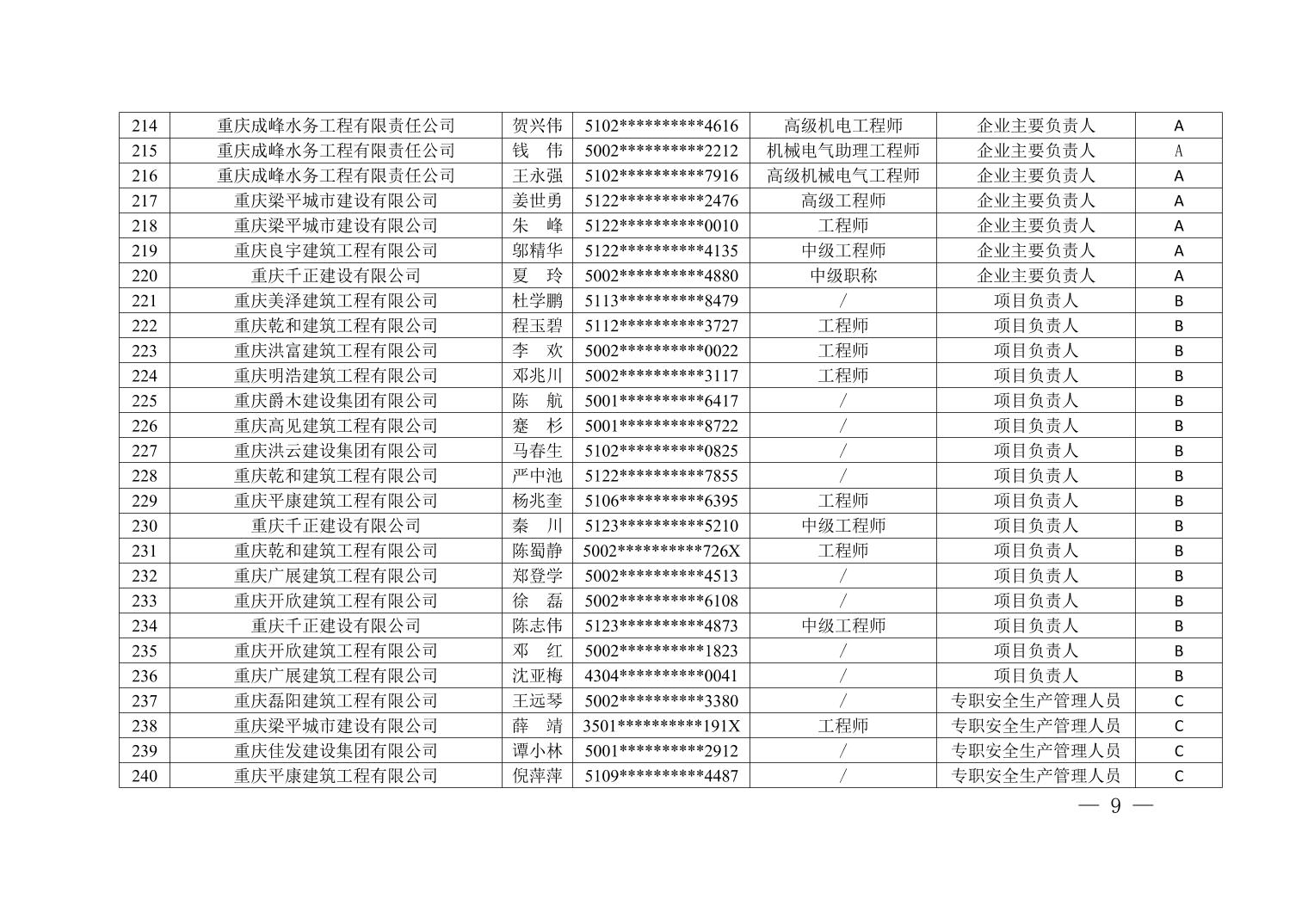 2025年第三期重庆市水利水电工程施工企业主要负责人、项目负责人 和专职安全生产管理人员安全生产管理考核合格人员名单(新申领)
