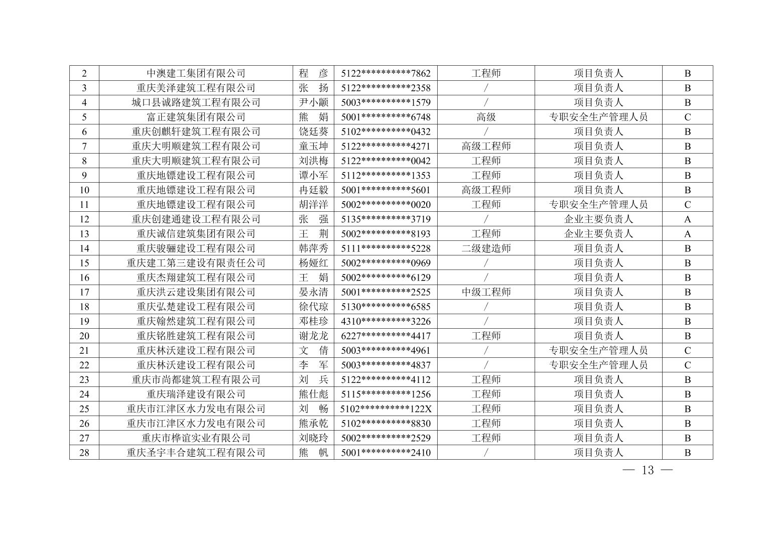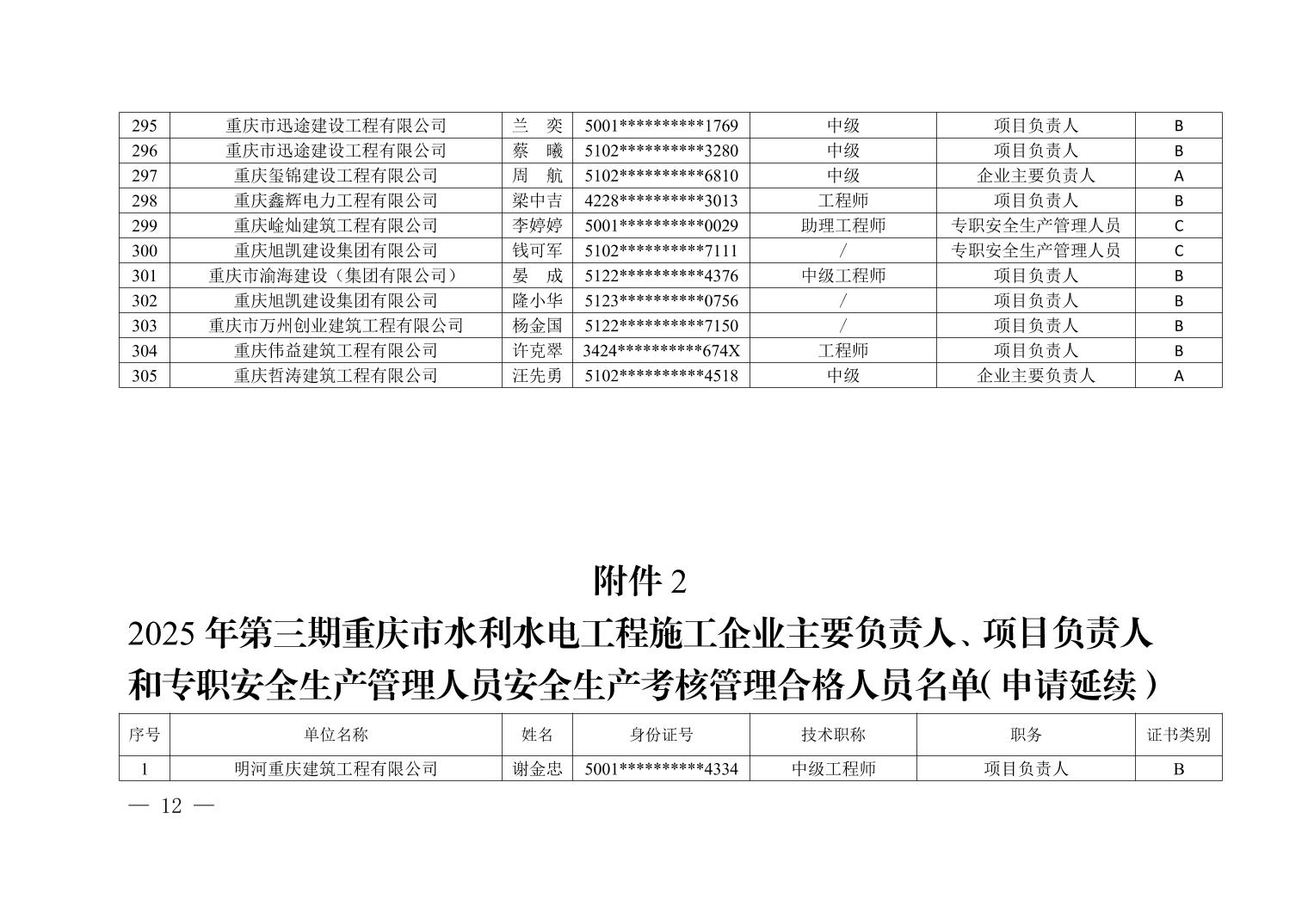 2.2025年第三期重庆市水利水电工程施工企业主要负责人、项目负责人和专职安全生产管理人员安全生产考核管理合格人员名单(申请延续)