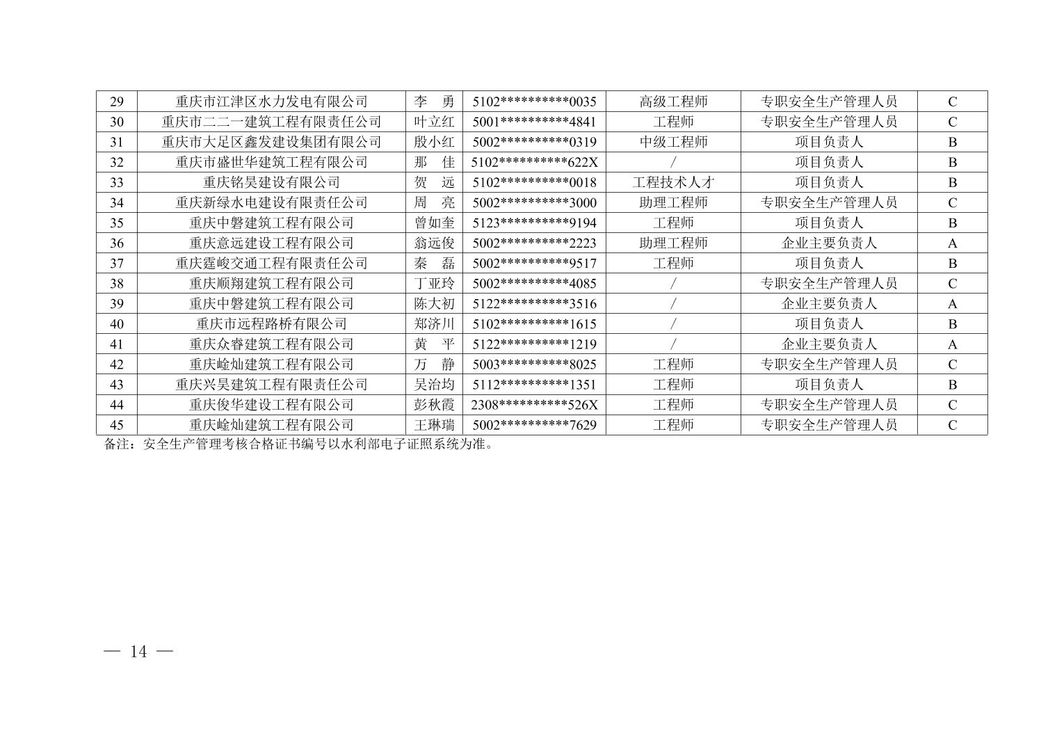 全文下载:重庆市水利局办公室关于公布2025年度第三期水利水电工程施工企业主要负责人、项目负责人和专职安全生产管理人员安全生产考核管理合格 人员名单的通知.doc