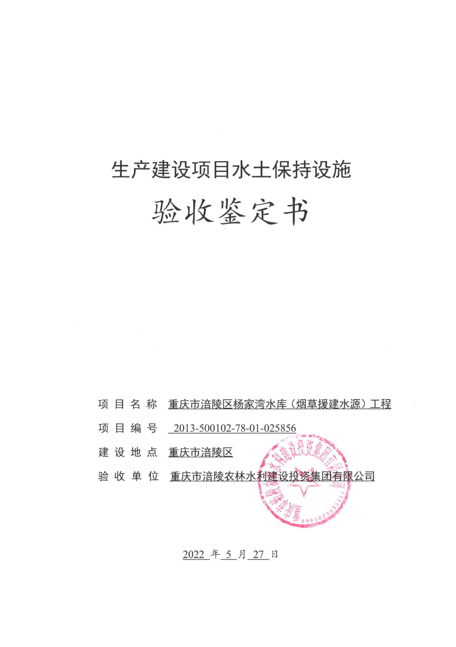 附件:重庆市涪陵区杨家湾水库(烟草援建水源)工程水土保持设施验收鉴定书